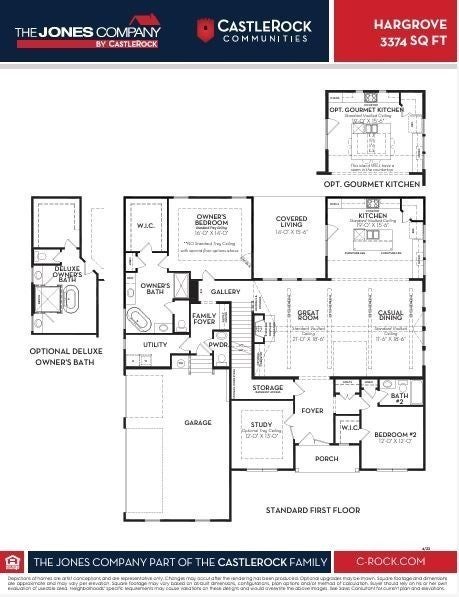 The Hargrove plan by CastleRock Communities is a haven that combines luxury, convenience, and style. As you step through the front door, you'll be greeted by an exquisitely designed interior. From the moment you enter, the architectural details, including a vaulted great room with beams, a 2-story wall of windows in the dining, and a gourmet kitchen. The Hargrove boasts an owner's suite downstairs with the optional deluxe owner's bath. The main floor also includes a separate study and another bedroom with an ensuite bath. In addition to the 2 bedrooms upstairs, this home offers 2 bonus room, one with a vaulted ceiling and one with a bath and walk-in closet. From the great room to the casual dining area and covered patio, every corner of this home is thoughtfully designed to meet your lifestyle needs. With over $179,000 in upgrades, do not miss the opportunity to make this masterpiece your own.