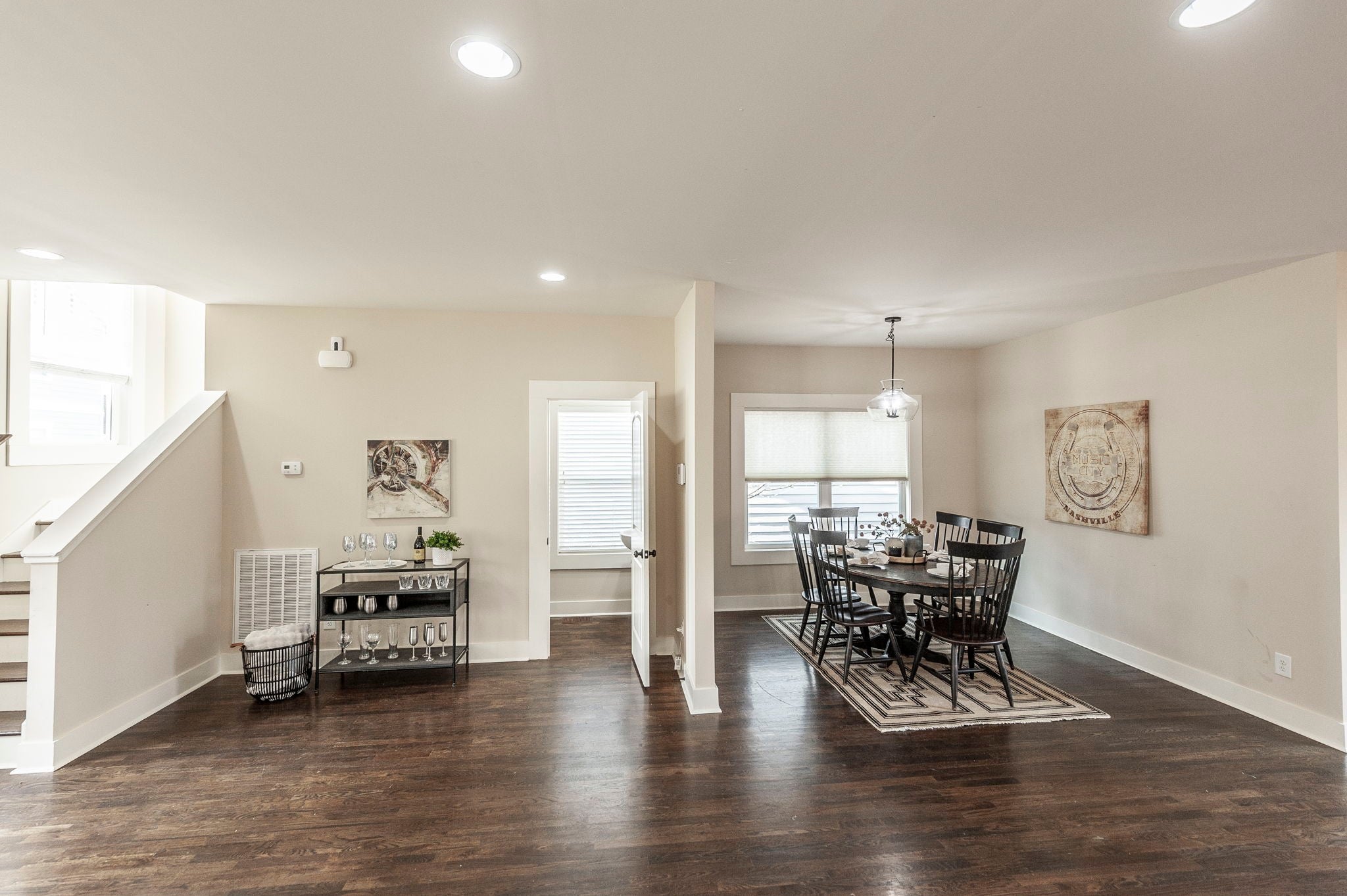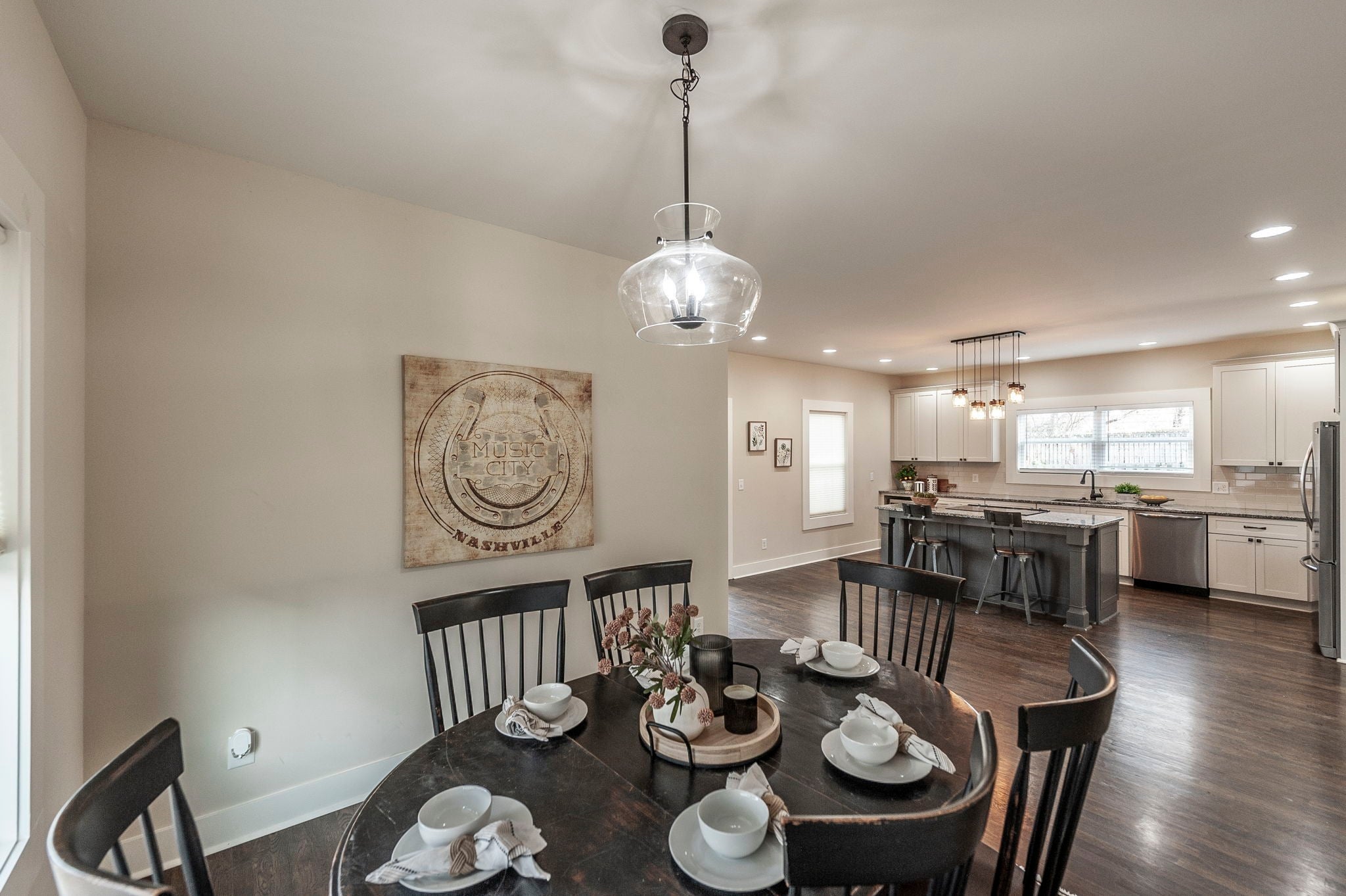 Located on the east side of Nashville, this beautifully updated home offers the perfect blend of charm, comfort, & convenience—just minutes from all that East Nashville has to offer & with easy access to downtown. Off-street parking is a rare find in this area, & this property delivers with a two-car carport. The exterior has been freshly painted, creating crisp curb appeal, & the inviting front porch is ideal for rocking chairs & morning coffee. Step inside to a wide-open floor plan filled with natural light & beautifully stained hardwood floors throughout the main level. The spacious living room provides flexibility for multiple furniture arrangements, making it perfect for both everyday living & entertaining. The large dining area easily accommodates a full dining set with additional space for a buffet or bar-style furniture. The kitchen is both stylish & functional, featuring soft white cabinetry, granite countertops, & a large center island. Tile backsplash & stainless-steel appliances complete the space, offering a clean, modern look. Just off the kitchen is a well-designed utility room with pantry space & abundant extra storage, along with a convenient powder room on the main level. Upstairs, hardwood stairs lead to hardwood flooring throughout the hallway & bedrooms. The primary suite is generously sized & offers access to a private, covered upstairs deck—an ideal spot to unwind. The ensuite bathroom includes tile floors, double sinks with granite, a linen closet, & a tiled shower with frameless glass doors, along with a huge walk-in closet. Two spacious guest bedrooms share a Jack-and-Jill bathroom, providing comfort & functionality. Outside, the fenced backyard offers a cozy space for light gardening, relaxing, or enjoying time with pets. Mature trees surround the property, creating a sense of privacy during the spring and summer months. This East Nashville home truly offers the lifestyle buyers are looking for—location, style, and thoughtful design.