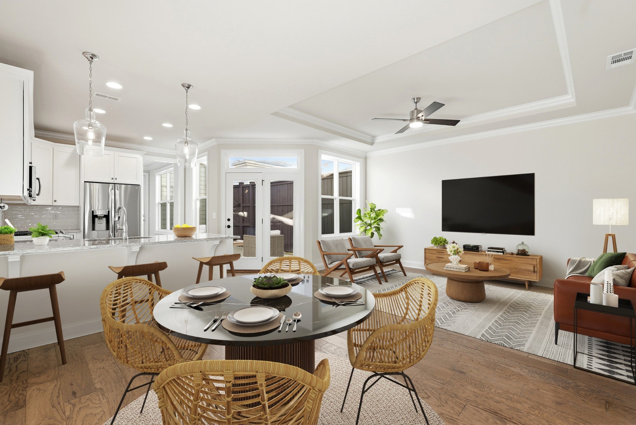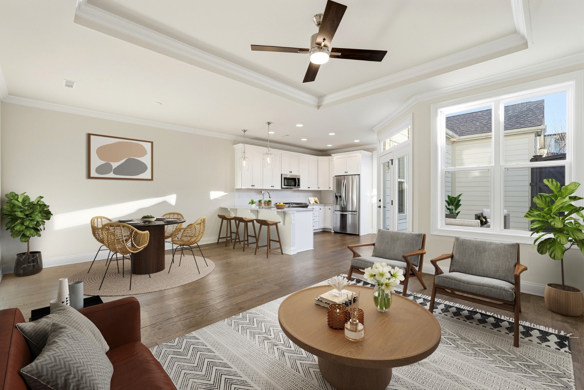 Welcome to this gorgeous, light-filled townhome in wonderful Westhaven with flat entrance (no steps) from the two-car garage! The main level boasts an open layout with a bright white kitchen, spacious living area, and serene primary suite. Enjoy a private side patio and courtyard—thoughtfully designed with no grass—for a beautiful, low-maintenance setting that invites effortless outdoor living. A large flex space with sliding barn door adds extra functionality on the main level for a small office, extra pantry or coffee bar. Upstairs, a versatile media/bonus room is joined by two bedrooms and two full baths. The attached 2-car garage with epoxy flooring also comes with additional storage space above. The HOA handles all exterior maintenance and residents enjoy full access to Westhaven’s unmatched amenities, including golf, tennis, pickleball, biking, hiking, swimming and more! Stroll or ride your golf cart to Front Street Town Center with shops and restaurants, and enjoy the convenience of a top-rated on-site elementary school. All of this—just minutes from Cool Springs, Mack Hatcher Parkway, historic downtown Franklin, and top-rated Williamson County schools. ** Lender rate buydown with preferred lender! **