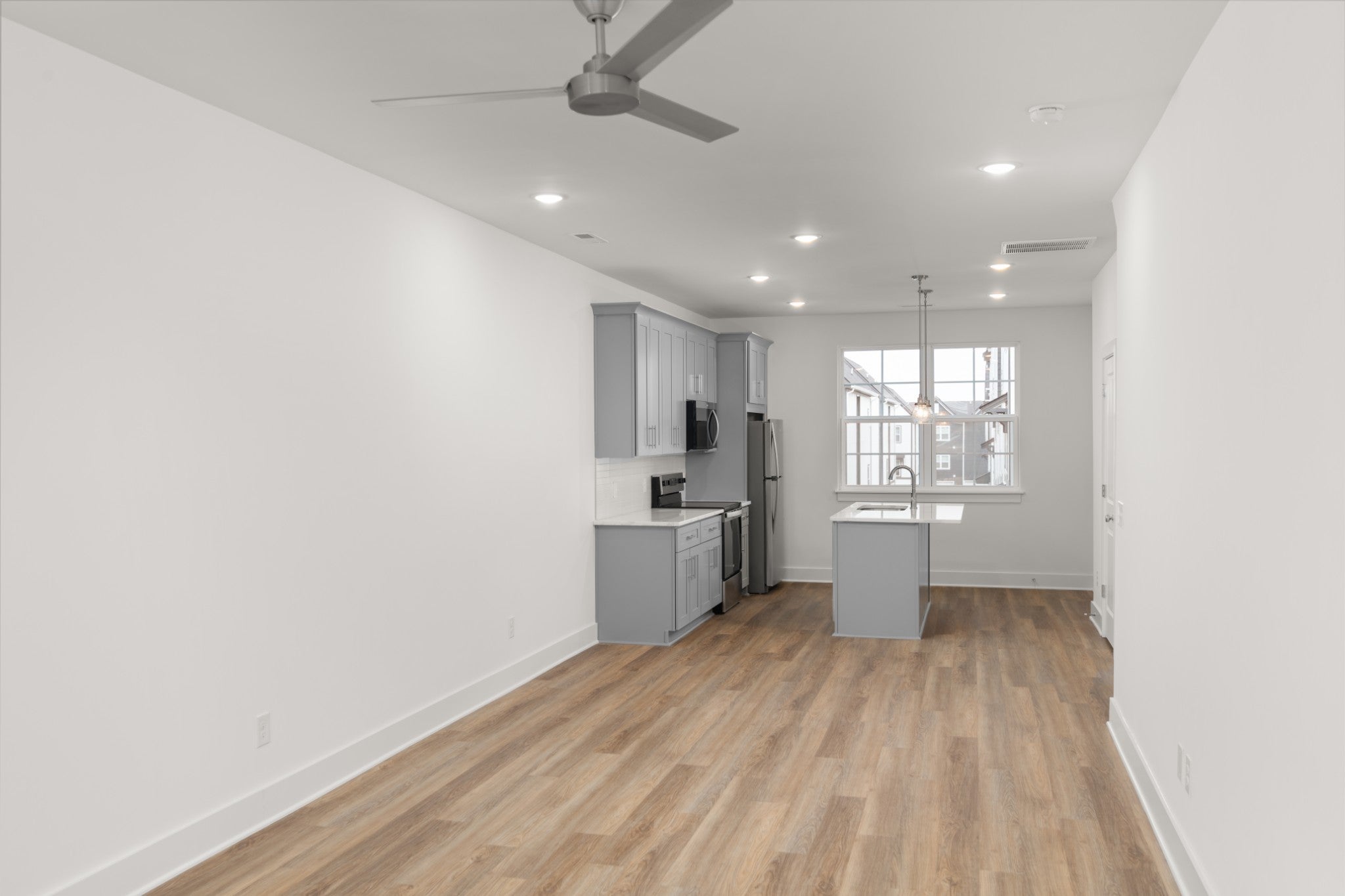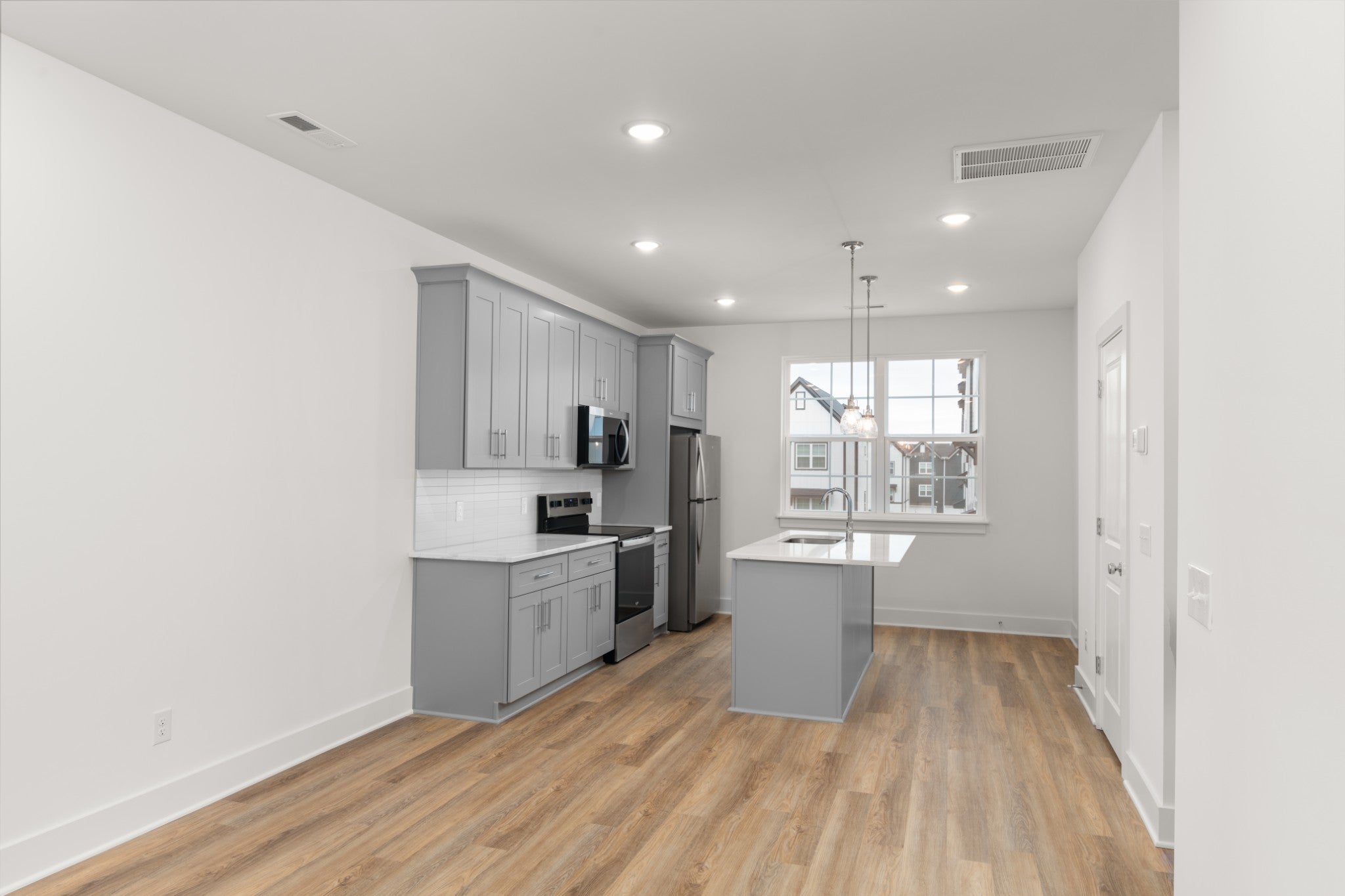 - Electric Range, Dishwasher, Disposal, Microwave, Refrigerator, Stainless Steel Appliance(s)