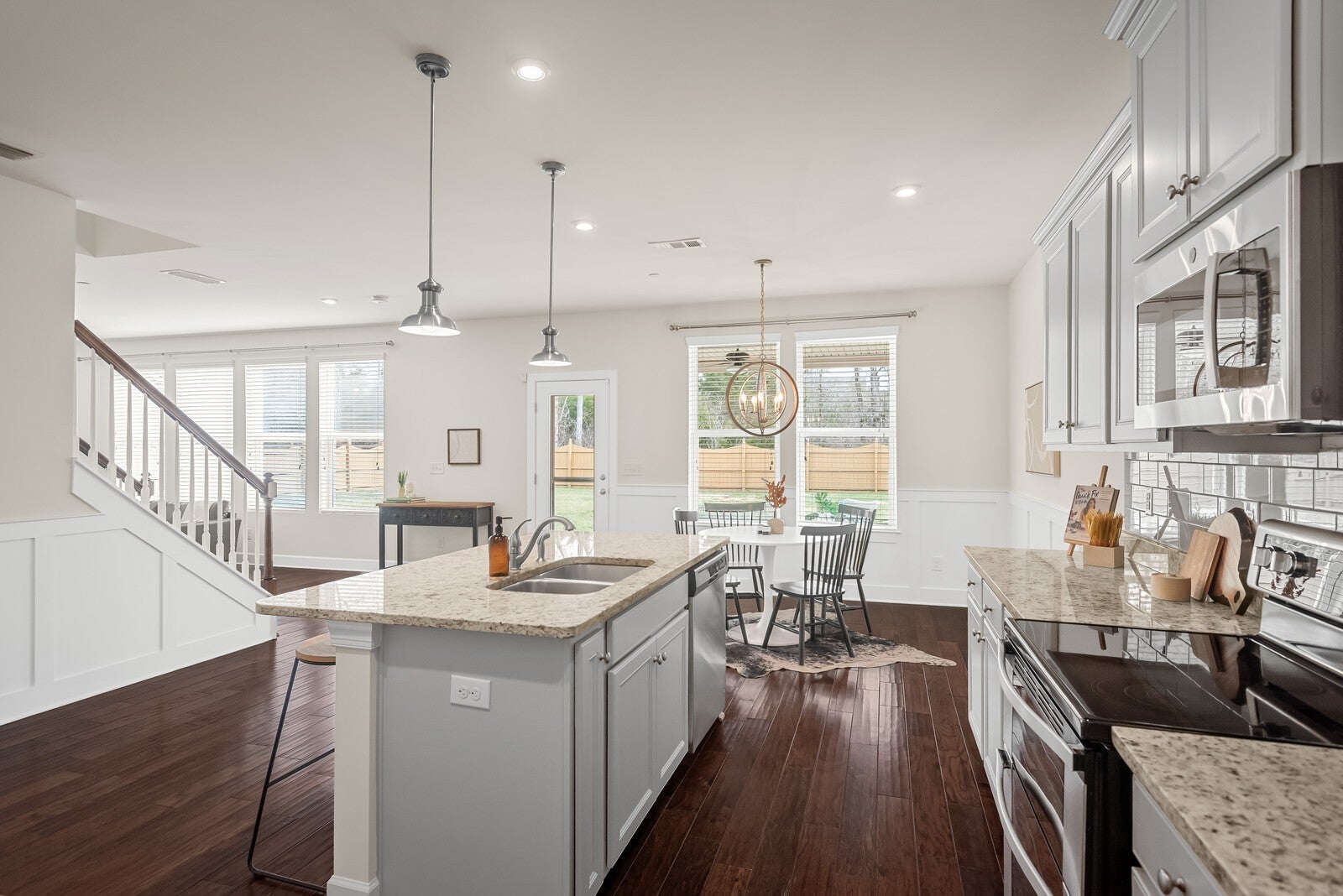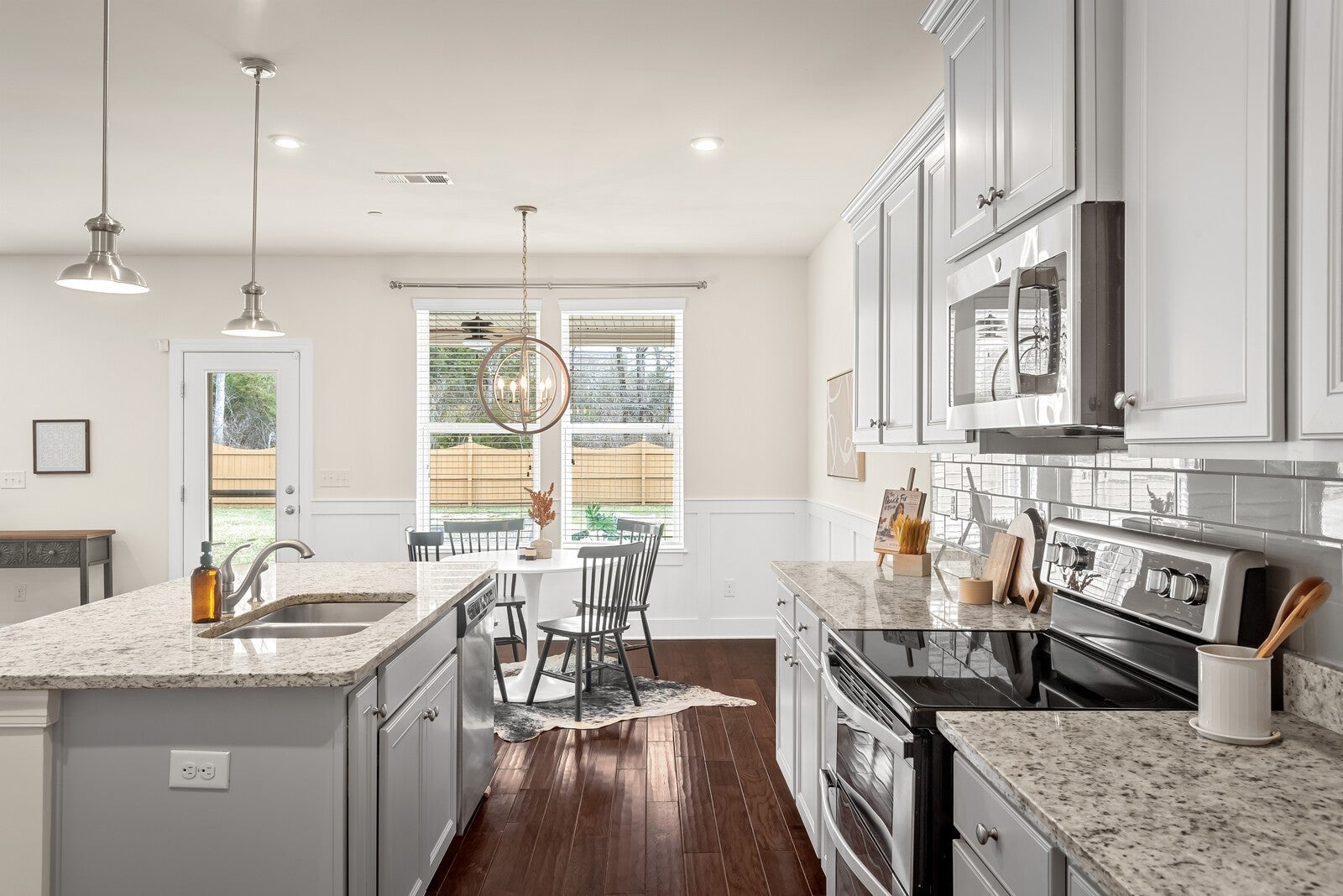- Oven, Electric Range, Dishwasher, Disposal, Dryer, Ice Maker, Microwave, Refrigerator, Stainless Steel Appliance(s), Washer