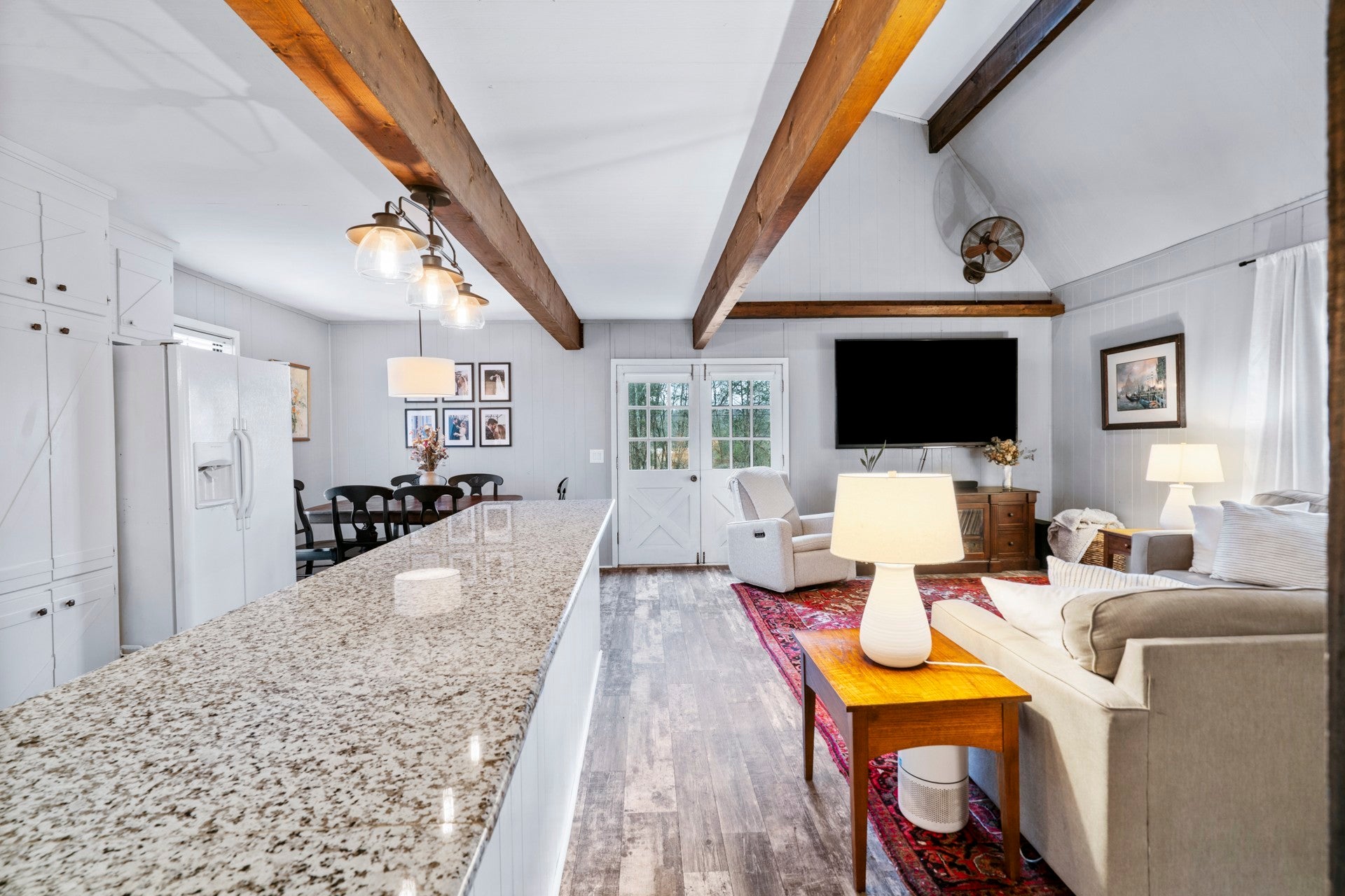 Welcome home to 1494 Rock Springs Rd, a unique and charming cabin that offers a serene setting while remaining conveniently located just two miles from the interstate. This one-of-a-kind property stands out in the current market for its character and peaceful atmosphere. The home has been thoughtfully remodeled with numerous high-end upgrades. The spacious kitchen features gorgeous granite countertops, subway tile backsplash, and custom wood cabinetry. Additionally, the bathroom includes a large walk-in tiled shower, tile flooring, and a farmhouse sink. For those needing extra space, the expansive loft provides the flexibility to be used as a fourth bedroom. Schedule your own private showing today.