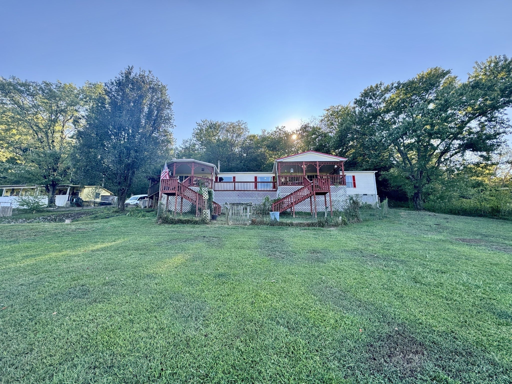 Motivated Seller: Set on 5.919 acres across three lots and on a Private Ln, this hillside property offers privacy, space, and breathtaking views of the surrounding ridges, valleys, and nearby Cordell Hull Lake. The spacious home features 2,016 sqft with three bedrooms and two bathrooms, including a primary suite with an updated bathroom (2017). This home also features hardwood flooring in the main areas and carpet and laminate through the rest of the home. The inviting covered front portion of the wrap-around porch captures the serene water and hilltop views, while the open back part of the porch provides the perfect place to relax and enjoy the natural setting. Inside, the layout boasts large, comfortable rooms designed for easy living. Adding to the property’s versatility, there is a second structure originally designed as a bunkhouse that includes a bedroom and bathroom. It is currently used as a craft and hobby building but could serve multiple purposes. A 20x20 shop with garage door provides space for parking, storage, or workshop needs. This unique offering combines acreage, flexible living options, and scenic beauty in a peaceful location Come see it today.