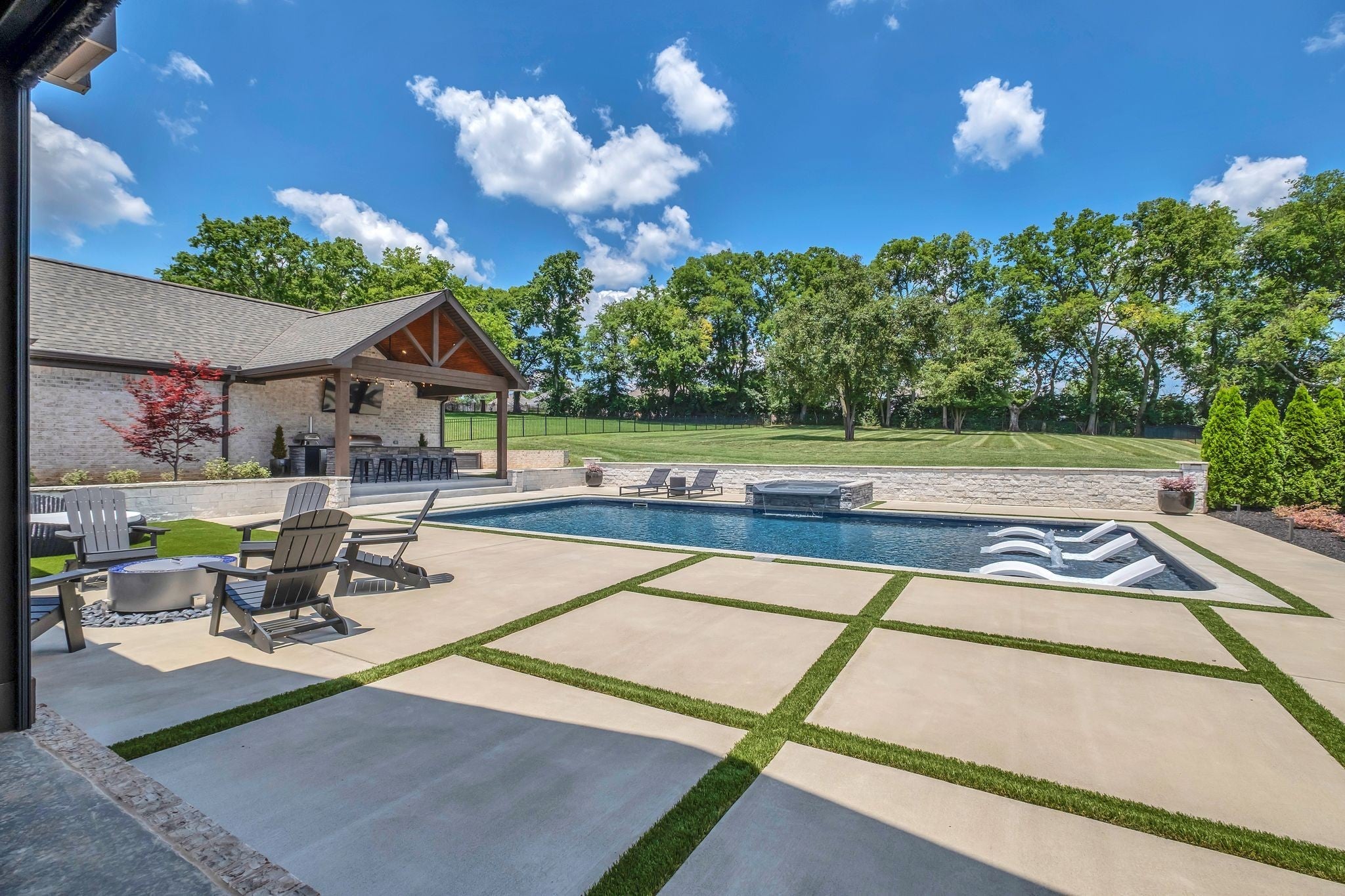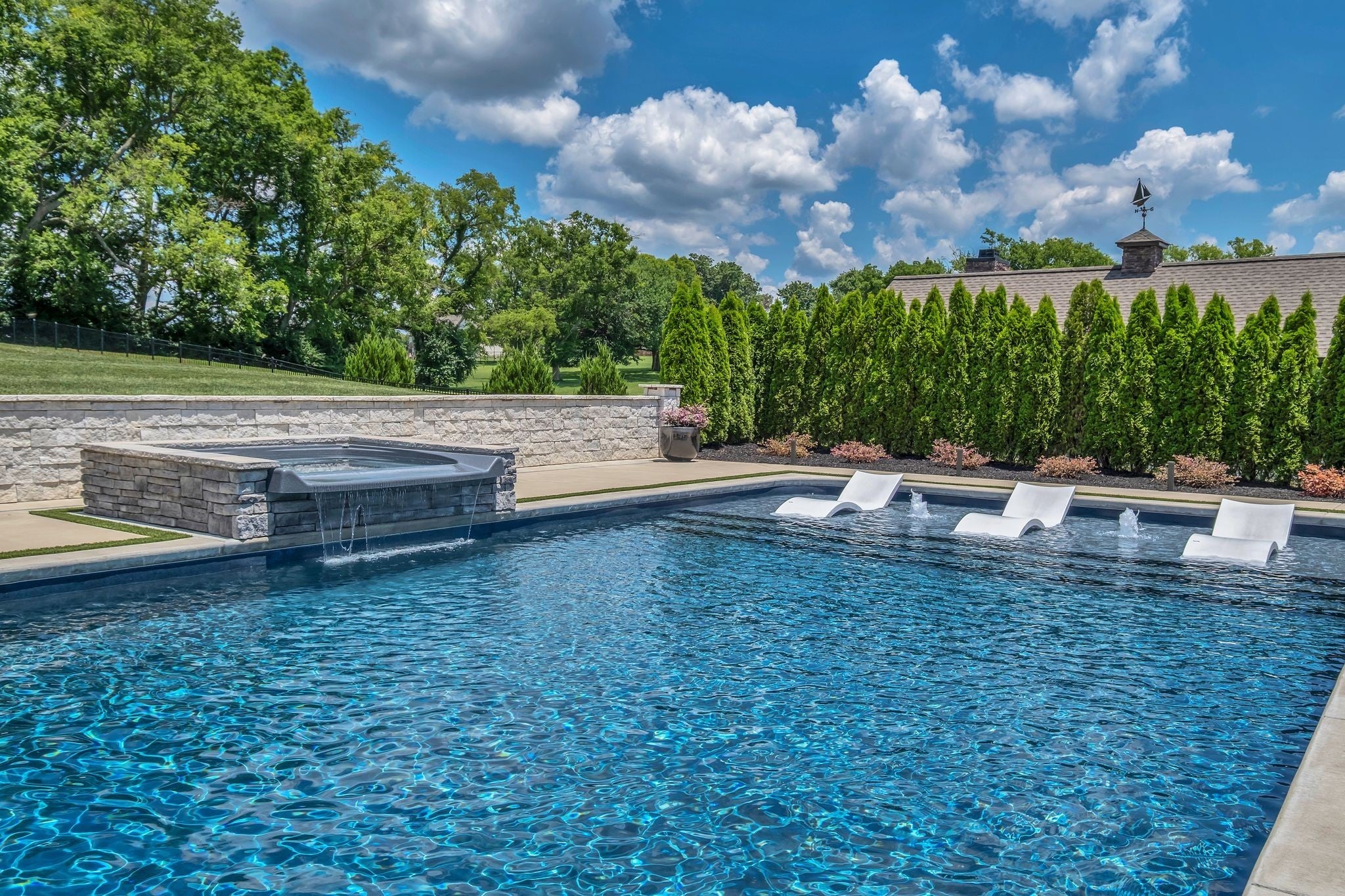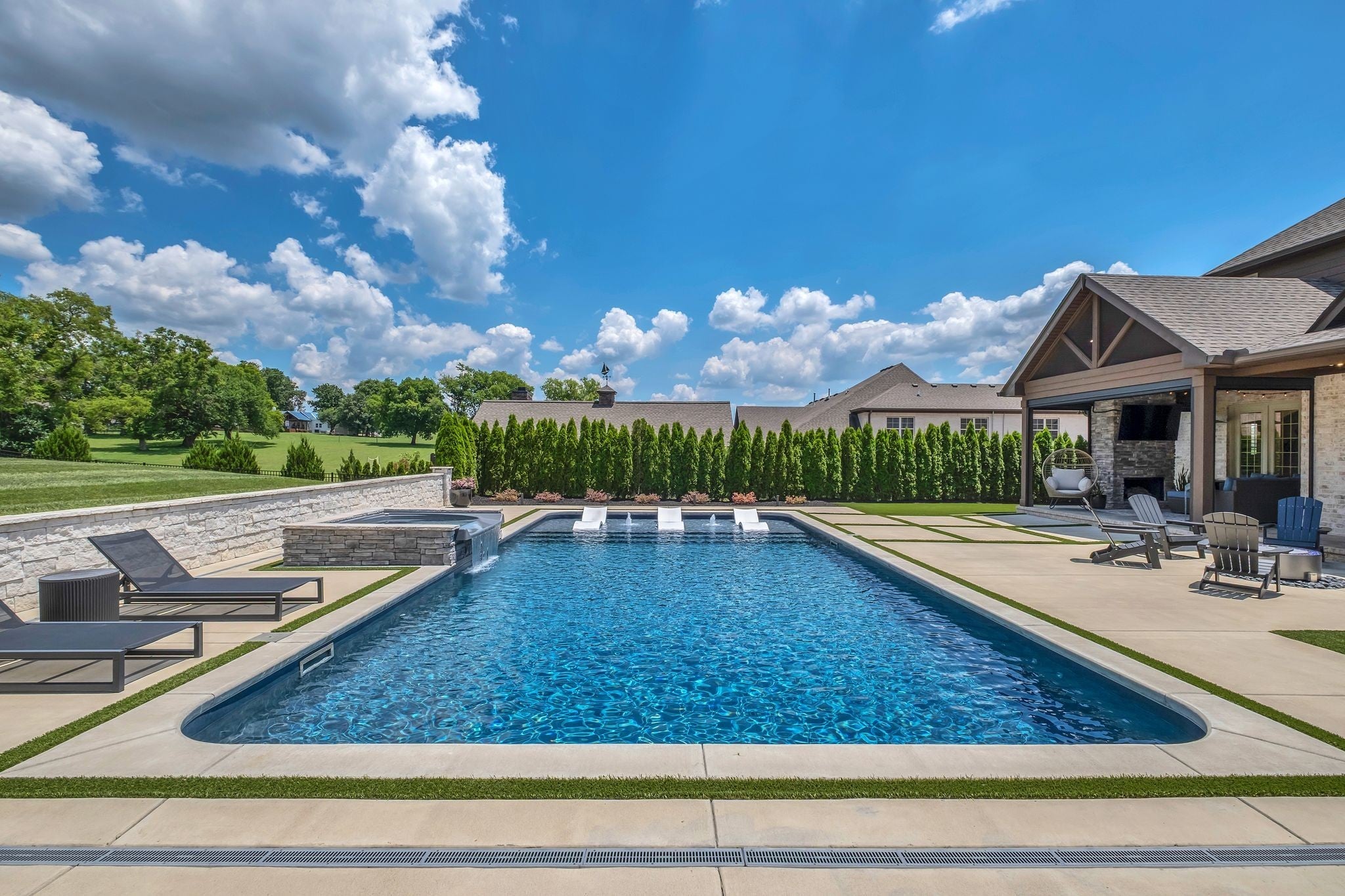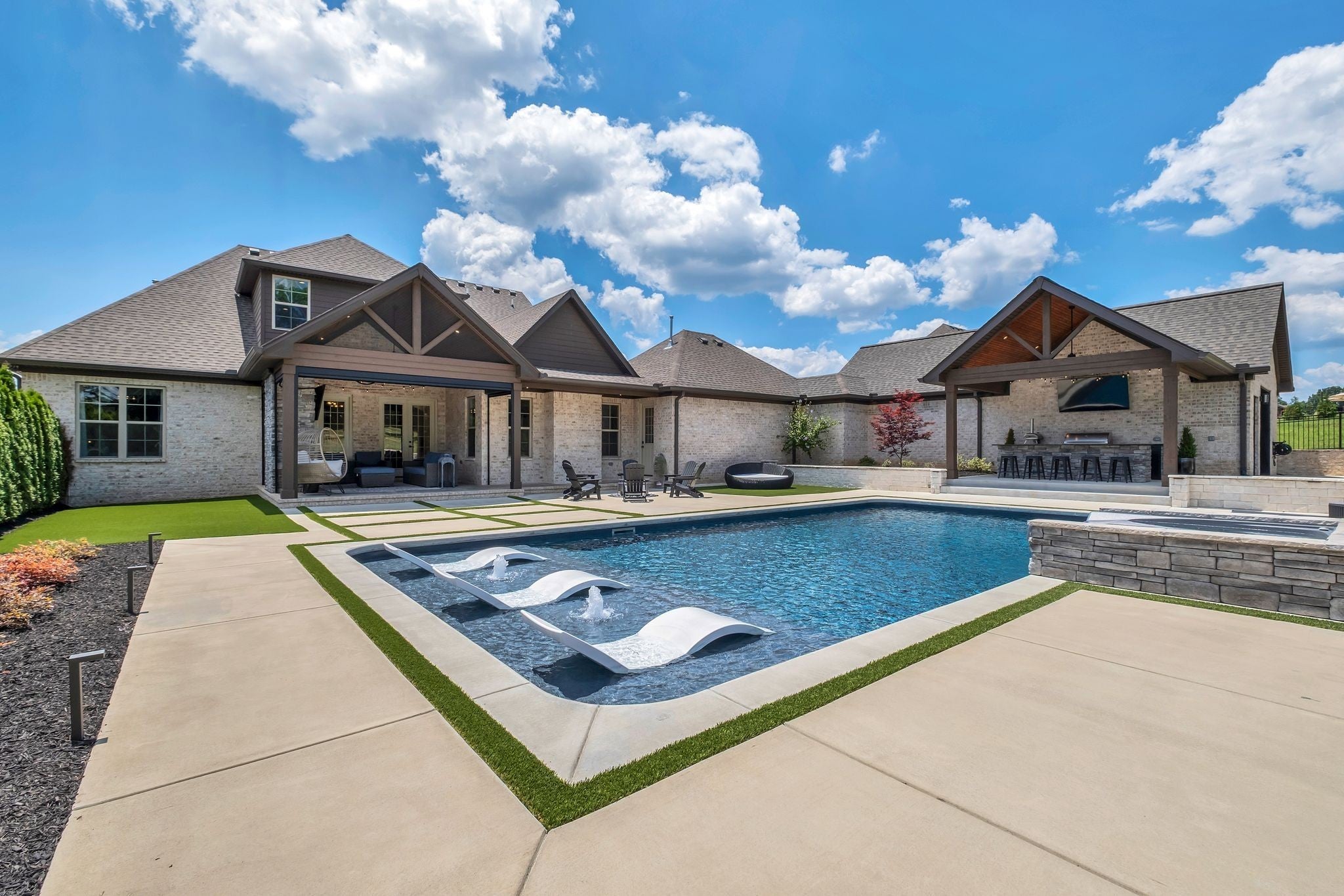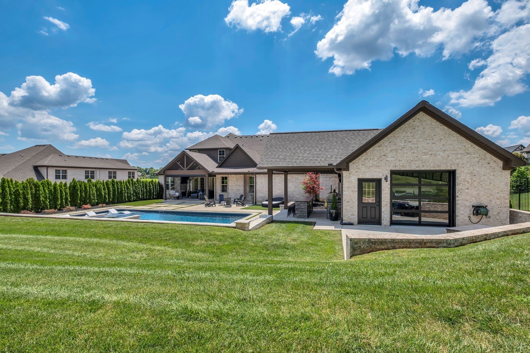 Experience elevated luxury in the prestigious Savannah community of Gallatin. Meticulously curated and upgraded far beyond builder standards, this exceptional residence offers a rare blend of refined design, resort-style amenities, and unmatched outdoor living. With over $500,000 in exterior enhancements, this property delivers a lifestyle of comfort, sophistication, and exclusivity. Perfectly positioned approximately 1 mile from the nearest boat launch, the home caters to the outdoor enthusiast with an oversized RV/boat garage, extended driveway, upgraded garage doors, smart irrigation in the front and back, and impeccable professional landscaping—highlighted by lush evergreens and thoughtfully designed outdoor spaces. The backyard is a private retreat featuring a luxurious pool and spa, an expansive patio with motorized screens, a beautifully crafted outdoor kitchen, and a stunning outdoor fireplace—creating a seamless indoor–outdoor living experience ideal for year-round entertaining. Custom fencing enhances privacy and complements the resort-style setting. Inside, the home exudes elevated elegance with designer lighting, plantation shutters, custom cabinetry, floating shelving, barn doors, shiplap accents, and hardwood flooring throughout the main level. The gourmet kitchen showcases quartz countertops, an extended island, floor-to-ceiling upgraded cabinetry, a farm sink, herringbone backsplash, and a sophisticated butler’s pantry with added refrigeration. Additional luxury upgrades include cedar beams, enhanced custom closets, a beautifully custom-designed laundry room, Nest thermostats, epoxy-finished flooring in the climate-controlled garage, updated fireplaces, and refined finishes throughout the owner’s suite and secondary bedrooms. Every space has been intentionally crafted to deliver beauty, comfort, and timeless style. This extraordinary home offers the ultimate luxury lifestyle in one of Gallatin’s most desirable neighborhoods.