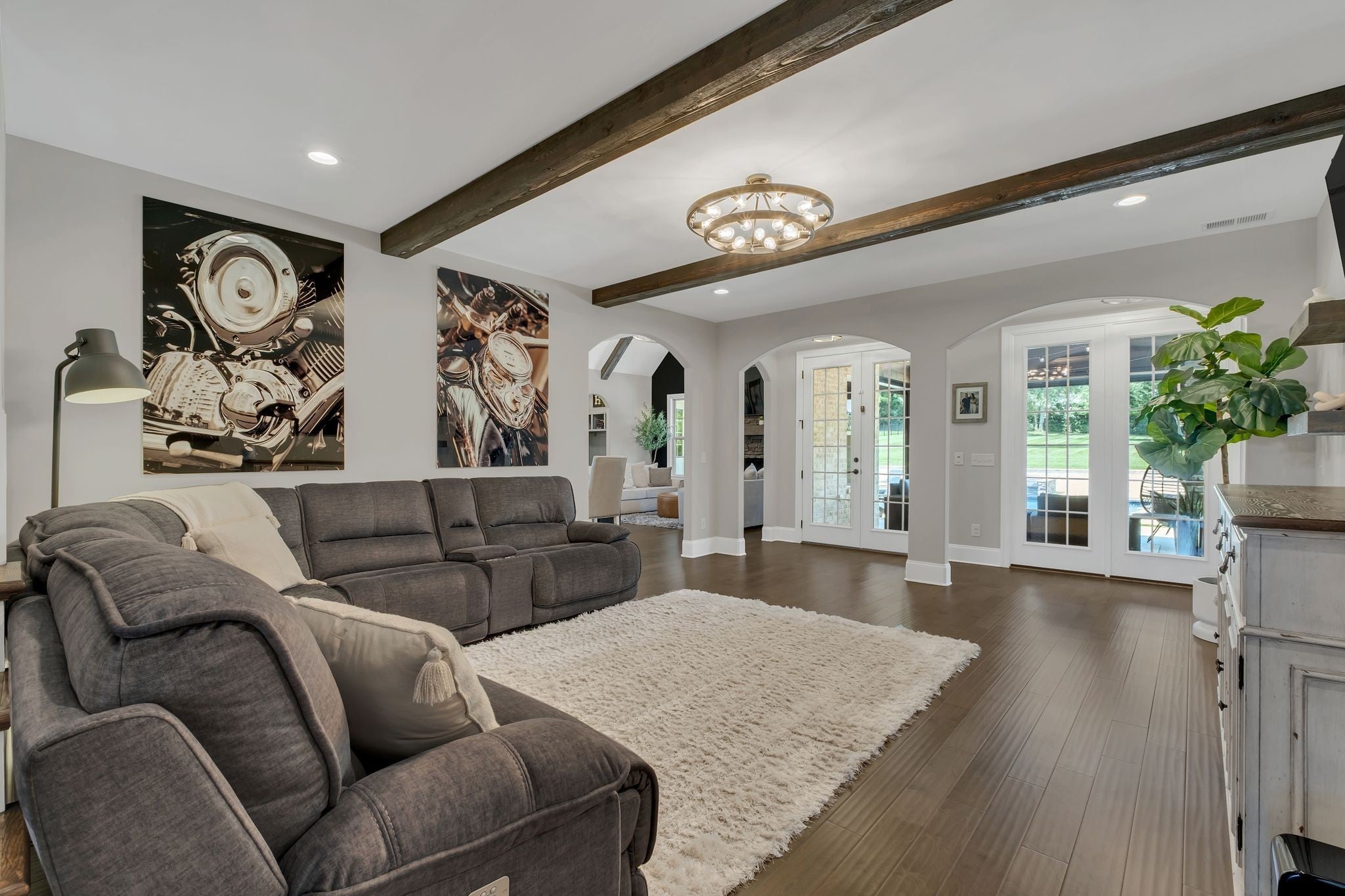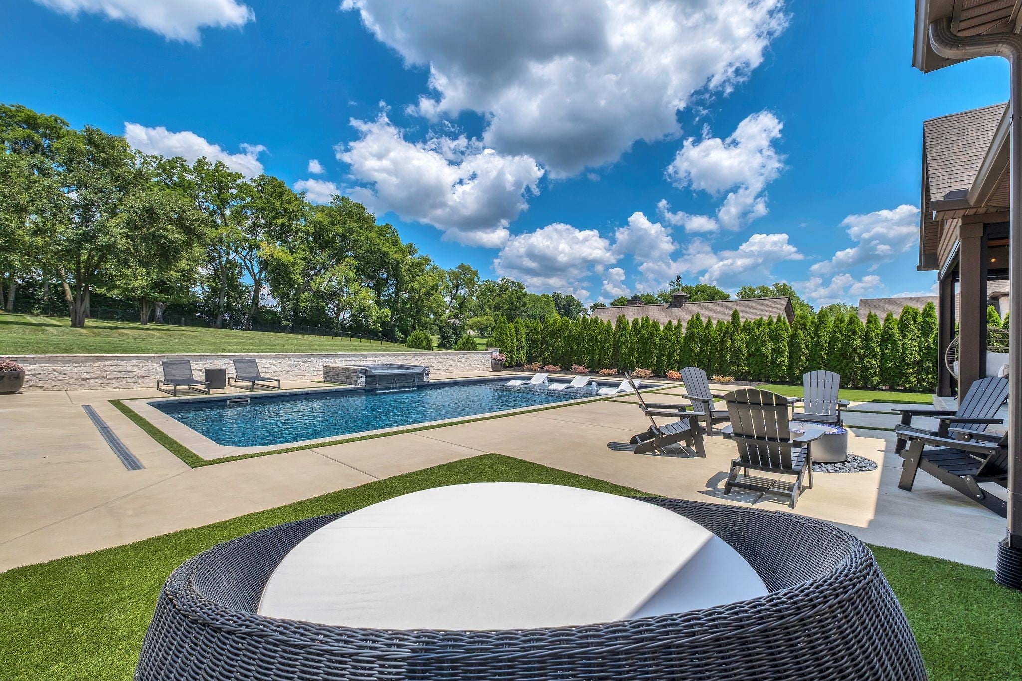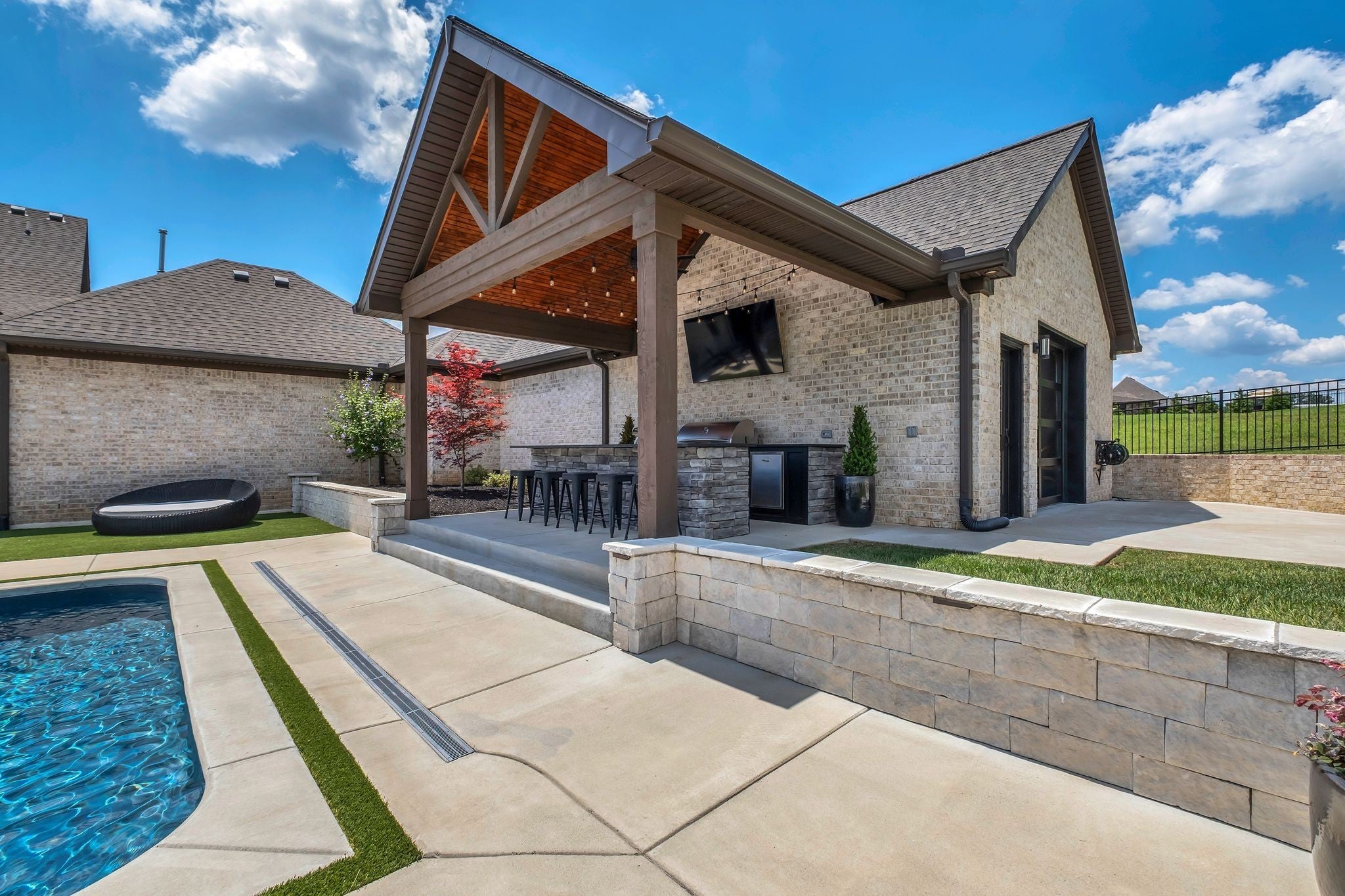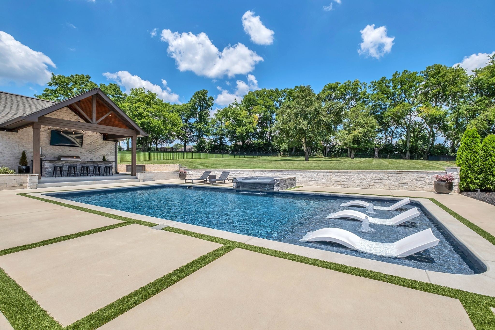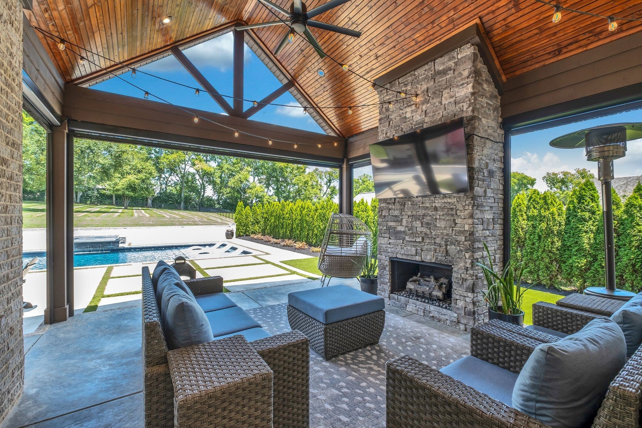 Experience elevated luxury in the prestigious Savannah community of Gallatin. Meticulously curated and upgraded far beyond builder standards, this exceptional residence offers a rare blend of refined design, resort-style amenities, and unmatched outdoor living. With over $500,000 in exterior enhancements, this property delivers a lifestyle of comfort, sophistication, and exclusivity. Perfectly positioned approximately 1 mile from the nearest boat launch, the home caters to the outdoor enthusiast with an oversized RV/boat garage, extended driveway, upgraded garage doors, smart irrigation in the front and back, and impeccable professional landscaping—highlighted by lush evergreens and thoughtfully designed outdoor spaces. The backyard is a private retreat featuring a luxurious pool and spa, an expansive patio with motorized screens, a beautifully crafted outdoor kitchen, and a stunning outdoor fireplace—creating a seamless indoor–outdoor living experience ideal for year-round entertaining. Custom fencing enhances privacy and complements the resort-style setting. Inside, the home exudes elevated elegance with designer lighting, plantation shutters, custom cabinetry, floating shelving, barn doors, shiplap accents, and hardwood flooring throughout the main level. The gourmet kitchen showcases quartz countertops, an extended island, floor-to-ceiling upgraded cabinetry, a farm sink, herringbone backsplash, and a sophisticated butler’s pantry with added refrigeration. Additional luxury upgrades include cedar beams, enhanced custom closets, a beautifully custom-designed laundry room, Nest thermostats, epoxy-finished flooring in the climate-controlled garage, updated fireplaces, and refined finishes throughout the owner’s suite and secondary bedrooms. Every space has been intentionally crafted to deliver beauty, comfort, and timeless style. This extraordinary home offers the ultimate luxury lifestyle in one of Gallatin’s most desirable neighborhoods.