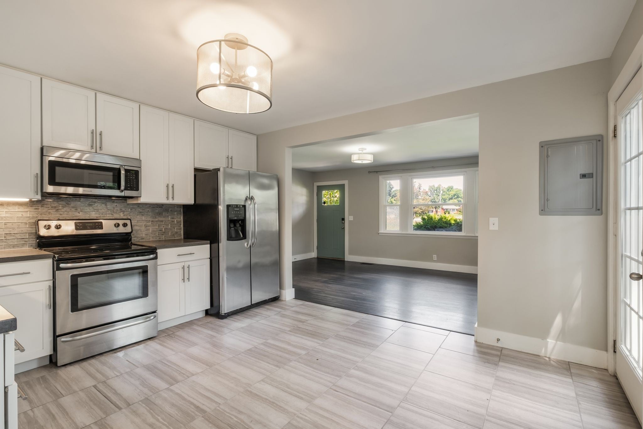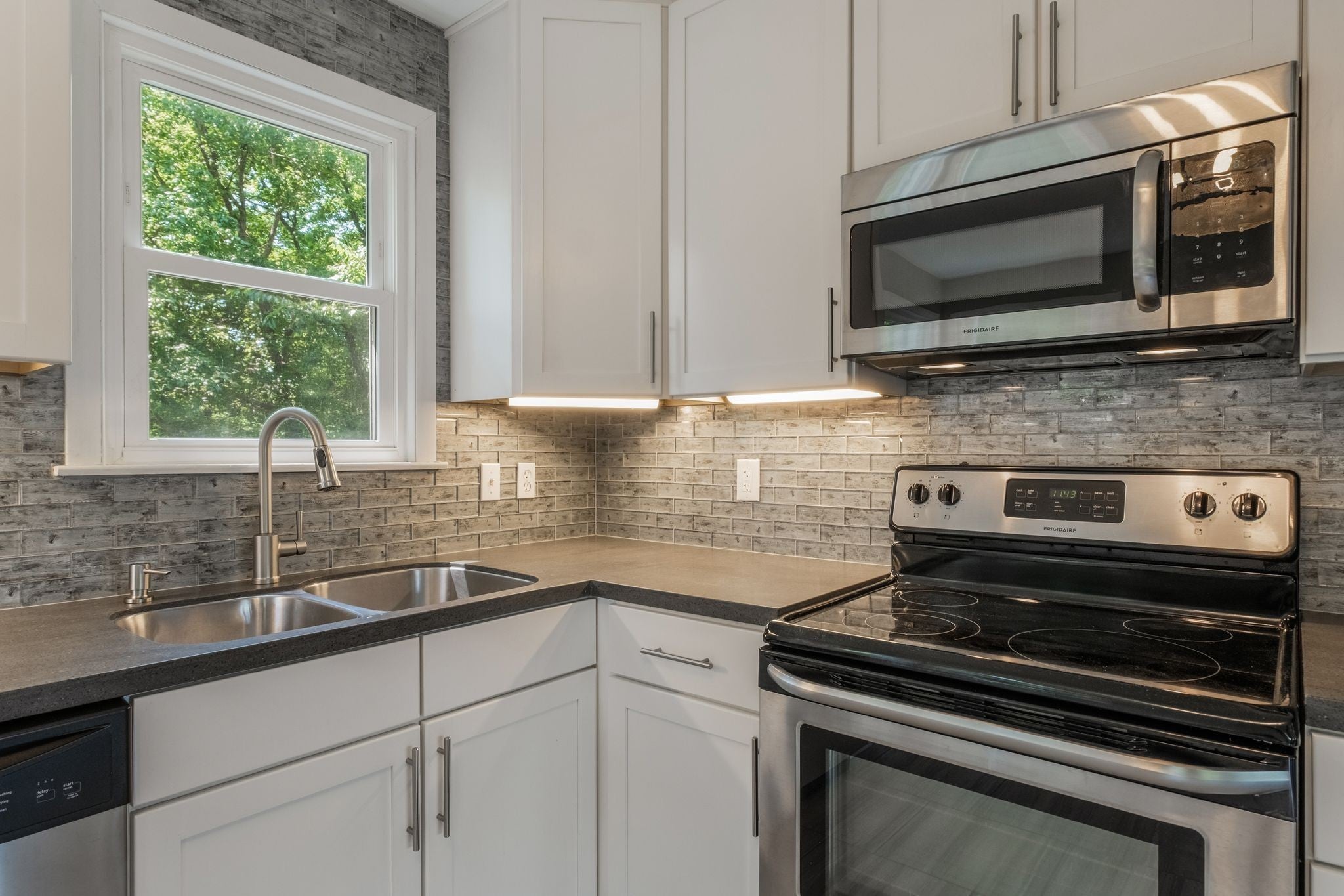 - Electric Oven, Electric Range, Dishwasher, Freezer, Microwave, Refrigerator, Stainless Steel Appliance(s)