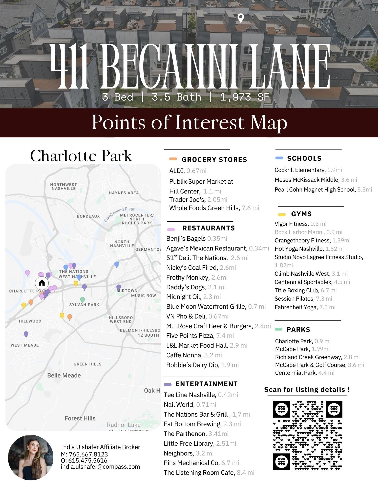 This is a home that works as beautifully as it lives. Set in the heart of Charlotte Park, this thoughtfully designed residence offers modern comfort, flexible living space, and a walkable West Nashville lifestyle without the congestion. The layout is open, efficient, and filled with natural light, creating an easy flow that supports both everyday living and entertaining. The kitchen serves as the true center of the home, featuring clean finishes, a spacious island, and seamless connection to the living and dining areas. Whether you are hosting friends or keeping things simple during the week, the space adapts effortlessly. Upstairs, the primary suite provides a quiet retreat with a walk in closet and a spa inspired en suite bath. Additional bedrooms offer versatility for guests, work from home needs, or creative space. Storage is abundant throughout, and the two car garage keeps everything organized and out of sight. One of the standout features is the private rooftop deck, offering an entirely separate living space ideal for morning coffee, evening unwinding, or enjoying skyline views as the sun sets. Location is where this home truly shines. Walk to Benji’s Bagels & Coffee, Agave’s Mexican Restaurant, or Vigor Fitness. You are minutes from The Nations and Sylvan Park, with easy access to green space at Charlotte Park, boating at Rock Harbor Marina, and quick routes via Interstate 40. If you value low maintenance living, intentional design, and a location that supports your lifestyle instead of competing with it, this home delivers. Well designed. Well located. Ready to be lived in.