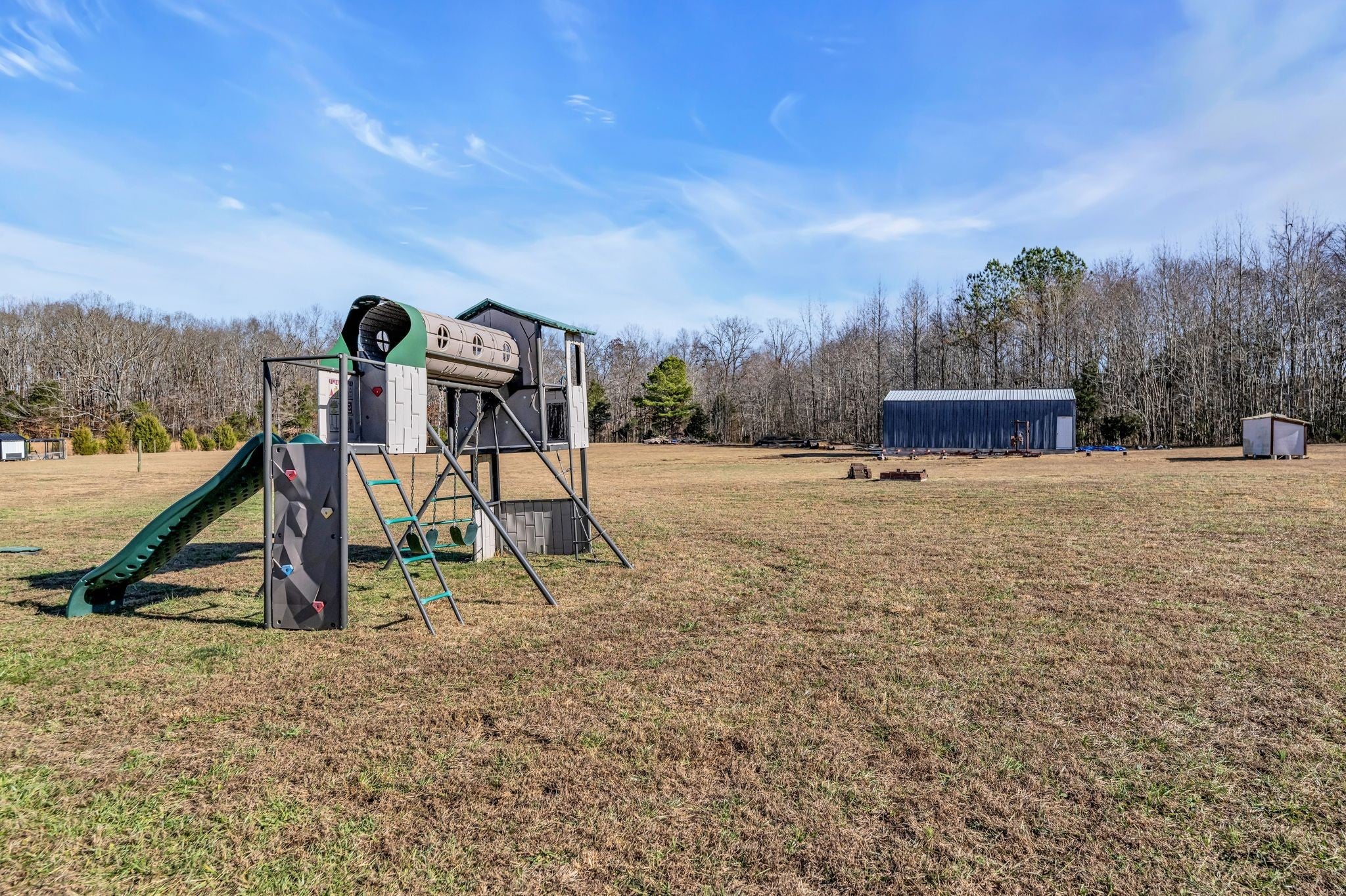 Nestled on 6.55 acres of level land in rural Dickson County, this stunning modern farmhouse offers the perfect blend of privacy, comfort, and convenience. The 1700 sq ft. single-story home features 3 bedrooms, 2.5 baths, and an attached two-car garage with access to a spacious attic above. A large barn sits near the treeline, adding both charm and versatility to the property. Approximately 2.5 acres consist of open, grassy yard space, while the remaining 4+ acres are wooded, providing a peaceful natural backdrop. Inside, the open-concept layout showcases granite countertops in the kitchen, an eat-in dining space as well as additional seating at the center island. In the great room, you will find a stone-accented fireplace to enjoy cozy evenings. Just off the dining area, a door leads outside to a covered patio with an extended concrete slab—ideal for outdoor entertaining and relaxation. The primary bedroom is thoughtfully positioned on the opposite end of the home from the other two bedrooms, offering added privacy and a peaceful retreat. It features a luxurious en suite bath with dual vanities, a large soaking tub, and a separate stone-and-tile shower equipped with three shower heads. Just off the bath, you’ll find a spacious walk-in closet offering ample storage. Completed in Spring 2020, the home has been owned and occupied by only one family and is a non-smoking, no-pet residence. The property has no building restrictions and is equipped with city water, a private septic system, electric HVAC with a heat pump, and high-speed Xfinity Comcast internet accessibility. Located in the Centennial Elementary School District, this home is just 7 miles from Dickson and approximately 1 mile from I-40, offering an easy commute to Nashville while enjoying the tranquility of country.BUYER AND/OR BUYERS AGENT TO VERIFY ALL INFO - INFO NOT VERIFIED BY LISTING AGENT. LIMITED SERVICE LISTING -CONTACT SELLER DIRECTLY FOR ALL SHOWINGS/INQUIRIES. SELLER TO BE MAIN POINT OF CONTACT.