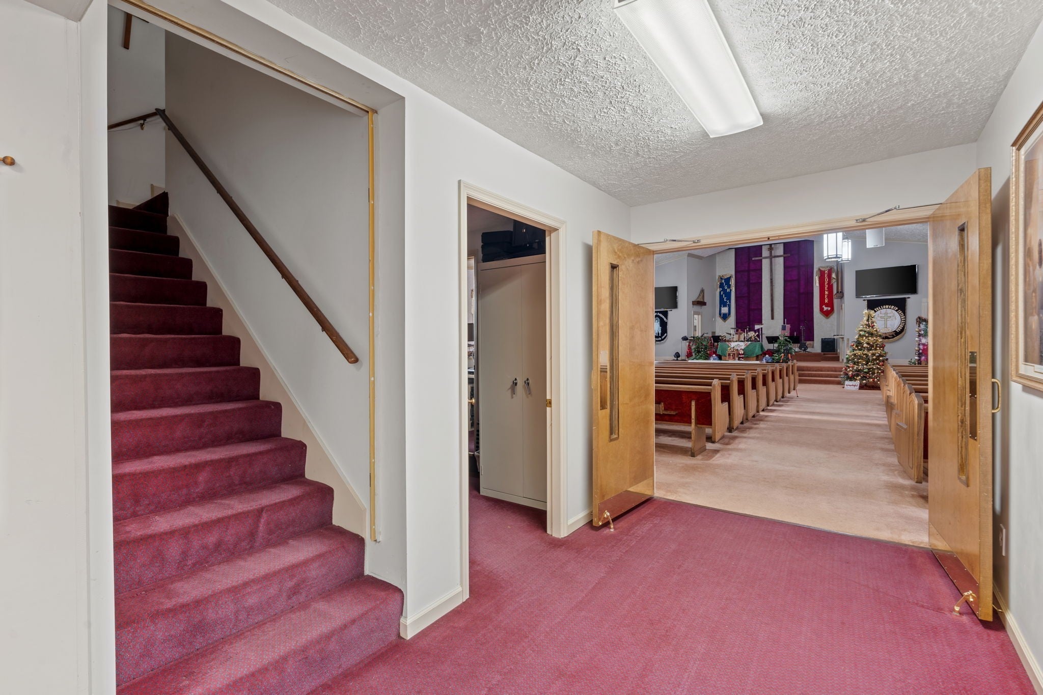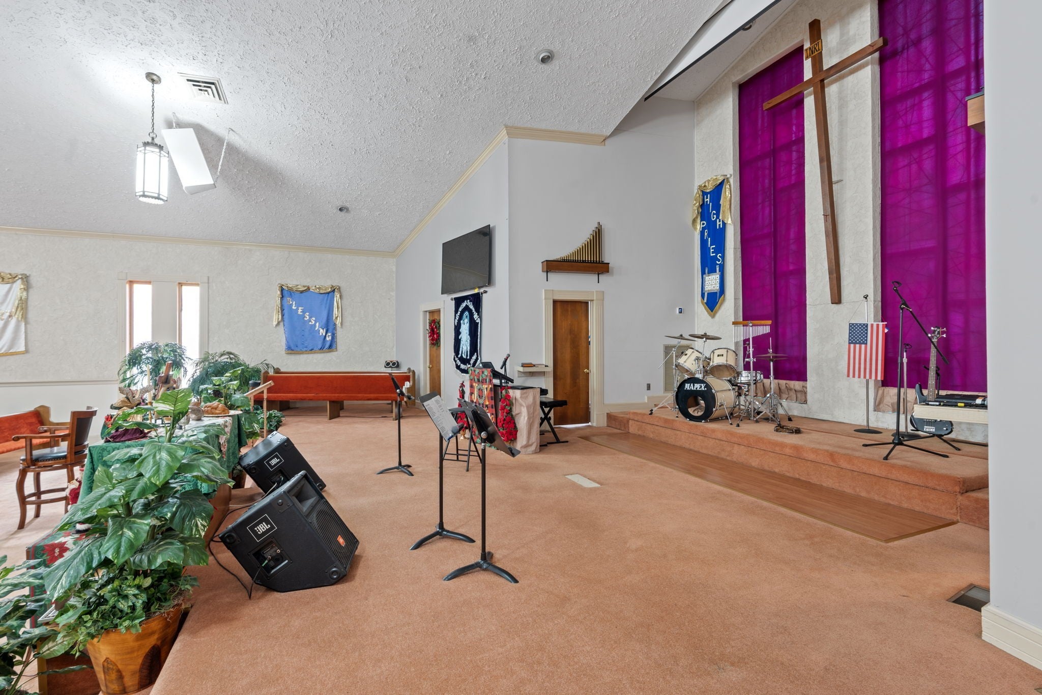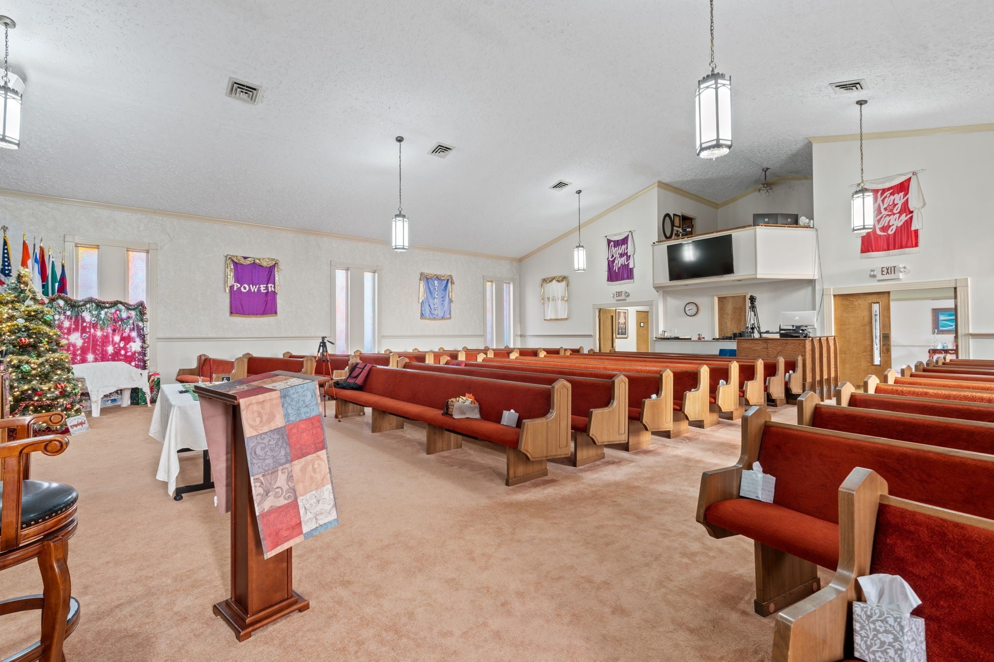 Exceptional opportunity to purchase a multi-building church campus situated on ±4.20 acres in Cleveland, Tennessee at a price below market value! Owner financing is available with acceptable terms. Located at 211 Trewhitt Dr SE, this religious/educational property includes three buildings totaling ±10,021 square feet, offering outstanding flexibility for churches, ministries, schools, nonprofits, or adaptive commercial reuse. The main sanctuary building (±4,221 SF) features a full worship sanctuary with sound booth and media balcony, along with multiple supporting spaces including offices, classrooms, nursery, storage areas, and men's and women's restrooms. A welcoming lobby provides access to two offices, with additional administrative and educational rooms throughout the building. The layout supports both traditional worship and expanded programming needs. Two additional buildings enhance the campus functionality. A ±1,600 SF classroom/nursery building provides flexible space for administration or instruction. The ±4,200 SF Family Life Center (FLC) significantly expands usability and includes a large flex/recreation room, full industrial kitchen, multiple storage rooms, and men's and women's restrooms. The upper level of the FLC offers six additional rooms (three on each side) suitable for offices, classrooms, libraries, meeting rooms, or storage, allowing for a wide range of institutional or community uses. The property features ample asphalt parking, two storage sheds, public electric and water, individual sewer, level topography, and several acres of private woods with a pond and small creek. Improvements span original construction in 1970 with later expansions through 2005. *Property is being sold AS-IS*