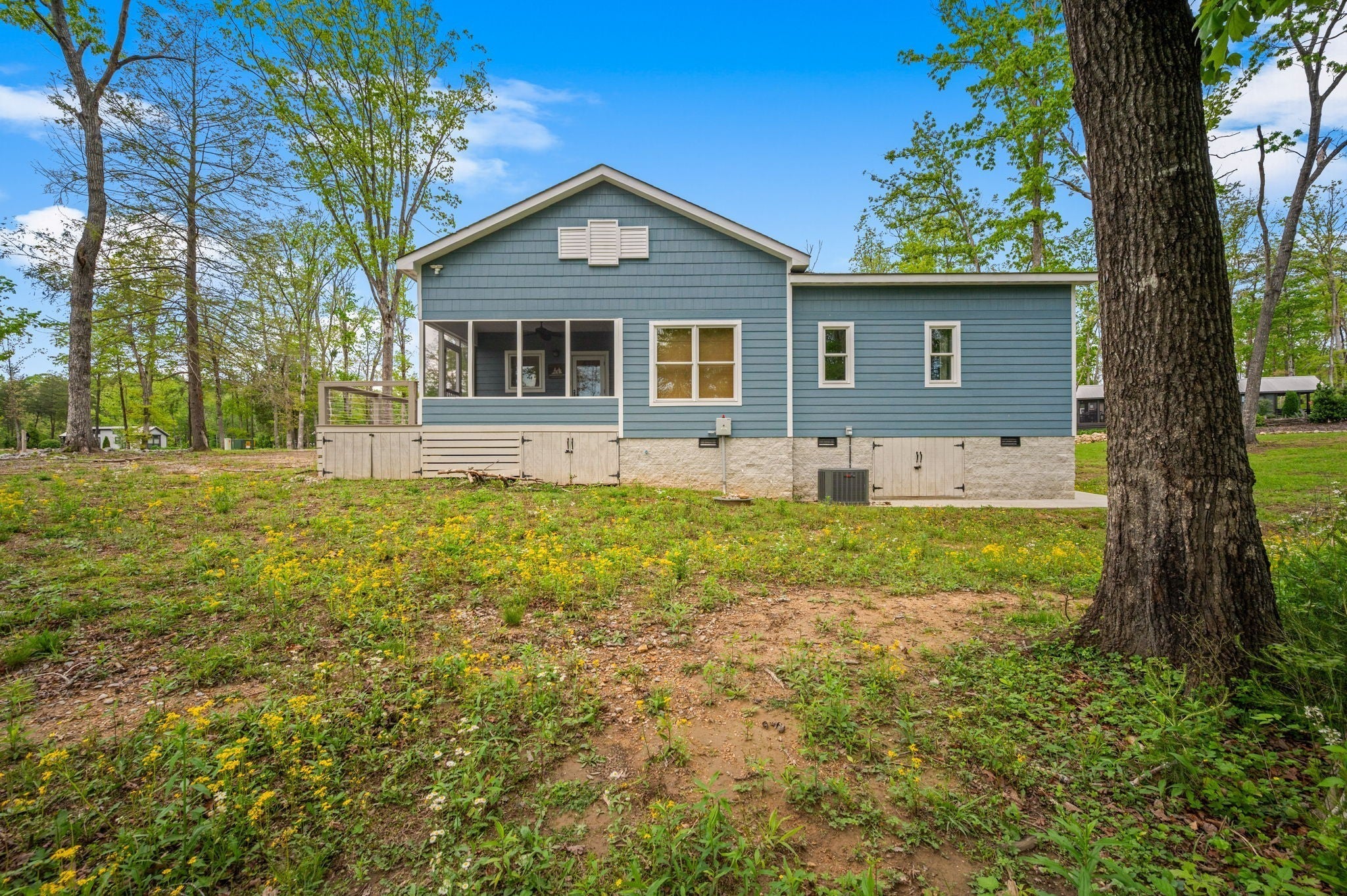 The sunset views from the covered screened deck on this one are worth it! This home is a site built (IT IS NOT A MANUFACTURED HOME) three bed two bath home all on one level. The floor plan is open with soaring ceilings a deck that wraps around to the back screened covered deck! This home ready to make your lake home dreams come true or and investment property to your portfolio. The crawlspace has a dehumidifier. This home is on a private lot, and is also walking distance to 2 public docks, 2 pavilions w/ fire pits and a kayak rental station. Minutes from hiking including the Fiery Gizzard, Foster Falls and The Caverns. Checkout the local fare at Historic High Point Restaurant, Chef inspired Judith Tavern, Mountain Top Restaurant and Mountain Goat Market. Don’t’ miss the local art and antique shops. Home can be used as permanent residence, weekend getaway or short term rental. Manage yourself or take advantage of the on site management company. Explore, relax, listen to the neighbor’s strum their guitars, make memories to last a lifetime in this mountain woodland cottage. 90 min. from Nashville. 45 min. from Chattanooga. 20 min. from Sewanee University. The HOA maintains the landscaped area at the road. HOA mows lawn and mulches leaves. Amenities include walking trails, pavilions, fire pits, playground, community docks for fishing, kayak rental station and community gates. Saltwater pool coming soon.