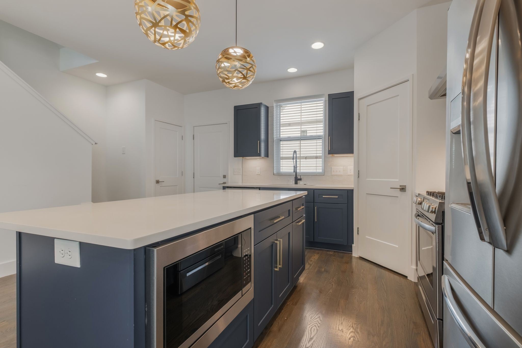- Gas Oven, Gas Range, Dishwasher, Dryer, Microwave, Refrigerator, Stainless Steel Appliance(s), Washer