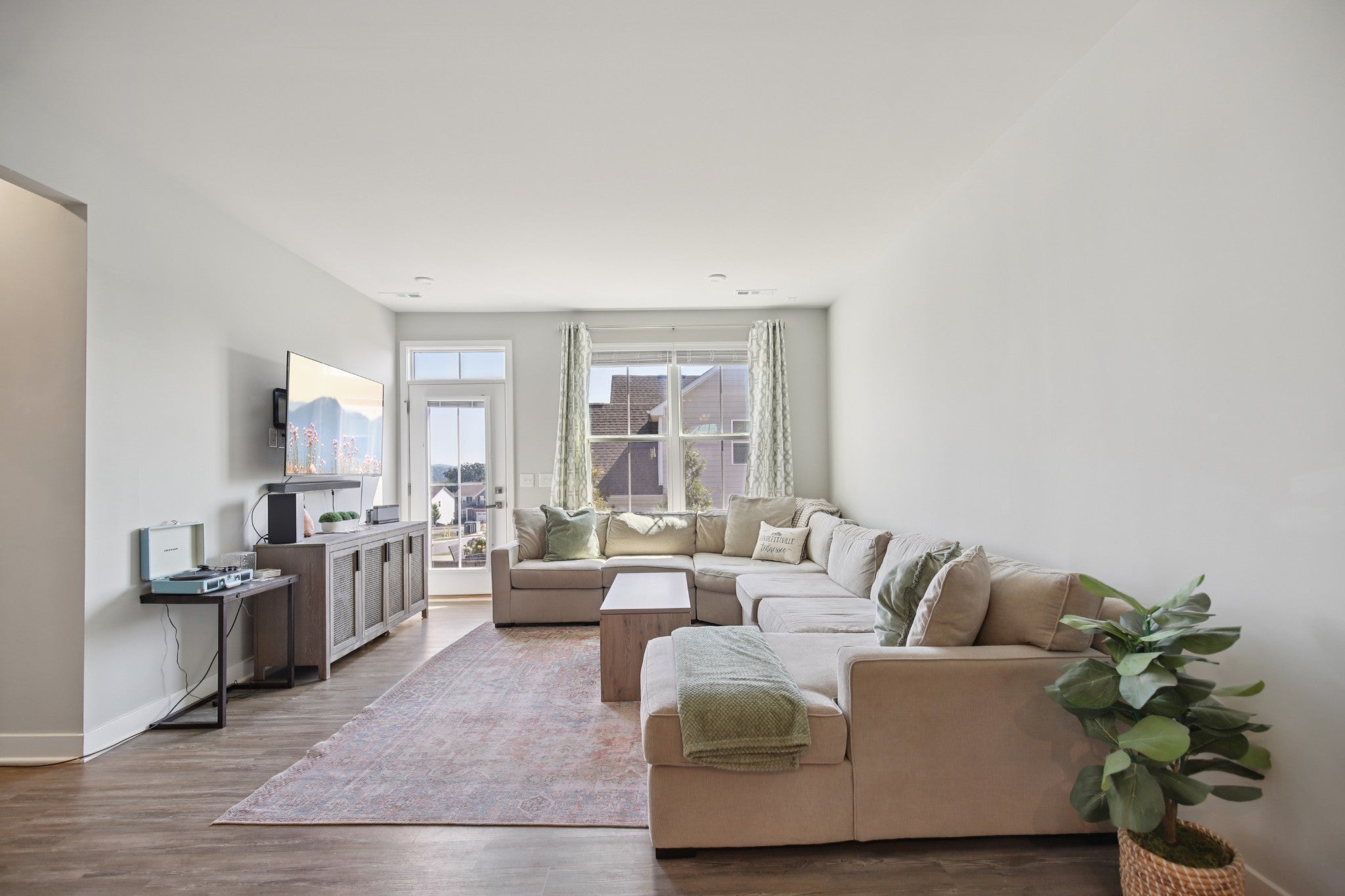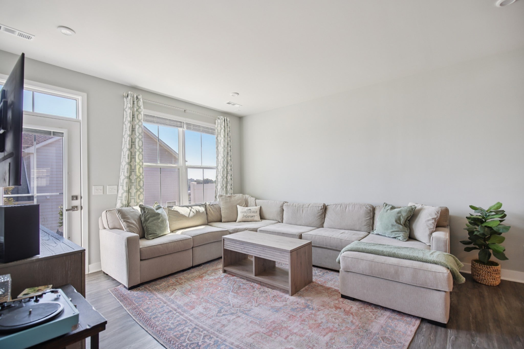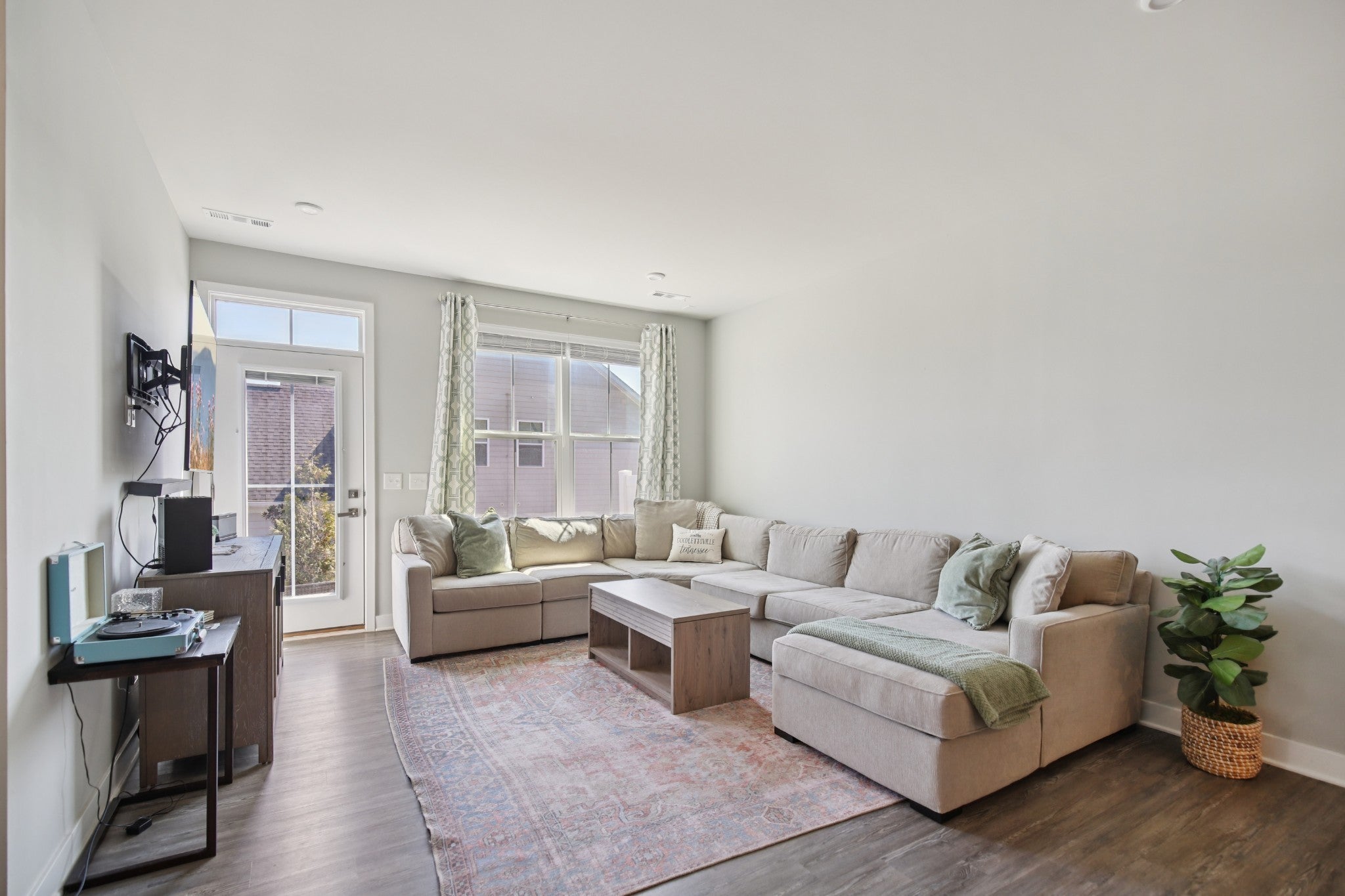 All of the upgrades being the original builders MODEL HOME, "turn-key" END UNIT, (FIRST FLOOR primary bedroom downstairs) townhome in the heart of Goodlettsville! This 3-bedroom, 2.5-bathroom townhome offers over 1,700 square feet of open and inviting living space. A BRAND NEW HVAC was just installed! Pull into your 2 car garage, WITH a one-of-a-kind service door! Also, enjoy your RainBird irrigation system! The main level is upgraded to luxury vinyl plank flooring, a bright kitchen with white cabinets, designer backsplash, and soft close drawers, gorgeous granite countertops, plus an open dining and family room that makes entertaining effortless. Relax and retreat in your first floor private owner’s suite featuring an oversized closet, and a spa-like oversized shower. Enjoy the convenience of a first floor laundry room! Two additional bedrooms, another full bath round out the second floor, complete with plush carpet for added comfort. Enjoy smart living with a Google Nest thermostat, and take advantage of the Goodlettsville amenities just around the corner including pickleball courts, a playground, and walking trails—all just steps from your front door. Perfectly located in the heart of Goodlettsville, you’re just steps away from Peay Park, Moss-Wright Park, Fenway's Dog Park, shopping, dining, and downtown Nashville. With quick access to the airport and major highways, it’s a commuter’s dream. Bonus...its your choice- Publix or Kroger, and pick up a Starbucks on the way! Don’t miss this opportunity to own a home that blends comfort, convenience, and style!