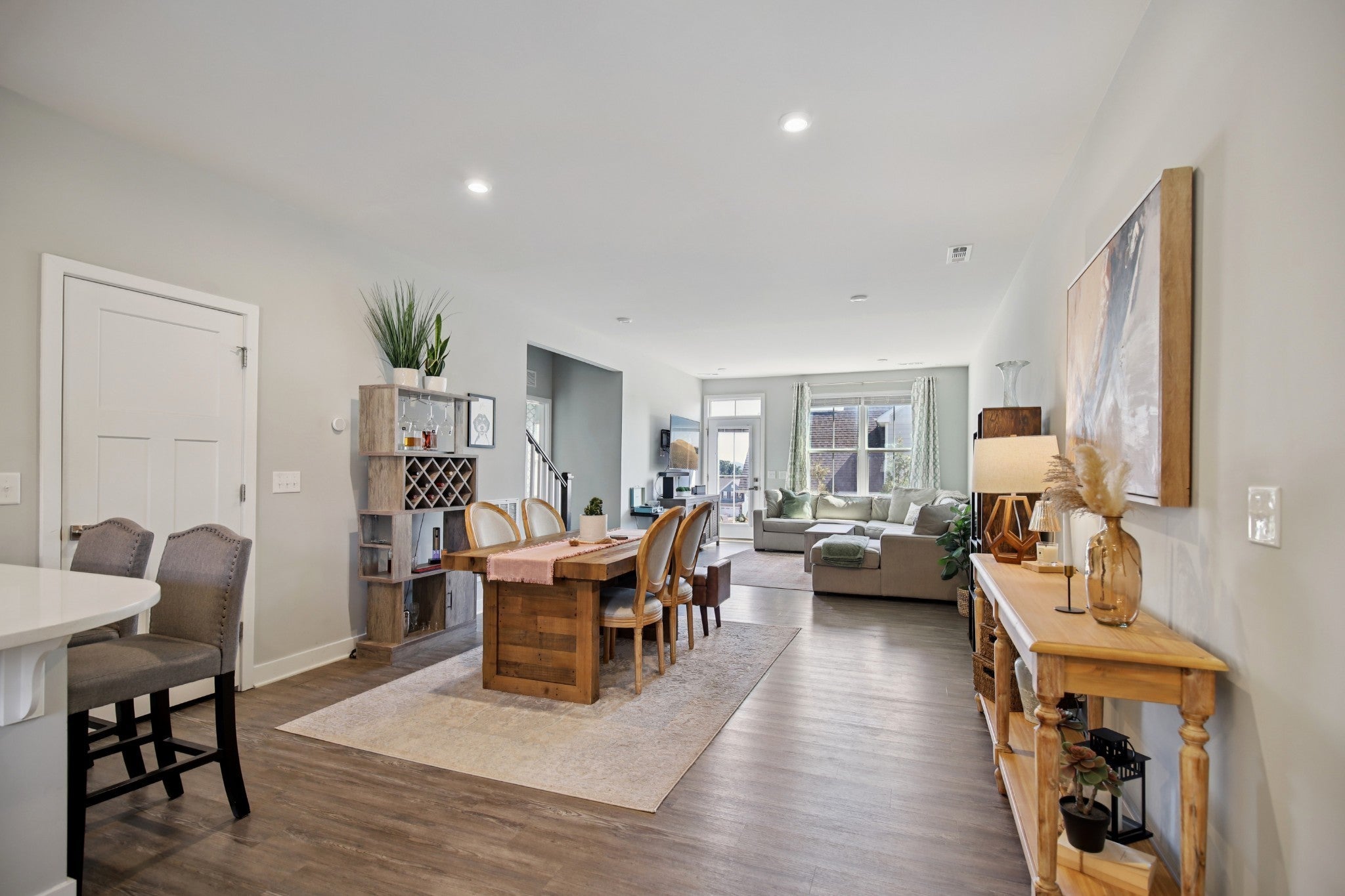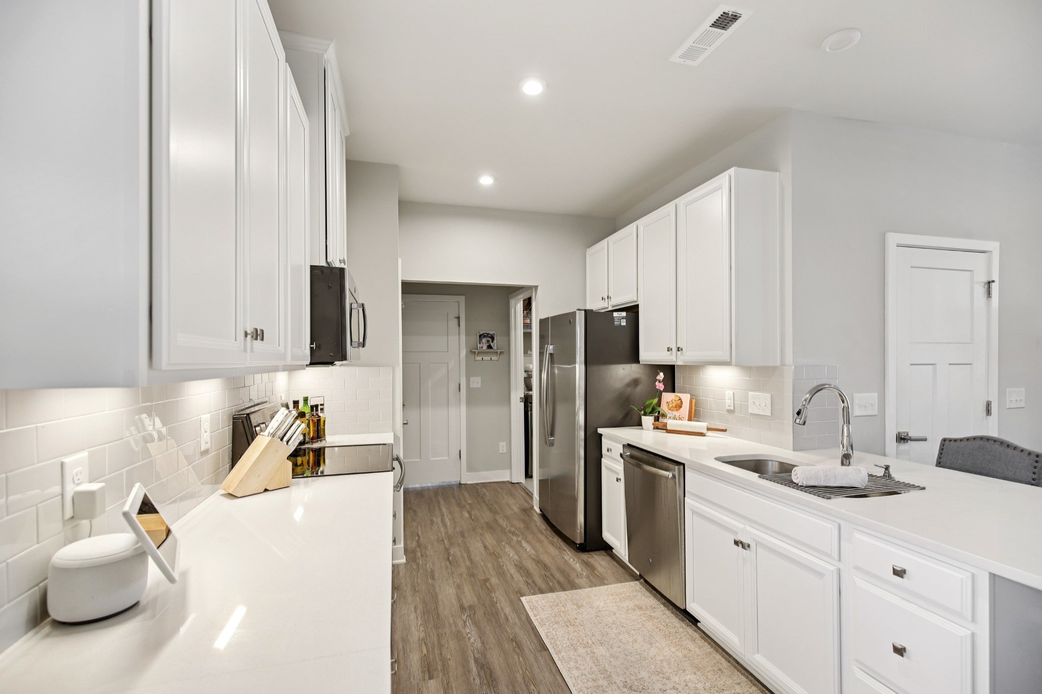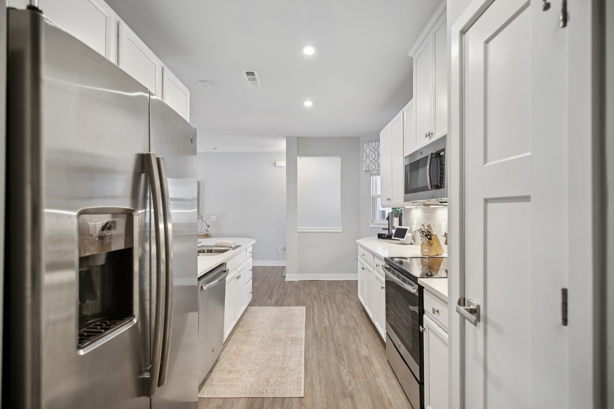 All of the upgrades being the original builders MODEL HOME, "turn-key" END UNIT, (FIRST FLOOR primary bedroom downstairs) townhome in the heart of Goodlettsville! This 3-bedroom, 2.5-bathroom townhome offers over 1,700 square feet of open and inviting living space. A BRAND NEW HVAC was just installed! Pull into your 2 car garage, WITH a one-of-a-kind service door! Also, enjoy your RainBird irrigation system! The main level is upgraded to luxury vinyl plank flooring, a bright kitchen with white cabinets, designer backsplash, and soft close drawers, gorgeous granite countertops, plus an open dining and family room that makes entertaining effortless. Relax and retreat in your first floor private owner’s suite featuring an oversized closet, and a spa-like oversized shower. Enjoy the convenience of a first floor laundry room! Two additional bedrooms, another full bath round out the second floor, complete with plush carpet for added comfort. Enjoy smart living with a Google Nest thermostat, and take advantage of the Goodlettsville amenities just around the corner including pickleball courts, a playground, and walking trails—all just steps from your front door. Perfectly located in the heart of Goodlettsville, you’re just steps away from Peay Park, Moss-Wright Park, Fenway's Dog Park, shopping, dining, and downtown Nashville. With quick access to the airport and major highways, it’s a commuter’s dream. Bonus...its your choice- Publix or Kroger, and pick up a Starbucks on the way! Don’t miss this opportunity to own a home that blends comfort, convenience, and style!