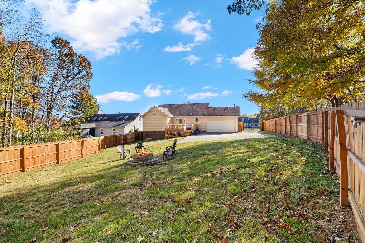 Ranch style living on a large, private one acre lot, just minutes to shopping, Publix less than 5 miles away, dining, and parks. This home is located in the Sherwood Oaks subdivision, offering a quiet community atmosphere. Updates include new primary bath has a large walk-in shower, beautiful lighting and vanity. Freshly painted throughout. New fence with remote gated entry, and new back deck. New water heater 2024. This house offers a blend of appealing features, a large fenced back yard, and a location within a well-regarded school district, making it desirable place to live for the right buyer.