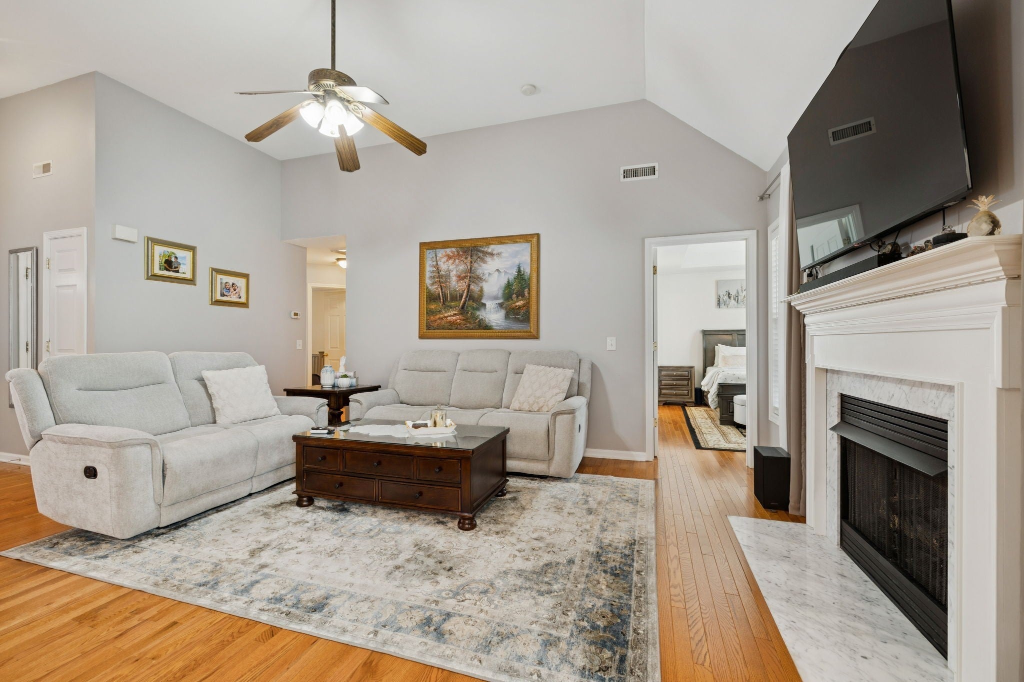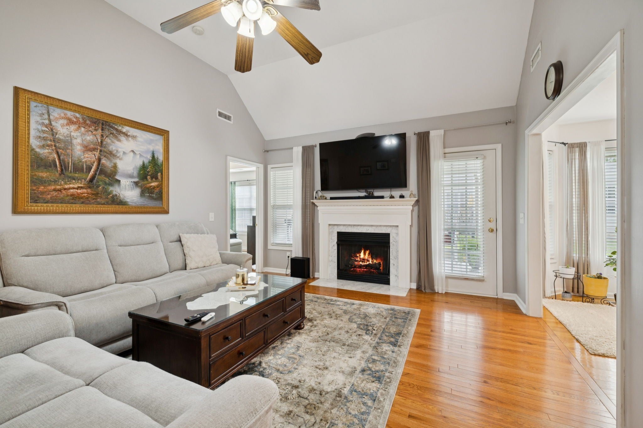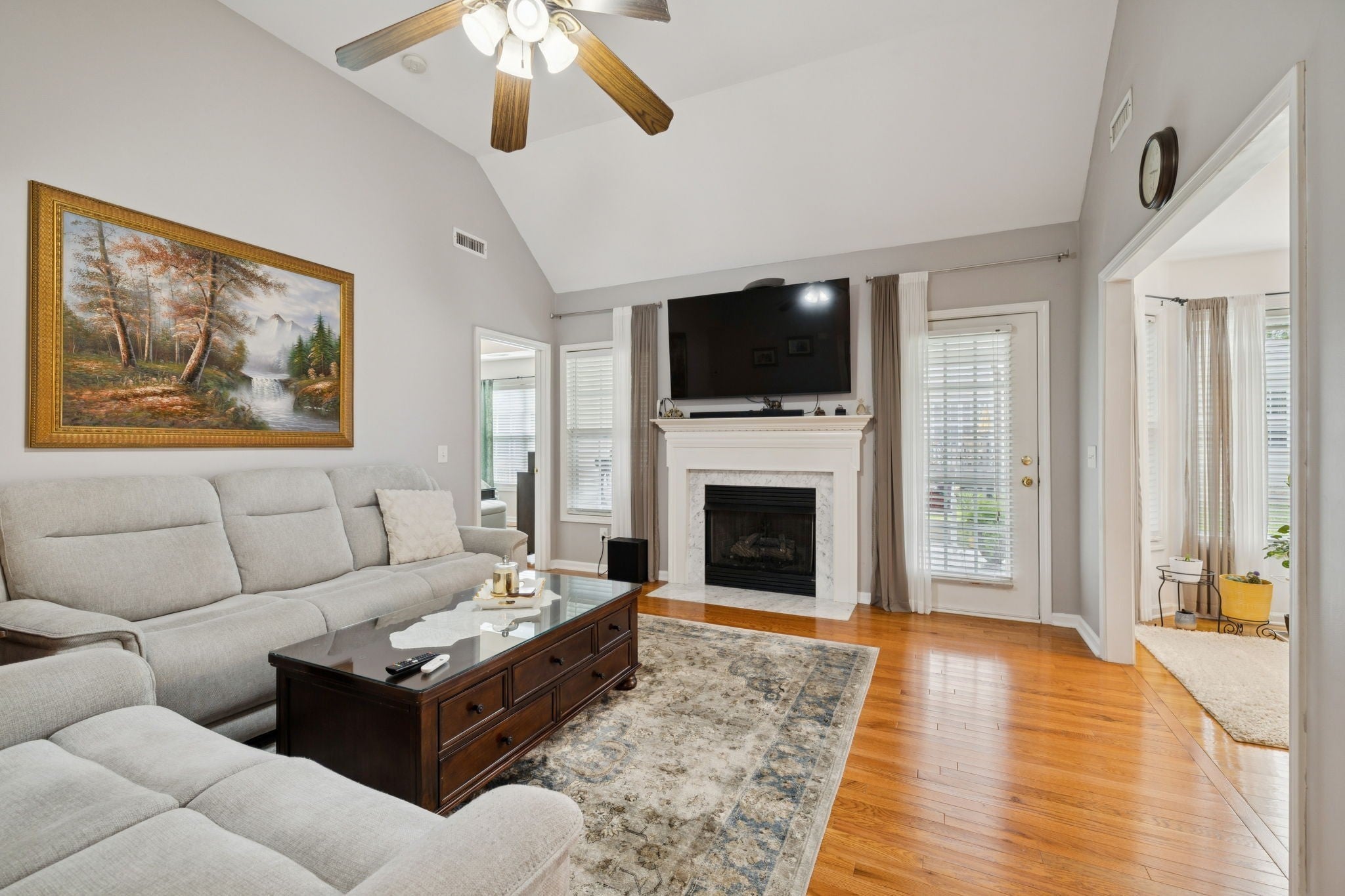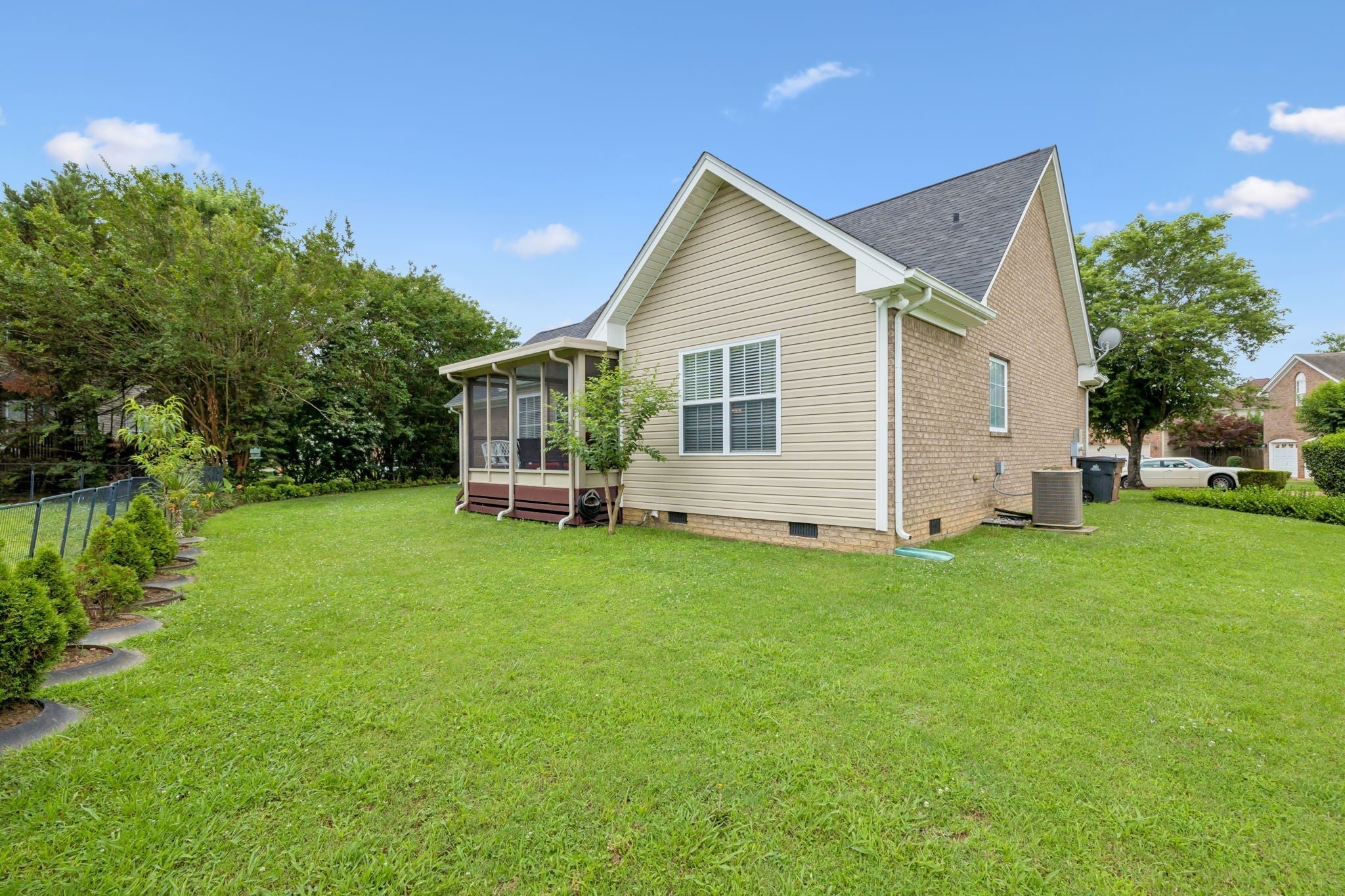 This charming brick home offers a warm and welcoming atmosphere, both inside and out: Situated on a quiet cul-de-sac, the home features a tidy lawn and well-maintained landscaping. Upon entry, you’re greeted with gleaming hardwood floors. The living room has vaulted ceilings with a ceiling fan, a cozy fireplace with a marble surround. Large windows and glass doors let in lots of natural light, and lead to a sunny additional sitting area with a charming screened in porch. Brand new HVAC! Upgraded gourmet kitchen with stainless appliances and granite countertops and a spacious bonus room upstairs. Walking trails around the Rivers Edge neighborhood border the Stones River and connect to the Stones River Greenway and the new 800 acre Ravenwood Park! Come tour this amazing home today!