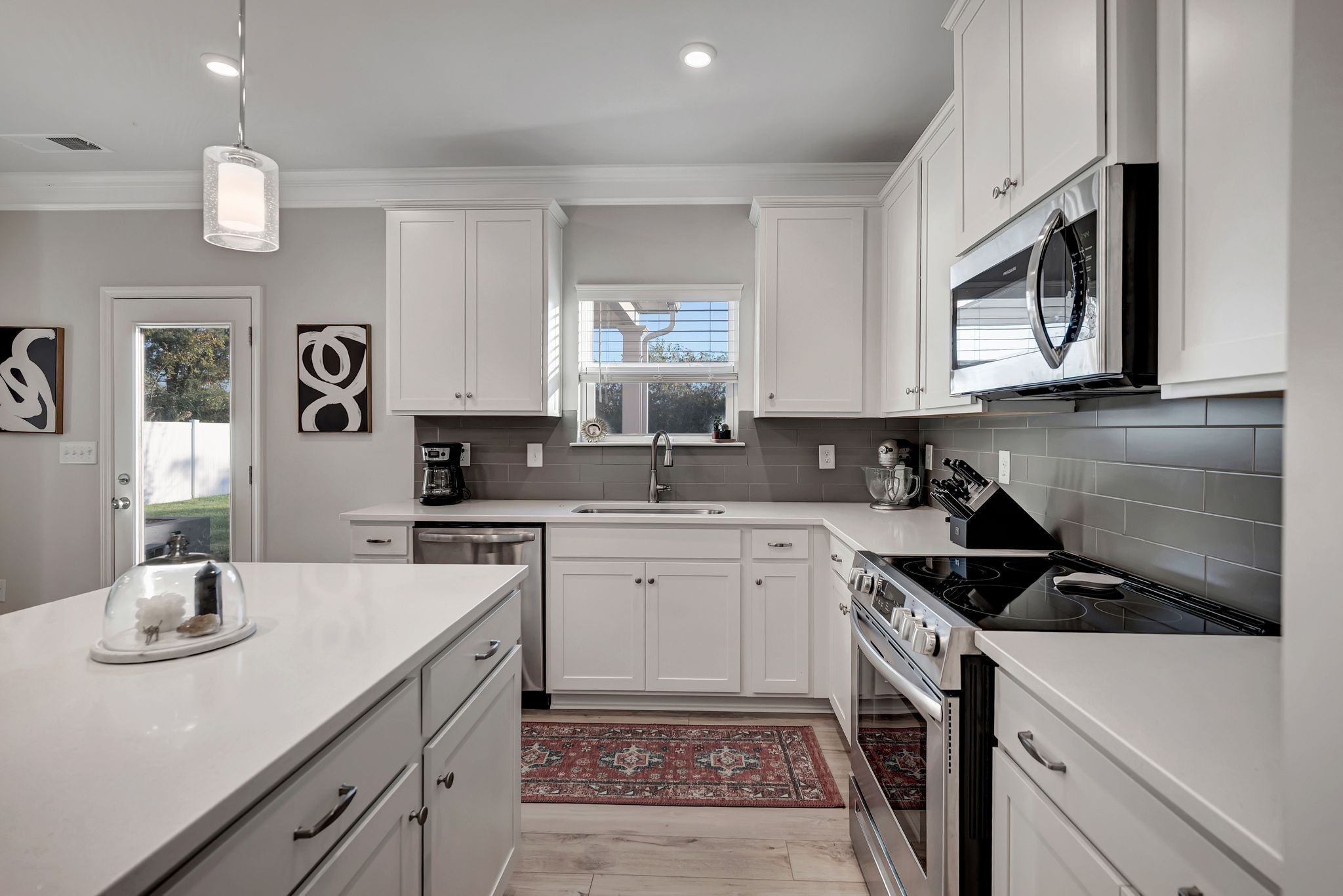 - Electric Oven, Electric Range, Dishwasher, Disposal, Microwave, Stainless Steel Appliance(s)
