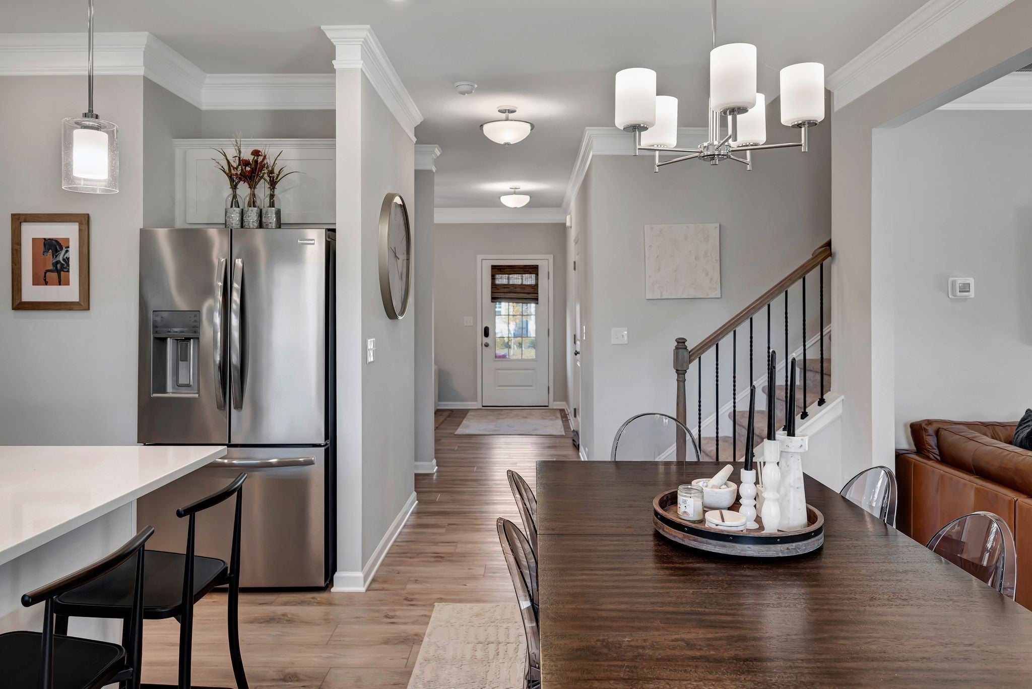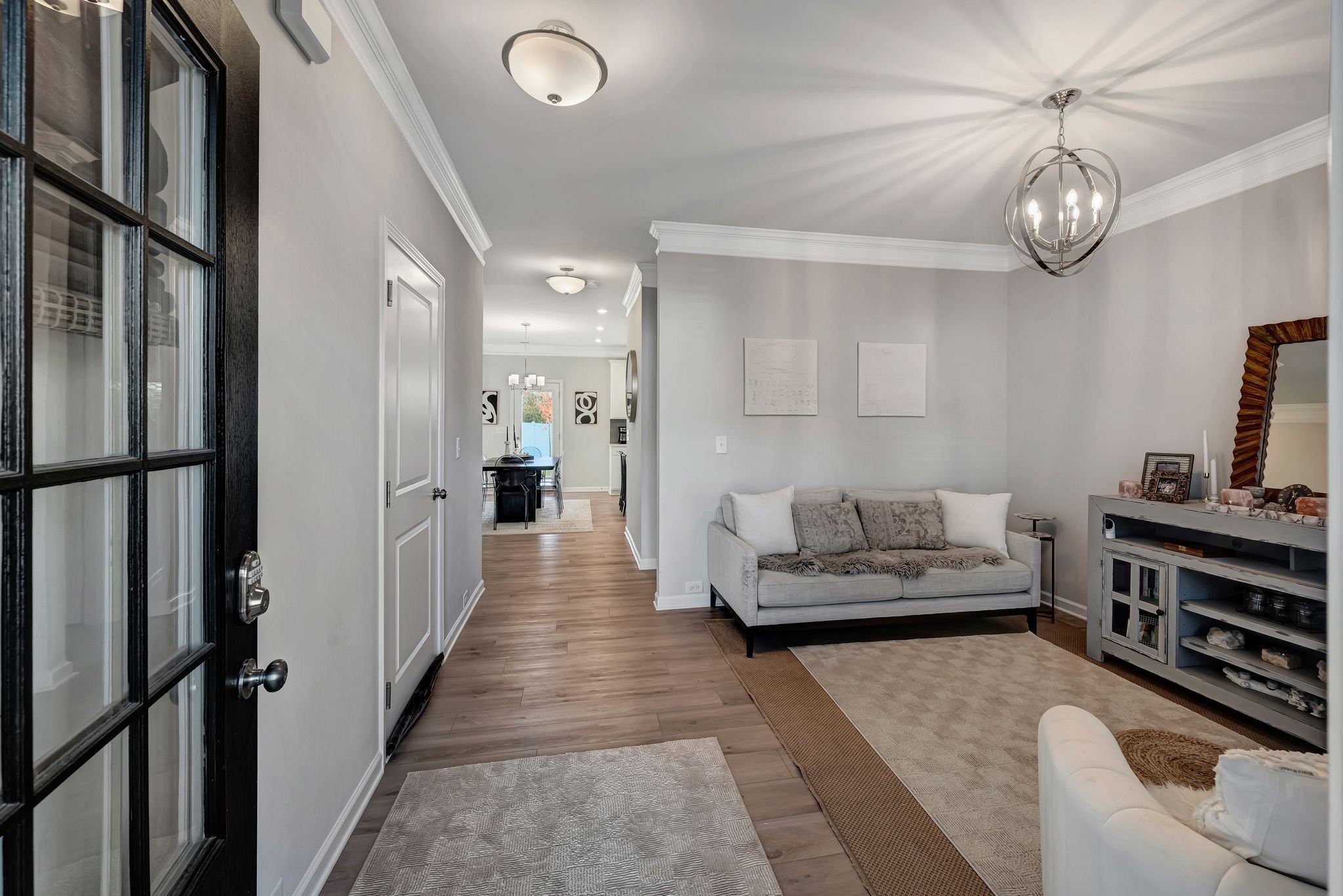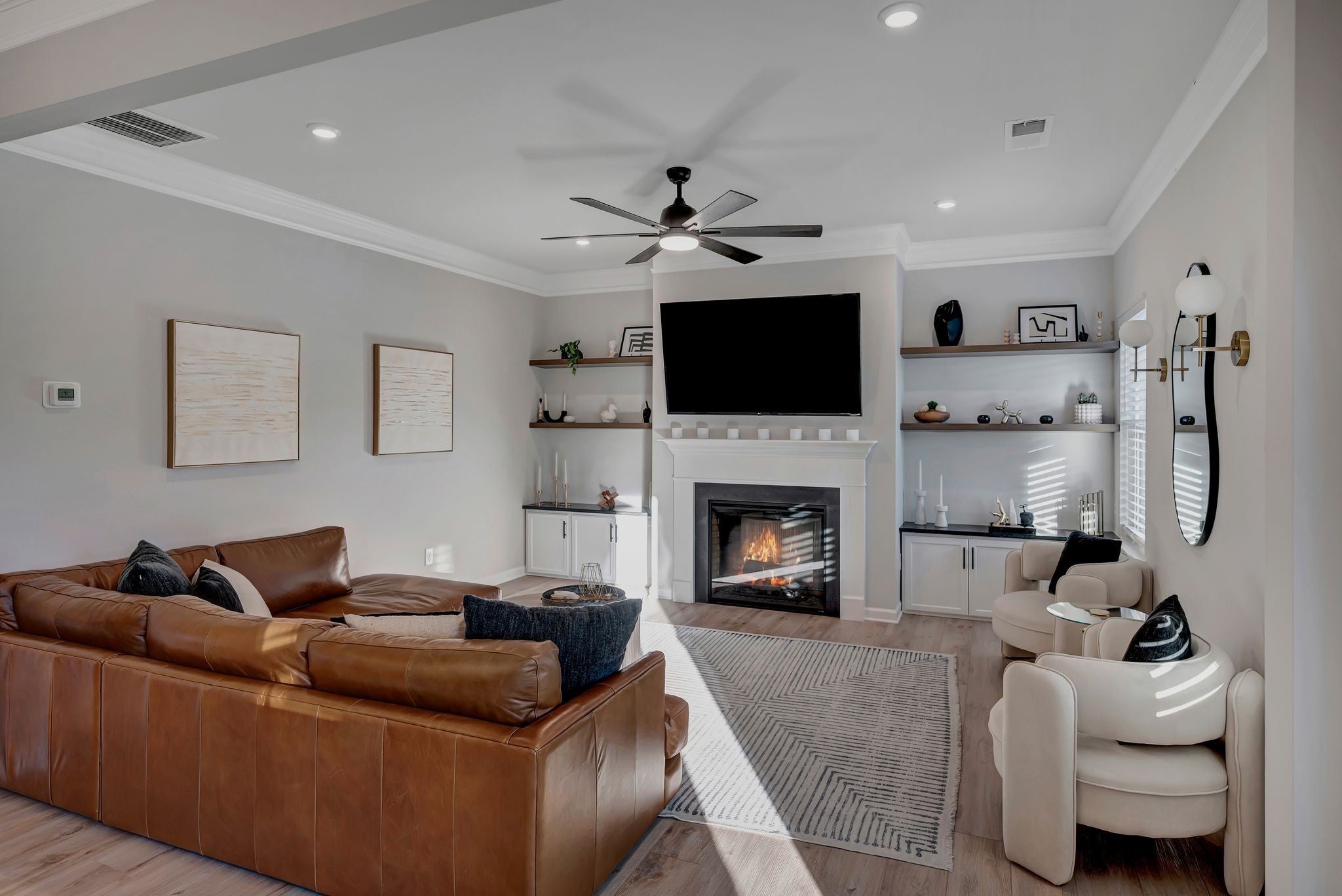 Welcome to this exceptional 2023 built home in The Crossing at Drakes Branch where modern design meets meticulous care | This spacious 2053 square feet of thoughtfully designed living space has 4 bedrooms 2.5 baths and a 2 car garage that feels better than new enhanced by numerous builder and owner upgrades | The main level showcases elegant crown molding, a warm electric fireplace, and stunning granite built-ins with custom shelving in the living room, perfect for both everyday living and entertaining | The open concept layout and kitchen with an island flow seamlessly to an extended covered patio, ideal for relaxing or hosting friends and family outdoors | The fully fenced backyard features a white vinyl fence and irrigation system covering the entire lawn gives both beauty and ease of maintenance | Upstairs, all bedrooms are outfitted with contemporary ceiling fans, providing comfort and style throughout | The primary suite is spacious and inviting with the modern finishes and generous walk in closet space | The garage has been upgraded with an epoxy coated floor and painted walls creating a clean and functional space | Every detail of this home reflects pride of ownership and thoughtful enhancements beyond standard builder offerings | This move-in-ready home combines modern construction, premium upgrades, and impeccable maintenance | Don't miss your opportunity to own a like-new home without the wait!