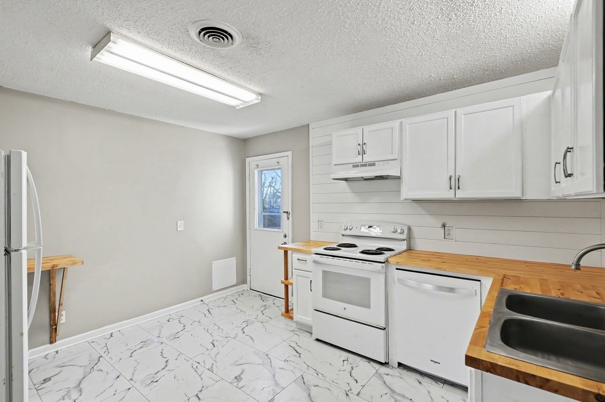 - Electric Range, Dishwasher, Disposal, Refrigerator