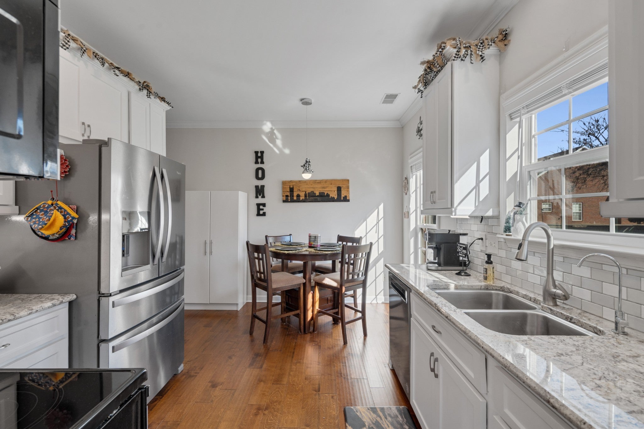 - Electric Range, Dishwasher, Disposal, Microwave, Refrigerator, Stainless Steel Appliance(s)