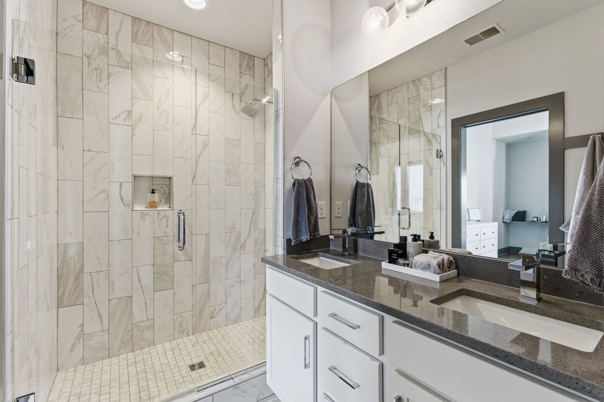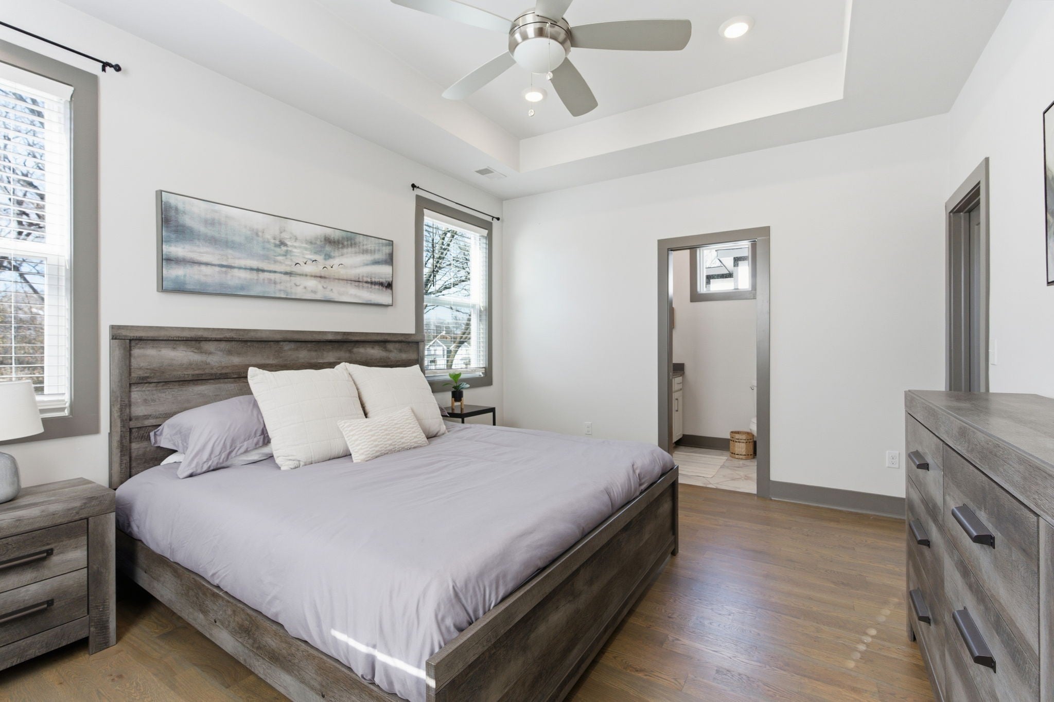 Welcome to 807 21st Ave N, where contemporary design meets everyday comfort. FULLY FURNISHED. Owner is moving states! This beautifully maintained 2-bedroom, 2-bath home offers an ideal layout with both spacious bedrooms featuring ensuite baths—perfect for guests or roommates. Step inside to discover high quality hardwood floors throughout and a stylish, open-concept living space. The high-end kitchen is a chef’s dream, complete with premium stainless steel appliances, sleek cabinetry, and modern finishes. Out back, enjoy your own private retreat with an oversized deck and fenced-in yard—ideal for gatherings and grilling. Located minutes from downtown Nashville on a quiet dead end street, this home blends urban convenience with peaceful privacy. Don’t miss your chance to live in one of the city’s most desirable up-and-coming neighborhoods!