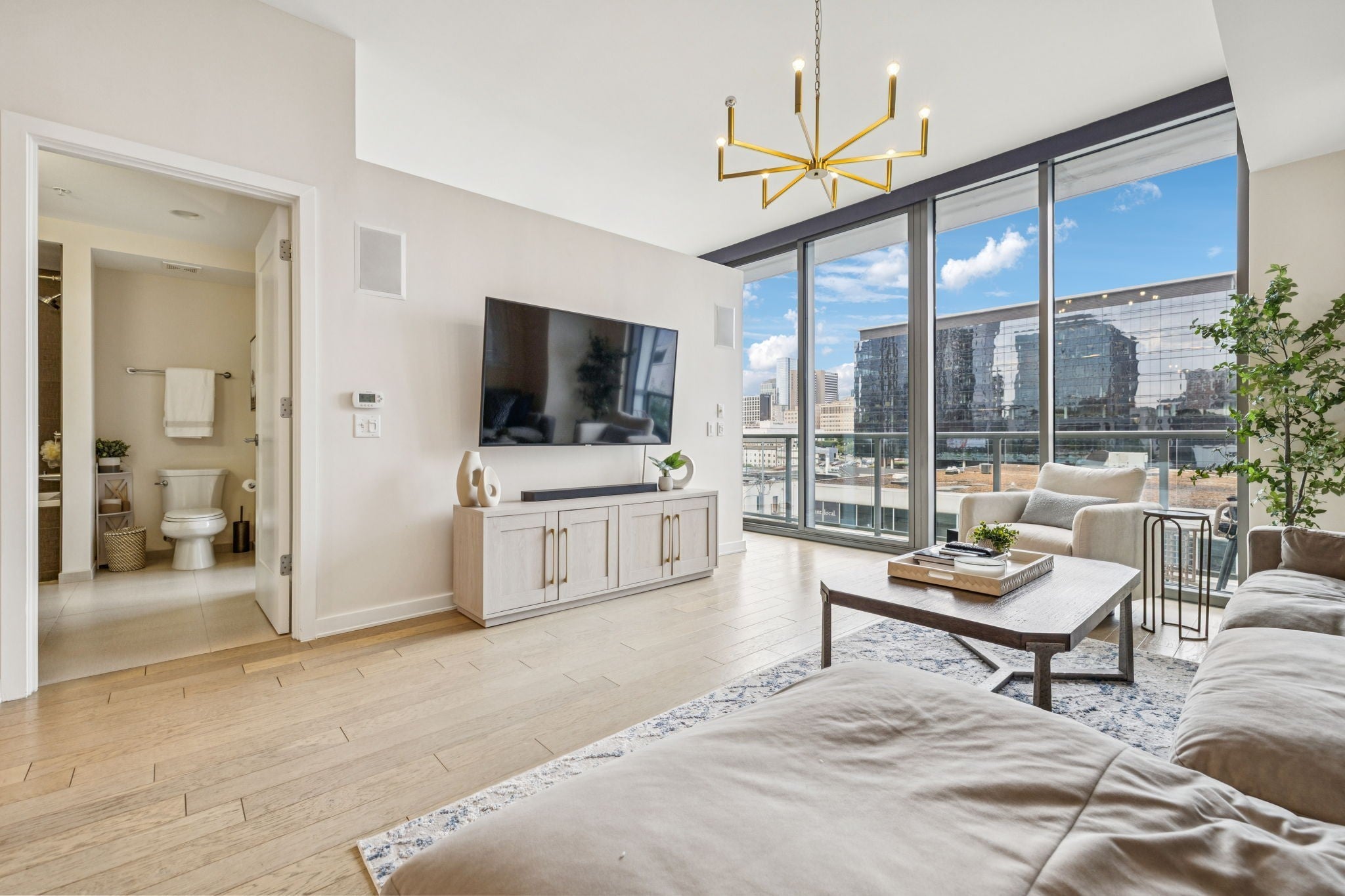Experience elevated living at the Twelve Twelve in the largest 1-bedroom floor plan available— boasting 908 sqft of stylish, move-in-ready space. This upgraded unit includes a custom built-in bar with wine fridge, motorized shades, and a private balcony offering sweeping views of the Gulch. Comes equipped with one dedicated parking space and storage unit. Residents enjoy top-tier amenities, including a resort-style pool, fitness center and BRAND NEW state of the art Owner’s Lounge. A rare find in one of Nashville’s premier high-rises.