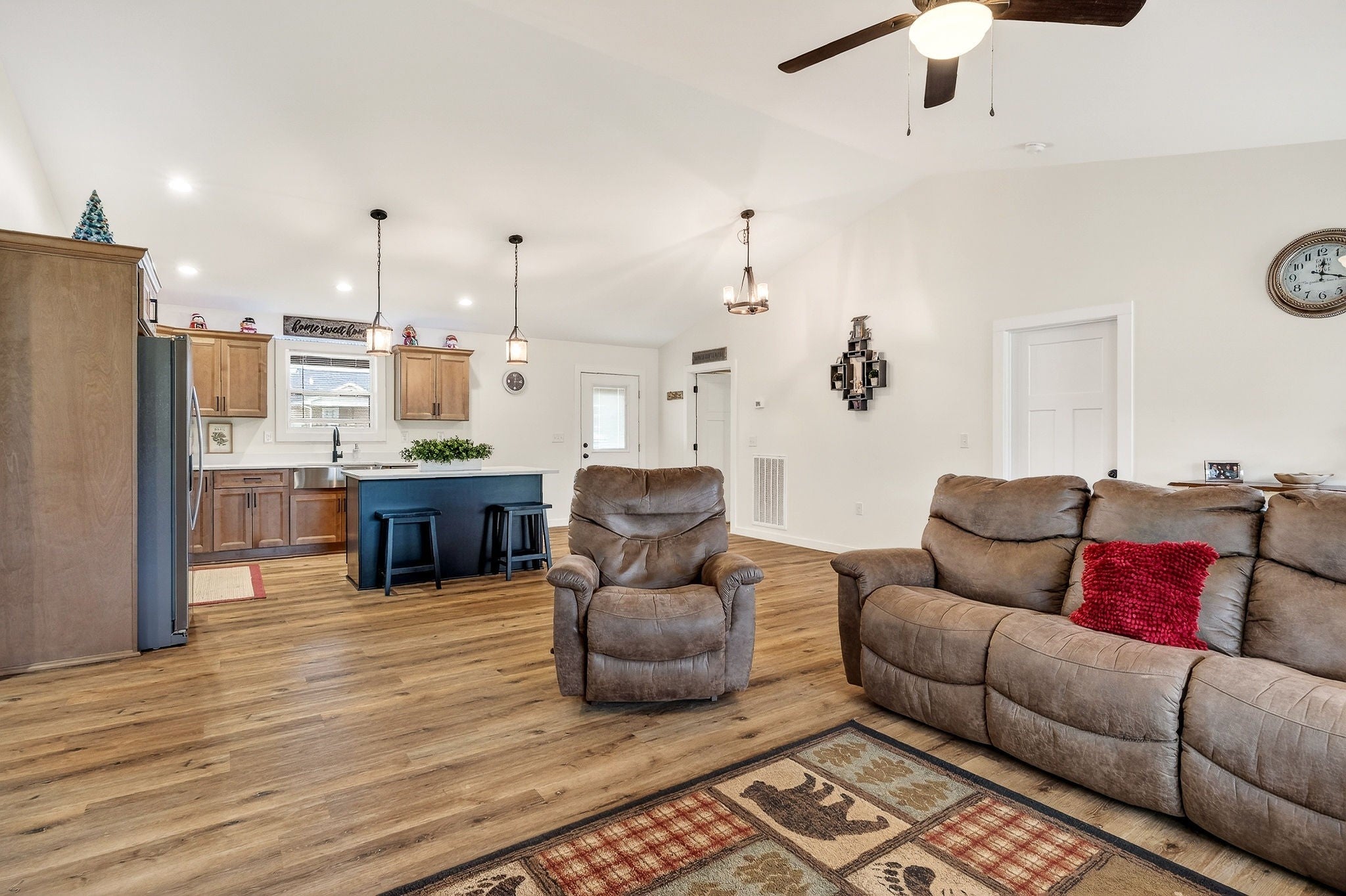 Welcome to this better-than-new, beautifully crafted home built in 2024! This residence blends style and functionality with modern amenities. It offers three spacious bedrooms, two well-appointed bathrooms, and a bright, open-concept design connecting the kitchen, dining, and living areas. The kitchen, a true centerpiece, features a large island for entertaining, custom cabinetry, and modern appliances. Contemporary touches include chic light fixtures and color schemes. Outside, enjoy a covered front porch, a back deck for relaxation, 2 car garage as well as a large detached garage. New vinyl fenced back yard. Located off Highway 111, it provides easy access to local amenities. Don't miss the chance to make this stunning property your new sanctuary!