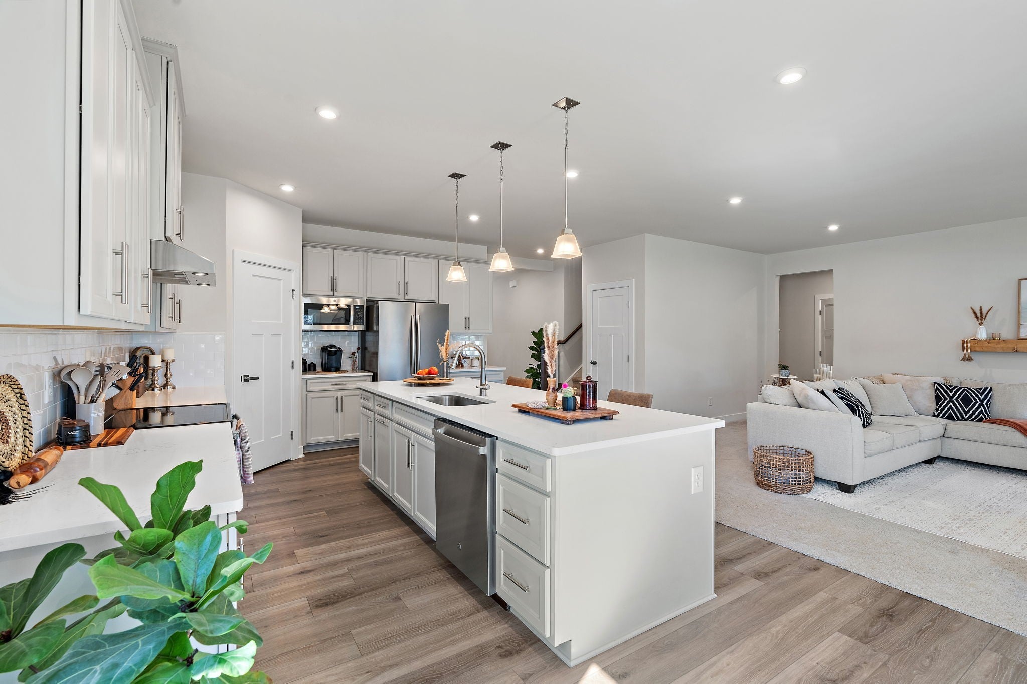 Welcome to 406 Ryan Ave, a beautifully designed 2024-built home offering unbeatable space, flexibility, modern style and tons of upgrades in a highly walkable location in Gallatin! This 5-bedroom, 3-full bathroom, 3,010 sq ft residence is a short walk from restaurants and the Publix Windsong development, making everyday living both convenient and connected. The heart of the home is a large open-concept kitchen featuring an expansive upgraded island with seating, quartz countertops, tile backsplash, stainless steel appliances, gray painted cabinetry, and a generous walk-in pantry—perfect for entertaining or daily life. A standout feature is the home’s two private suites, with one located downstairs and another larger suite upstairs, ideal for multi-generational living, guests, or flexible work-from-home needs. The upstairs primary suite is spacious and refined, offering dual vanities, a tile walk-in shower, and dual walk-in closets. Additional highlights include a large upstairs bonus room perfect for a media space, playroom or homeschool room, and a fully fenced backyard with large covered patio ready for pets, and outdoor gatherings. Built with modern efficiency and design in mind, this home delivers both comfort and functionality. Other notable features include a bespoke main-level office space with glass french doors, and a perfect "rocking chair" covered front porch! Conveniently located just 36 minutes from Nashville BNA Airport, this clean, move-in-ready property combines new construction quality with an unbeatable lifestyle and location. Don’t miss the opportunity to make this exceptional home yours! Ask about 1-year home warranty with acceptable offer and 1% towards lower rate with preferred lender.