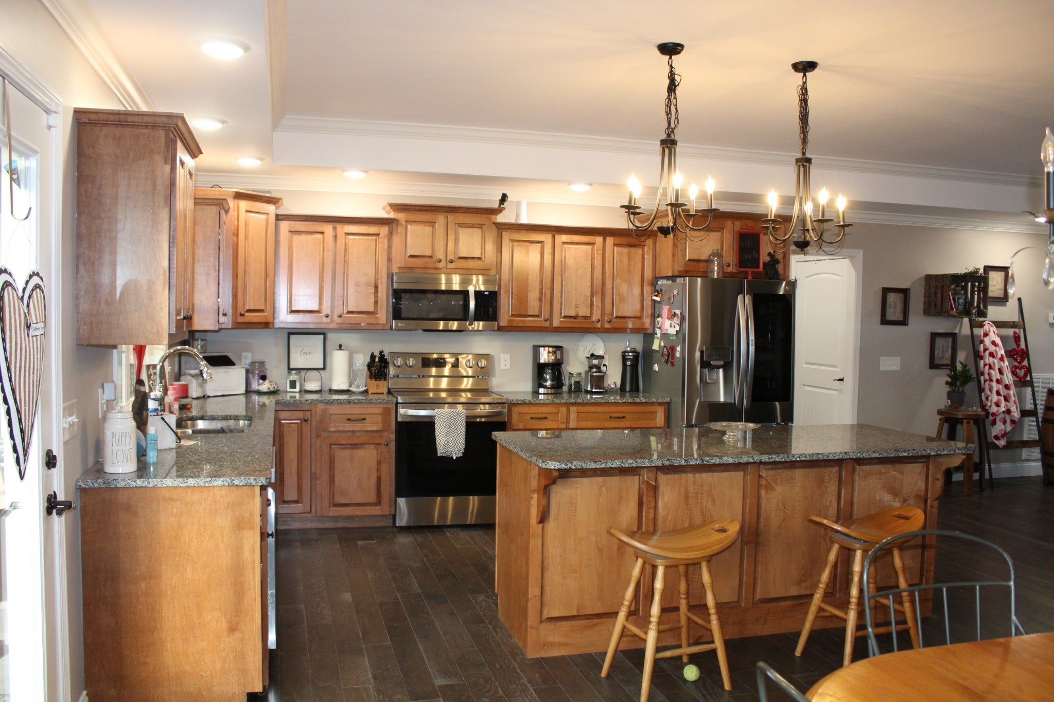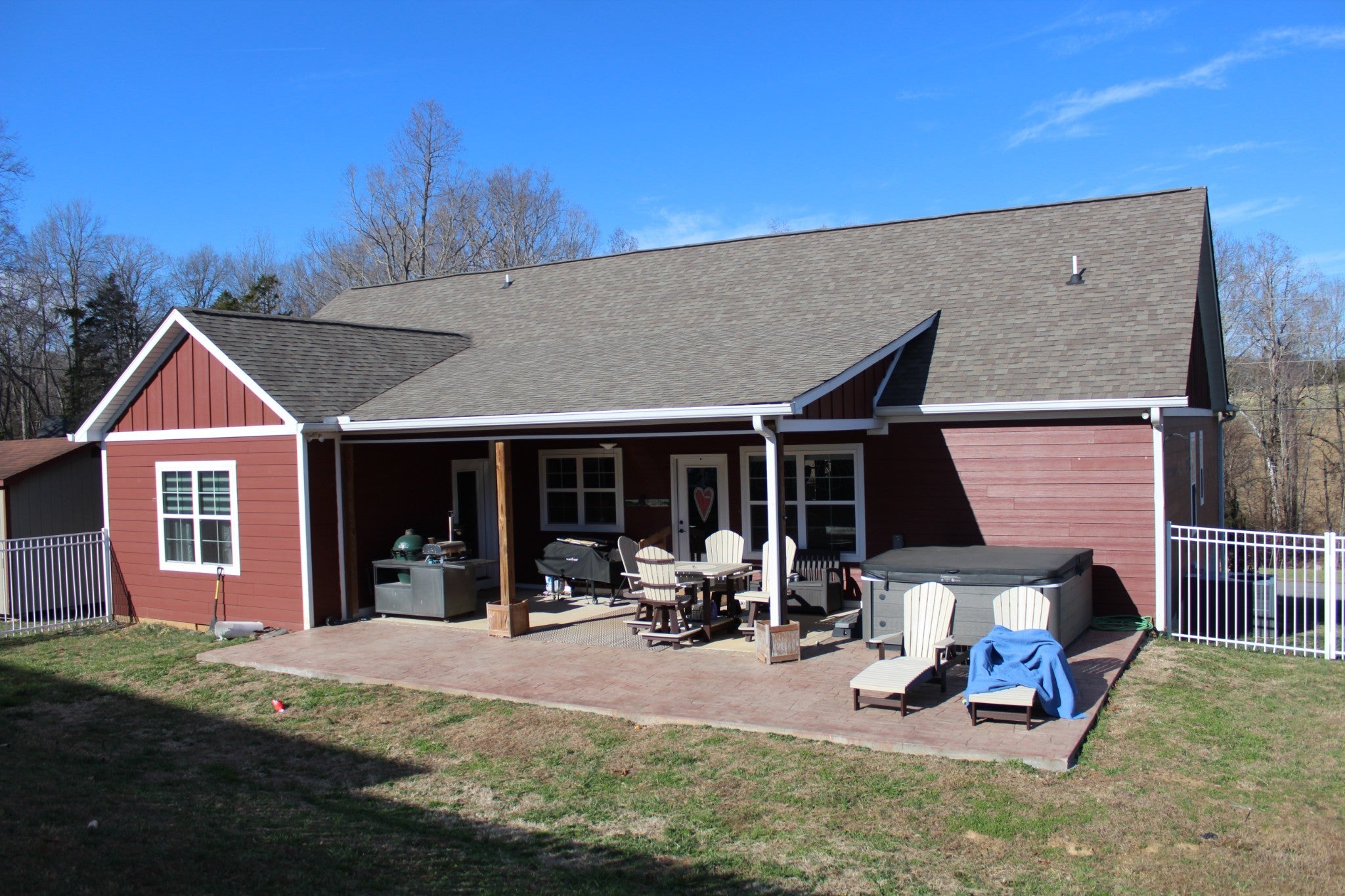 Beautiful custom-built 3-bedroom, 3-bath home with a flexible bonus room that can easily serve as a 4th bedroom, office, or media space. The open-concept kitchen and dining area features a large island, ideal for entertaining. Enjoy cozy evenings by the stacked stone fireplace or relax on the covered porches overlooking the fenced backyard. Additional highlights include a concrete driveway, no HOA, 12x18 outbuilding and an attached 2-car garage offering ample storage and convenience. This home is both functional and inviting