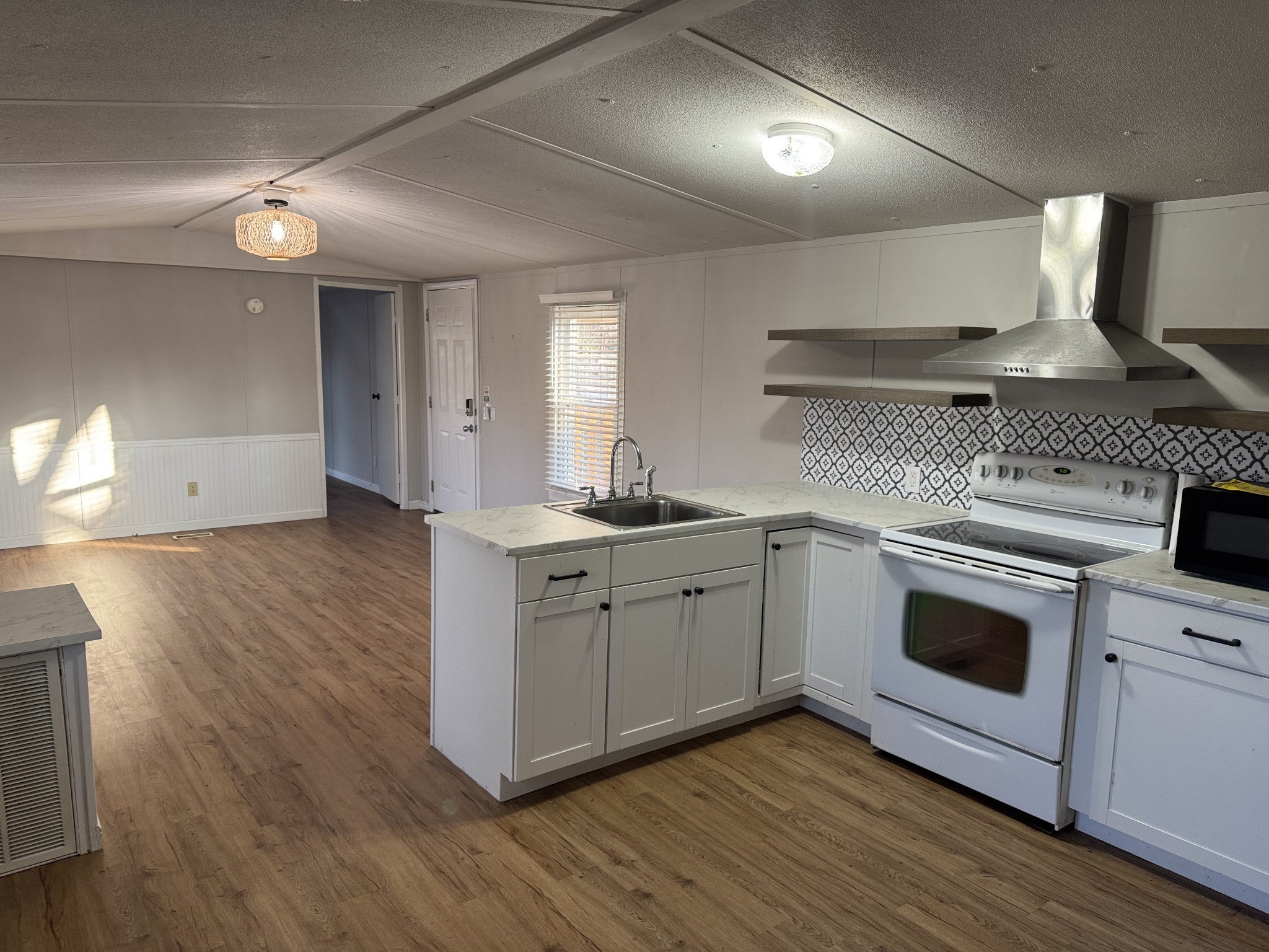 Nicely renovated mobile home in a great location of La Vergne. Complete renovation including kitchen cabinets, appliances, plumbing, electrical, & LVP flooring through out. Newer windows that are insulated. Not the low efficiency that were originally with the home. Plenty of room, huge open floorplan. No carpet in the house. 3 brand new HIGH EFFICIENCY Mini Split HVAC units that heat and cool the entire home for less than most conventional units. It has a metal roof and fenced level yard. 2 large bedrooms, open floorplan, fully renovated full bath off the kitchen. The front bedroom has a fully renovated half bath with new vanity and flooring. Nice laundry room & open eat in kitchen. The location is excellent. Close to shopping, bus transportation, and parks. You are going to love the payments on this one. Properties as clean as this are hard to come by. Don't miss it!