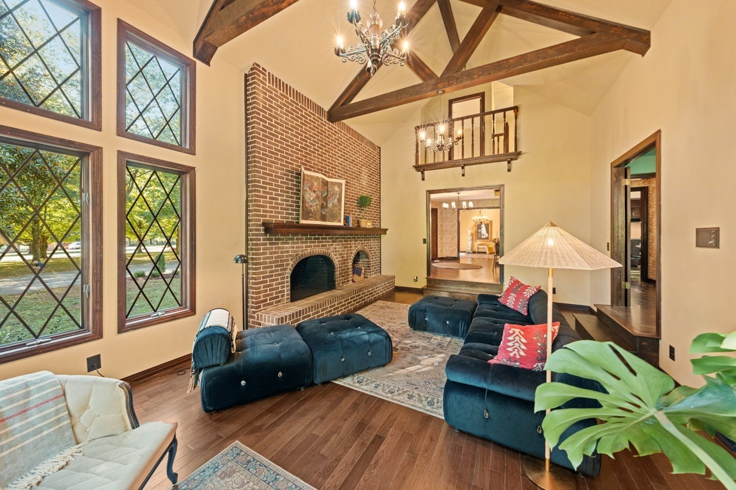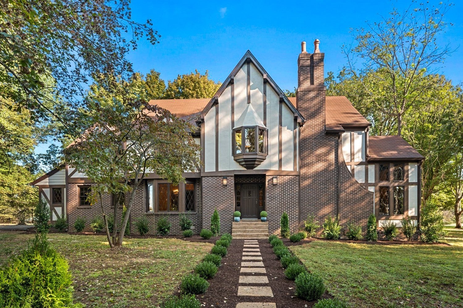Storybook Tudor in the heart of Columbia. This beautifully reimagined 4 bedroom, 2.5 bath Tudor blends old world charm with fresh, thoughtful updates. Nestled on a corner lot within the city limits, this home offers space, privacy, and timeless architectural appeal--all within the Woodard Elementary school zone. A brick and half-timbered facade sets a storybook tone, leading into a warm interior with new hardwood floors, rich wood trim, and expansive windows that fill the home with natural light. The dramatic great room features exposed beams, a two-story brick fireplace and windows that frame the serene views of the property's mature trees. The kitchen retains it's vintage craftsmanship with solid wood cabinetry and modern updates that compliment the home's period character. Upstairs, the large bedrooms are perfect for family, guests, or office space. Outdoors, the wide-open acreage is perfect for gardening, recreation, or simply enjoying the park-like setting. With its distinctive design, beautifully preserved details, and in-town acreage, this property captures European-inspired charm--a true Columbia treasure.