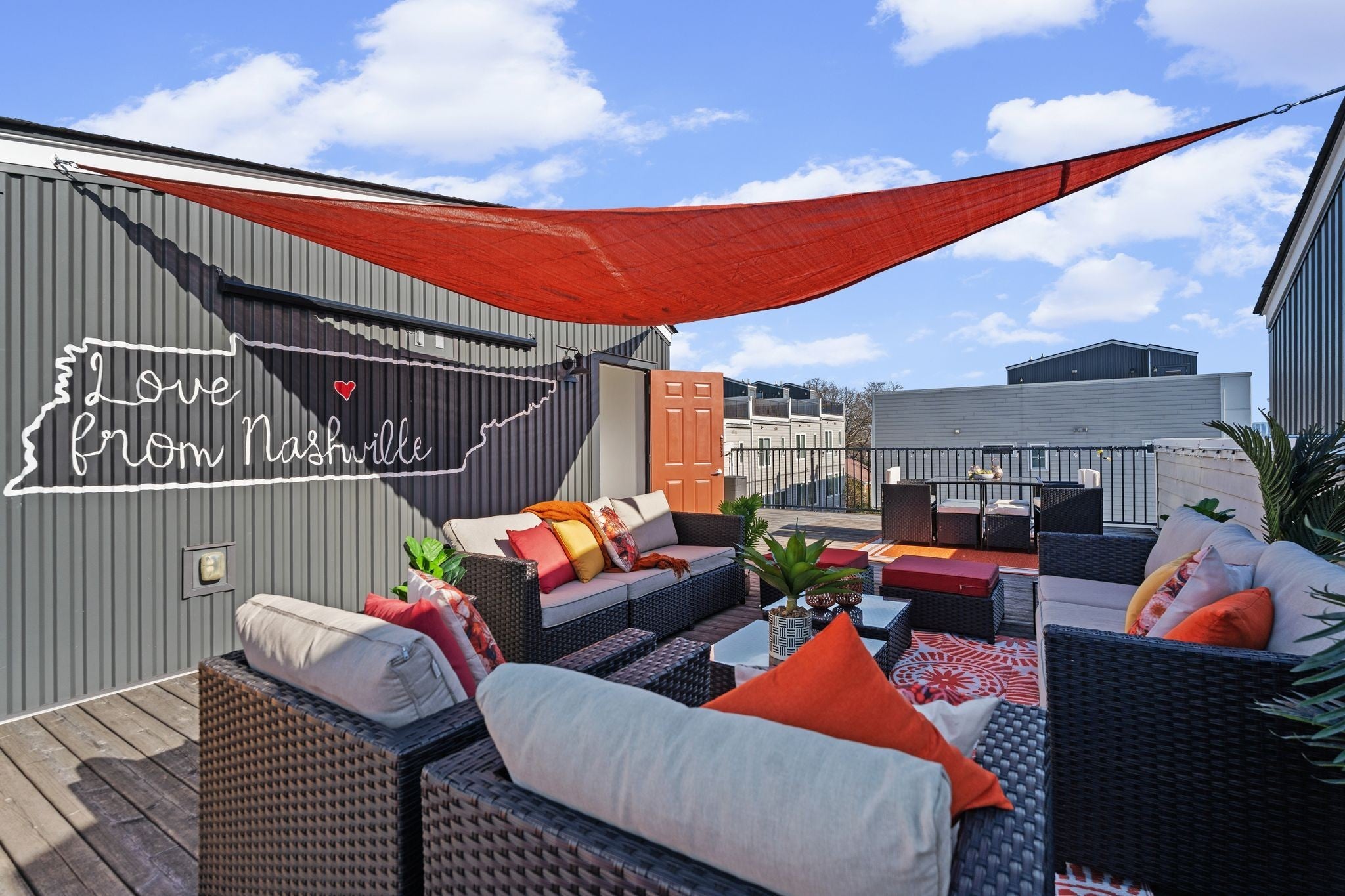 Fully operational and furnished short-term rental offering immediate revenue generation, with downtown views and NOO-STR eligibility. Each bedroom features its own en-suite bathroom, providing both privacy and convenience. An attached two-car garage adds rare functionality. The open-concept floor plan flows effortlessly through the living and dining areas, while an expansive 800 sq ft rooftop terrace showcases sweeping downtown views. The location truly speaks for itself: just a five-minute walk to ONEC1TY’s premier dining, wellness, and recreation options, including Avo and Sump Coffee. A short drive connects you to Climb Nashville, RowHouse, McCabe Golf Course, Centennial Park, and the Parthenon, Sylvan Supply, and L&L Market (Hattie B’s, ML Rose, Bobby’s Dairy Dip, Radish, 5 Points Pizza, Punk Wok, and more). Convenient to West End, Vanderbilt, 21st Avenue, and 12 South—only three miles from Downtown/Broadway and 15 minutes to the airport.