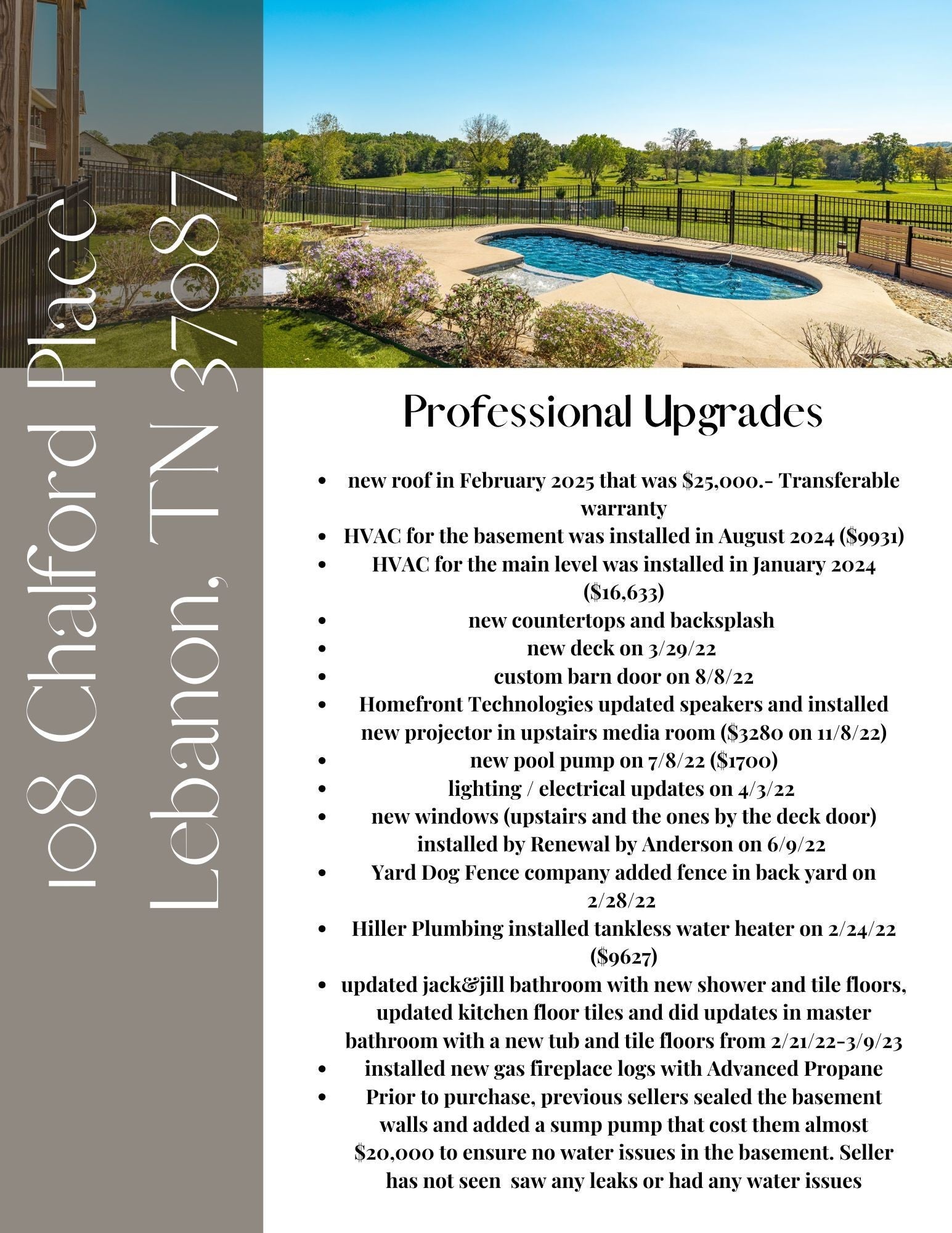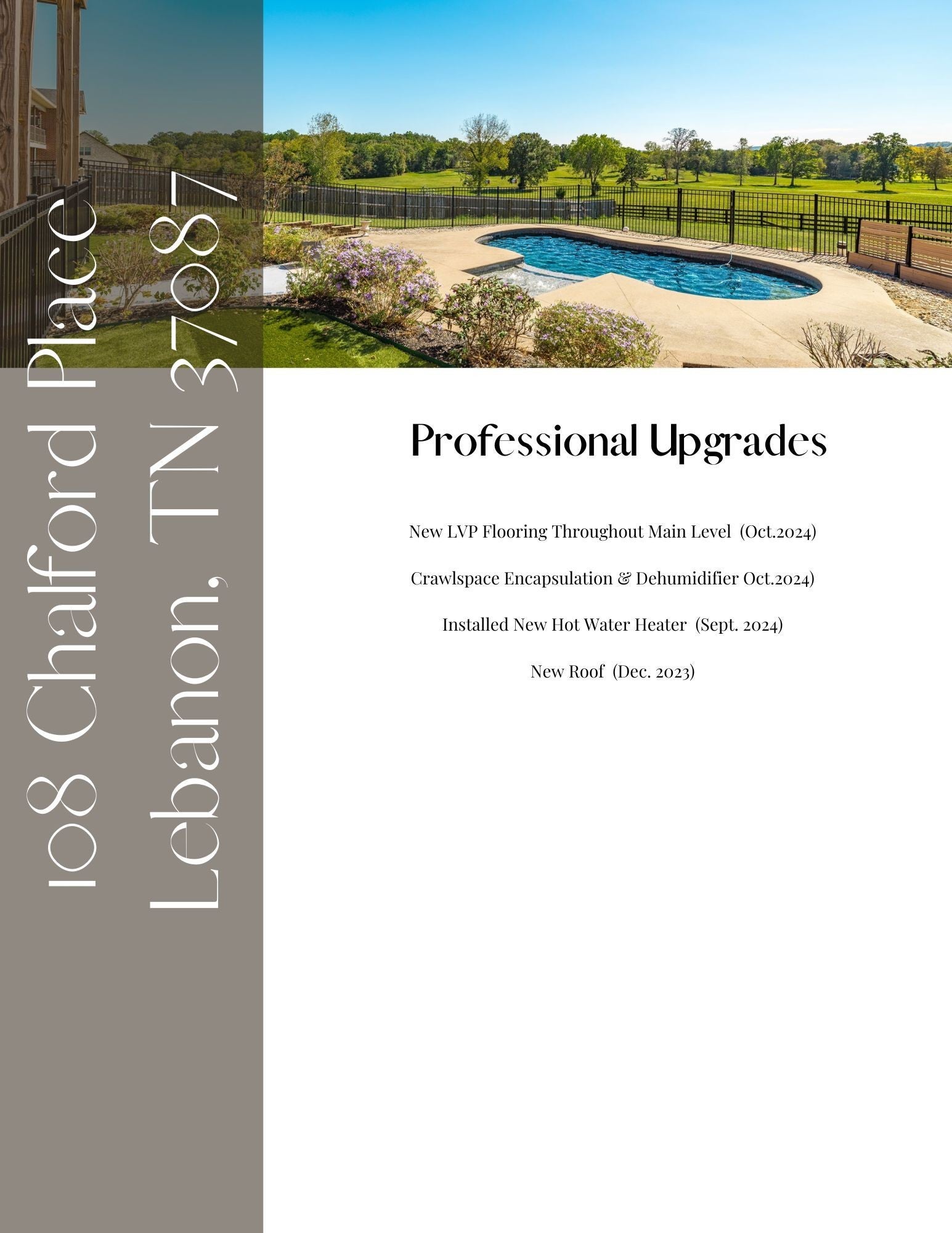 This stunning 6-bed, 5-bath home offers over 4,600 sq ft of flexible living space designed for multi-generational comfort. Enjoy multiple living areas, an in-law suite with private access, and an open floor plan perfect for gathering. Resort style entertainment becomes effortless with multiple outdoor living spaces, a large fire pit, in-ground pool, play set, and fenced yard with no HOA. Nestled on a quiet half-acre lot minutes from Gallatin, Lebanon, & Mt. Juliet — this home blends privacy, comfort, and connection for every generation. $7,000 lender credit and free appraisal offered when using preferred lender. American Home Shield - 1 year- home warranty with acceptable offer. Ask agent for additional information.