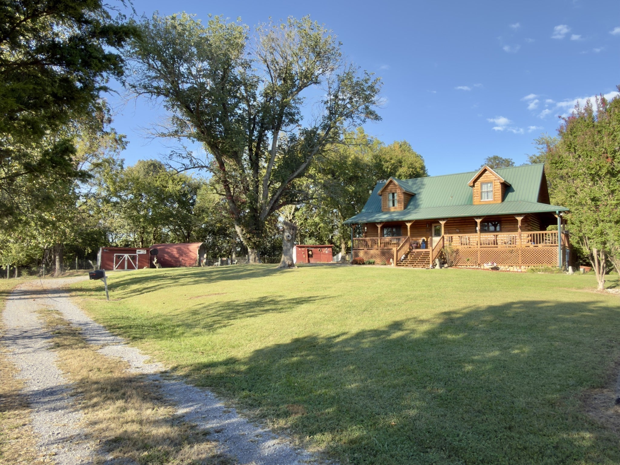 Escape to the end of a quiet dead-end road and discover this 47-acre paradise where open pasture meets shaded woodlands. This private Tennessee setting blends peaceful seclusion with modern comfort — ideal for those who value space, nature, and self-reliant living. A striking modern log home anchors the property, surrounded by gentle hills and broad fields ready for horses, cattle, or a hobby farm. The home features warm wood interiors, spacious living areas, and contemporary updates that bring together rustic beauty and everyday convenience. Outside, multiple sheds and utility buildings offer storage for equipment or workshop space, while the rolling pastures are fully fenced and cross-fenced for livestock. The surrounding woodlands provide both privacy and wildlife watching, with trails meandering through the trees and quiet corners perfect for a morning walk or sunset view. Whether you’re looking for a private family homestead, a working mini-farm, or a peaceful weekend escape, this property delivers the best of Tennessee country living — quiet, practical, and naturally beautiful.