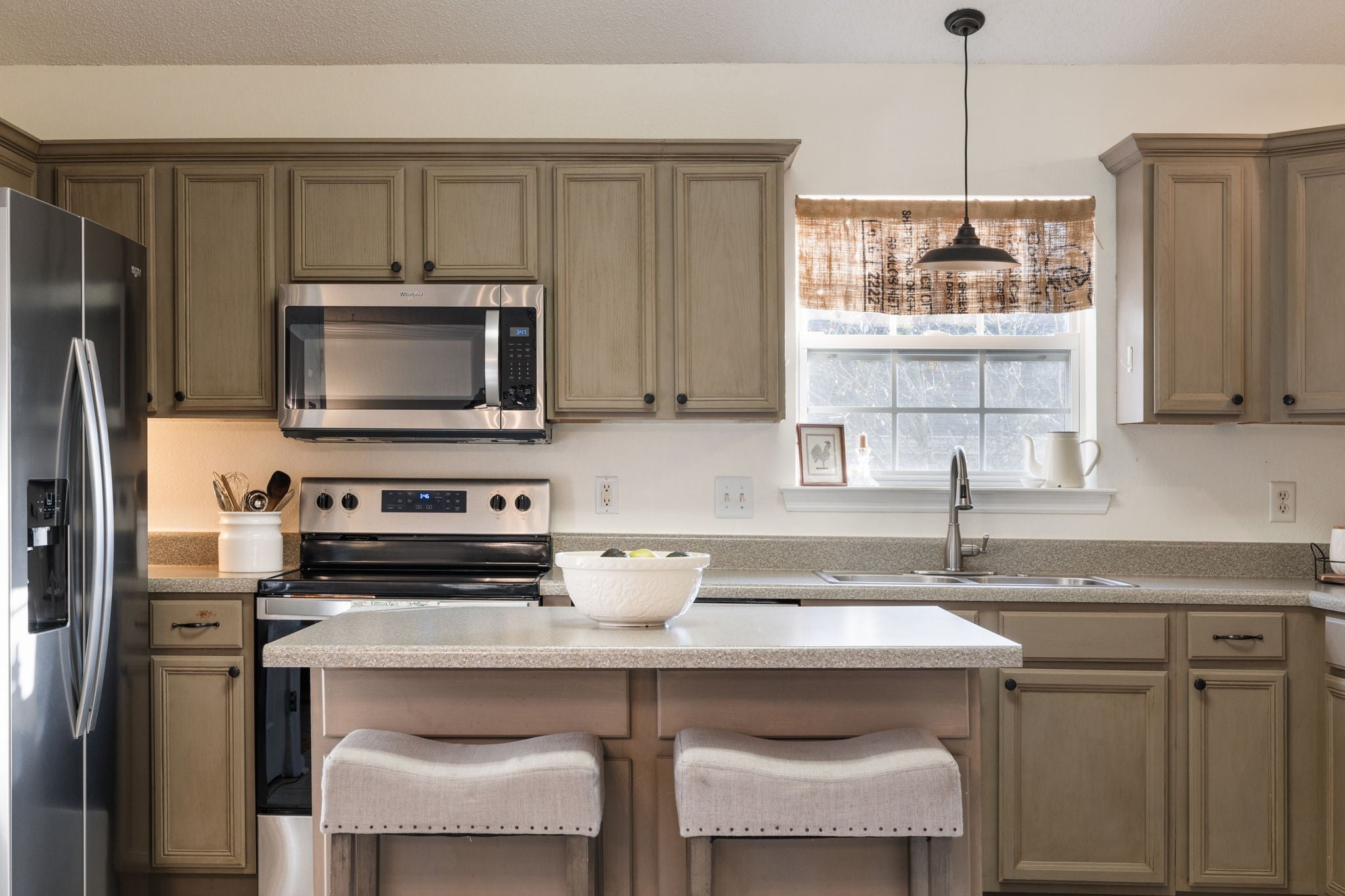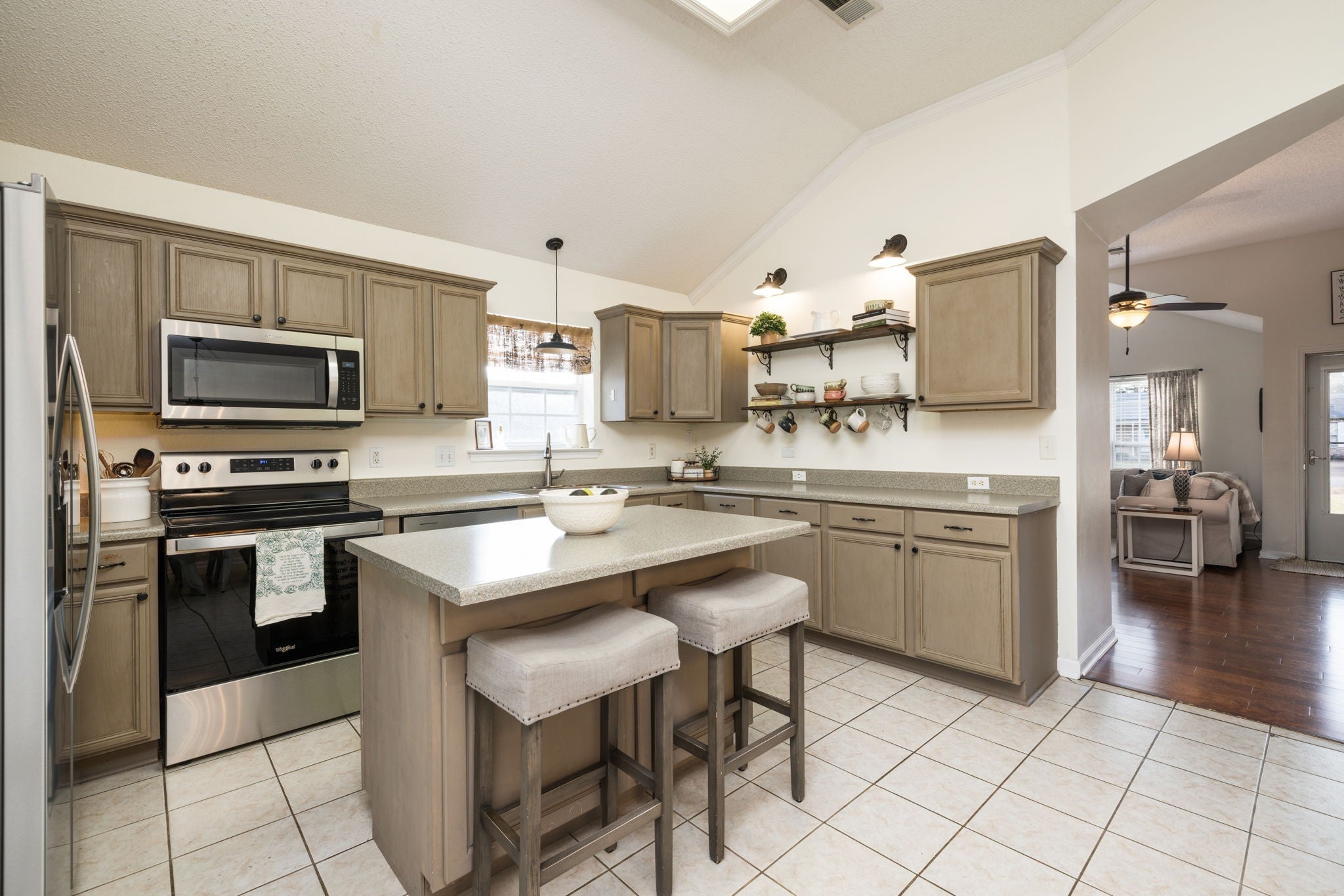 - Electric Range, Dishwasher, Microwave