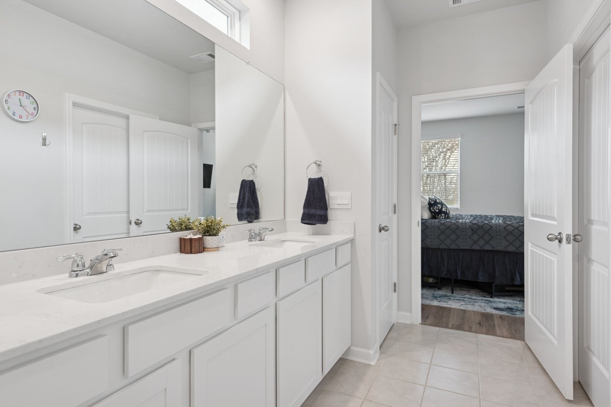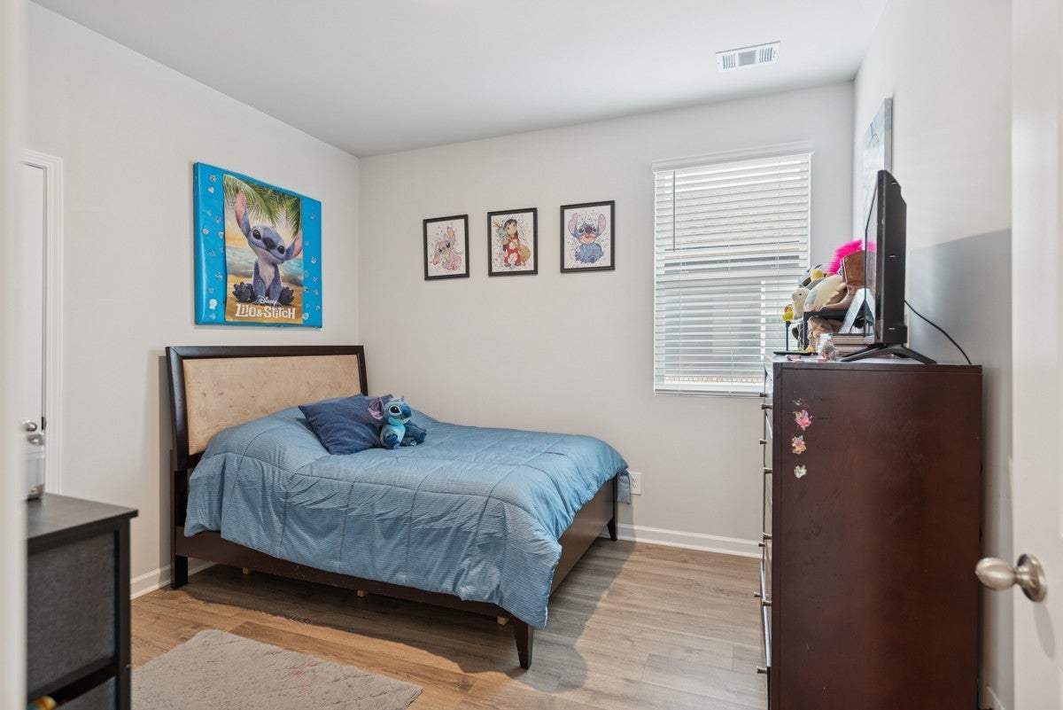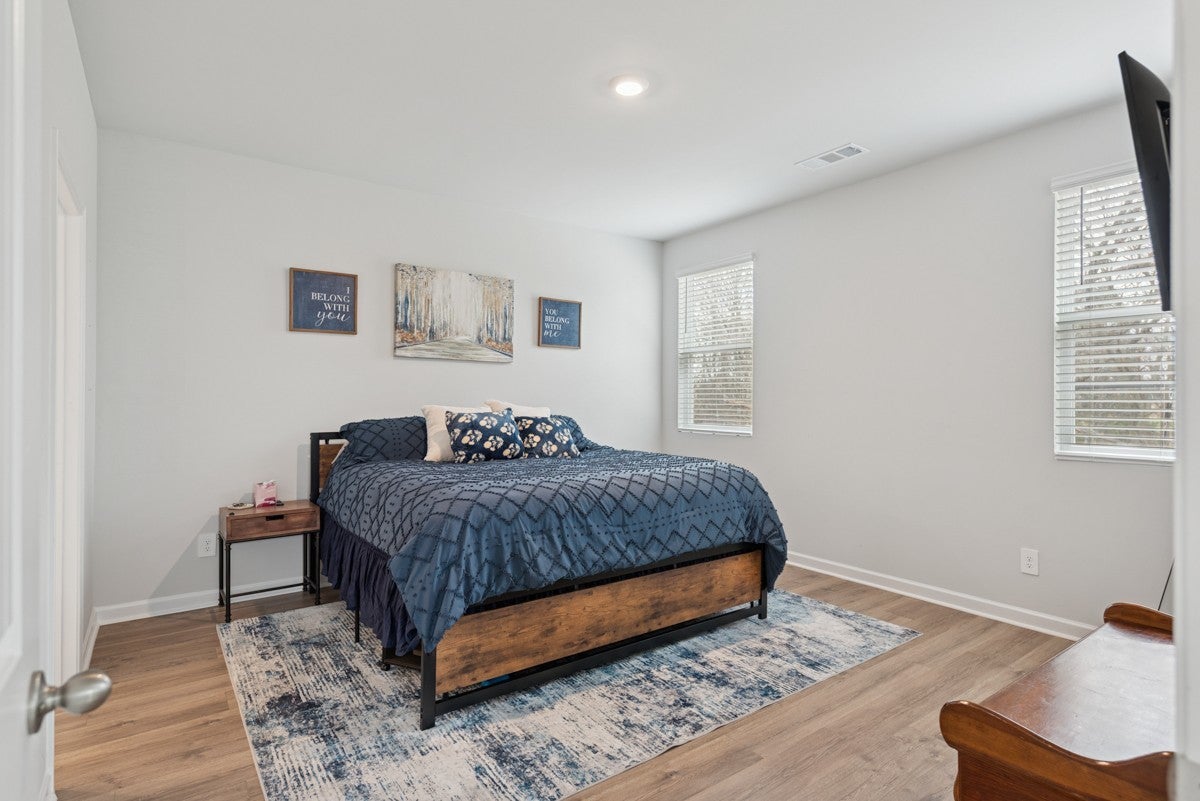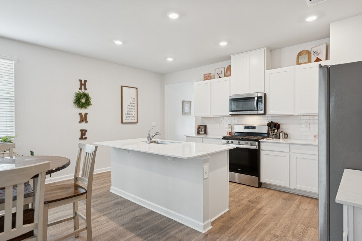 Welcome to this pristine, like-new home—only two years old and meticulously maintained, it shows as if it were brand new. Built by DR Horton, this home features the popular Jennings floor plan with an open-concept design and soaring ceilings throughout. This single-level home offers three bedrooms and two full baths. The gourmet-style kitchen is a standout, featuring granite countertops, a gas cooktop, a spacious pantry, and an oversized island perfect for entertaining. The open layout flows seamlessly into the main living area, enhanced by recessed lighting and stunning windows that fill the space with natural light. Situated on a premier lot, the home backs up to a peaceful wooded area with a creek, providing both privacy and beautiful views. The spacious primary suite includes a large walk-in closet and a well-appointed en-suite bath. Both guest bedrooms feature extra-large closets, offering ample storage. Additional highlights include laminate hardwood flooring throughout, high ceilings, attractive cabinetry, and a generously sized garage—ideal for a workshop, man cave, or she-shed setup. The community offers exceptional amenities, and the HOA conveniently covers lawn care, making for truly low-maintenance living. This home has just hit the market and won’t last long—schedule your showing today!