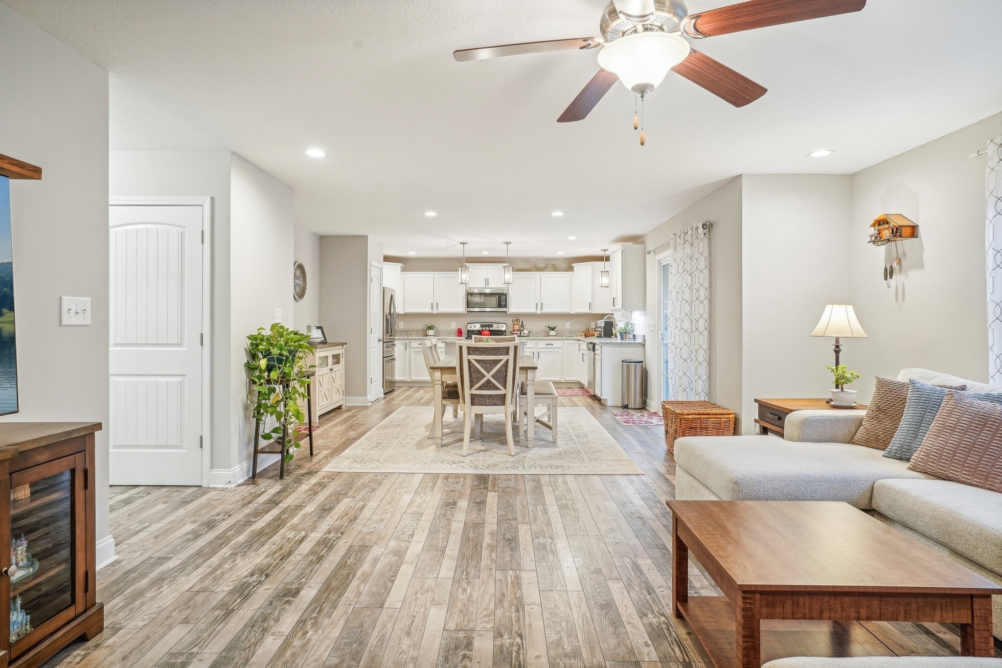 Spacious home with creek access tucked away on a quiet cul-de-sac with no backyard neighbors. This property offers the perfect blend of privacy, comfort, and lifestyle, featuring your own personal outdoor oasis complete with a large patio, covered back porch, privacy-fenced backyard, and a private walking path leading directly to creekfront access, ideal for relaxing, fishing, or simply enjoying the peaceful setting. Inside, you’ll find a bright and open main-level floor plan designed for both everyday living and entertaining. The spacious kitchen is a standout with white cabinetry, granite countertops, stainless steel appliances, a large center island, and ample workspace — perfect for gatherings of any size. The kitchen flows seamlessly into the dining and living areas, creating a warm and inviting space to host family and friends. With five generously sized bedrooms, this home offers flexibility for a variety of needs. The largest bedroom can easily function as a bonus room, media space, or entertainment area. A dedicated laundry room adds everyday convenience while maintaining privacy for busy households. Additional highlights include neutral finishes throughout, abundant natural light, thoughtful storage, and well-maintained living spaces that feel both functional and welcoming. Conveniently located just minutes from Fort Campbell, shopping, schools, dining, and Exit 1, this home offers easy access to everything you need while still providing a peaceful retreat at the end of the day. Enjoy the best of indoor comfort and outdoor living, all in one exceptional property.