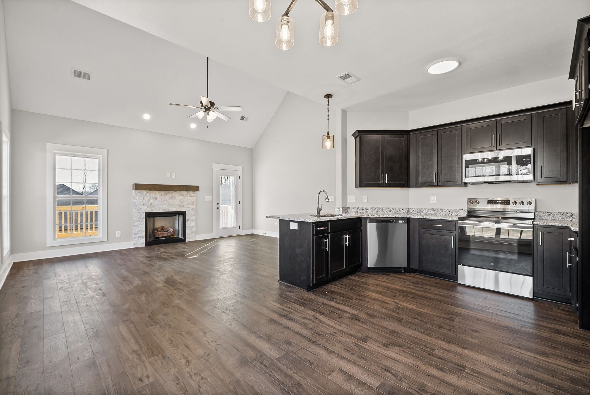 — PRICED UNDER APPRAISAL | SELLER CONCESSIONS OFFERED — Discover the perfect blend of modern style, comfort and convenience at 697 Eva Agnes Ave in Clarksville. Appointed with upscale upgrades and modern finishes, this home blends impeccable craftsmanship with everyday functionality. Move-in ready and designed for low-maintenance living, it is especially well-suited for buyers seeking a seamless relocation. And thanks to the 1-yr builders warranty this home also comes with peace of mind! With three spacious bedrooms, two bathrooms, a versatile bonus room and over 1,600 square feet the layout is both exceptional and functional. Step inside a dedicated foyer area that separates your front door from the main living area for extra privacy and comfort. A stunning hallway leads to the main living area with an open-concept design that connects the living, dining, and kitchen areas seamlessly. The living room has an upgraded elevated ceiling and sleek fireplace that creates a striking focal point. An enlarged pantry can be found in the kitchen along with stainless steel appliances, granite counter tops and a serving bar that provides room for seating. The master suite has a stunning ceiling and full private bath with custom tile shower, large separate tub, double vanity, decorative framed mirrors and walk-in closet. Two additional bedrooms and an expansive bonus room provide flexibility for guests, hobbies or a home office. Located just minutes from interstate access, Ft Campbell and the new Spring Creek Parkway this home is in the perfect location, and it sits in a fantastic family friendly neighborhood that has underground utilities, sidewalks and street lights.
