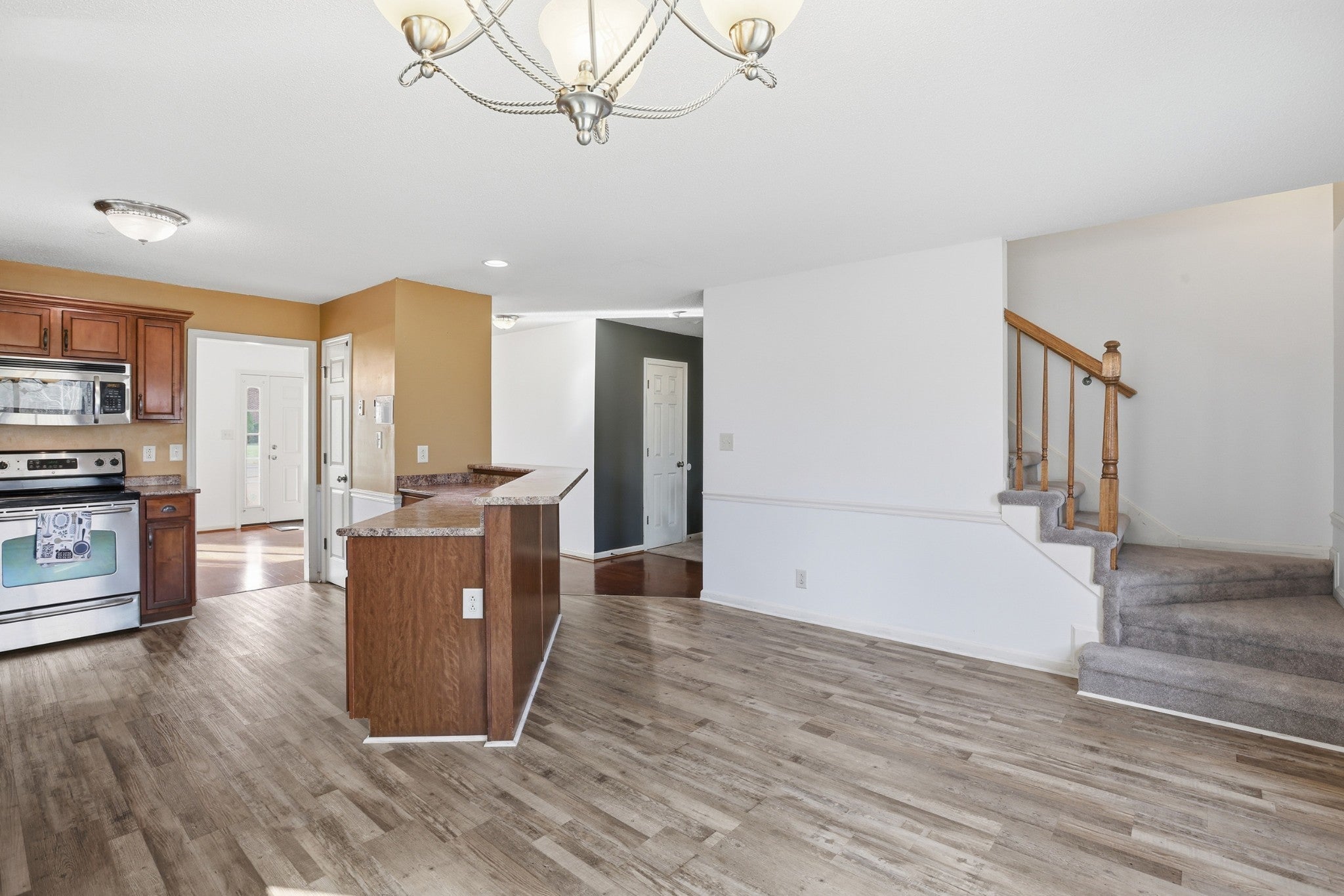 Welcome home to this beautiful two-story home offering the perfect blend of comfort and functionality! This 3-bedroom, 2.5-bath home features a spacious kitchen complete with stainless steel appliances, a cozy breakfast nook, and a separate formal dining room. All bedrooms are located upstairs, each with walk-in closets for ample storage, with brand new carpet throughout. An additional upstairs bonus room provides extra living space for relaxation or play. Enjoy the outdoors with a generous lot that extends to the tree line, offering privacy and plenty of room to roam. The attached 2-car garage completes this wonderful property. All new windows were installed in 2022, along with a water filtration system, & a new water heater installed in 2024. Conveniently located just moments from Tiny Town Road & with easy access to I-24. *Lender Credit for qualified buyers can be applied specifically to rate buy-down. Not all programs will qualify. Credit shows in the form of reduced Lender compensation. Lender credit is 1% of the loan value. Joshua Montgomery, New Paradigm Lending 951-595-0021.