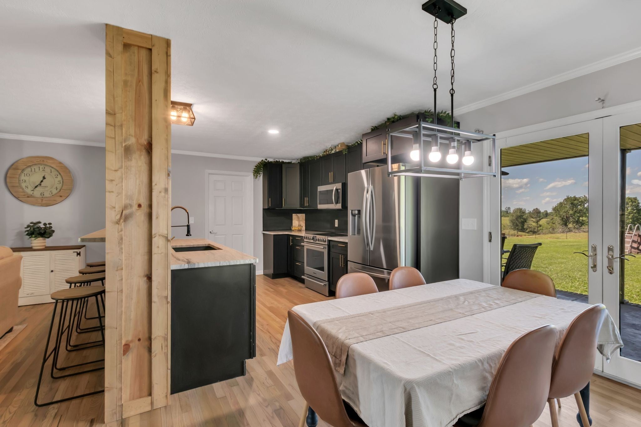 Welcome to 1800 Old Highway 52, a slice of peaceful country life! This remodeled home sits on 2.25 acres with beautiful views and includes a 24x60 shop and 40x50 barn! Inside, the living room features custom shiplap accents, a built-in electric fireplace and flows into the kitchen with gorgeous wooden beams! The kitchen features all-new cabinetry, granite countertops, a tile backsplash, and a large island with extra seating—perfect for entertaining! The large laundry room is elevated with custom cabinetry, a sink, and has exterior door access if you want to use it as a mudroom too! The main-floor primary suite offers a spacious walk-in closet, a second built-in electric fireplace with shiplap detail, and a stunning en-suite bath complete with rich paint tones and a spa-like shower featuring a waterfall showerhead. On the second level are two spacious bedrooms, a full bathroom and a large storage closet with access to attic space for even more storage. The newer roof (May 2025) adds peace of mind and all appliances remain with the property! Step out back and you’ll quickly see why this property is something special. The covered back porch offers the kind of views you’ll never get tired of—rolling pastures and peaceful countryside! Plus, with a 40x50 barn and a 24x60 shop on the property, you’ll have all the space you need for hobbies and/or equipment! Located just 10 minutes to the Lafayette town square! Schedule your showing today!