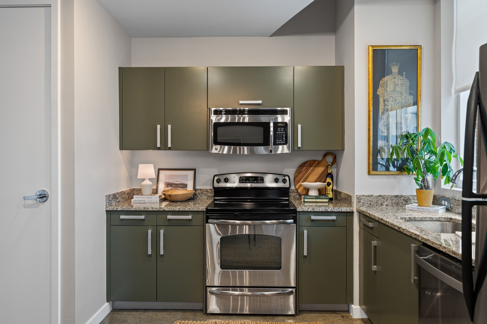 - Electric Oven, Electric Range, Dishwasher, Disposal, Dryer, Ice Maker, Microwave, Refrigerator, Stainless Steel Appliance(s), Washer