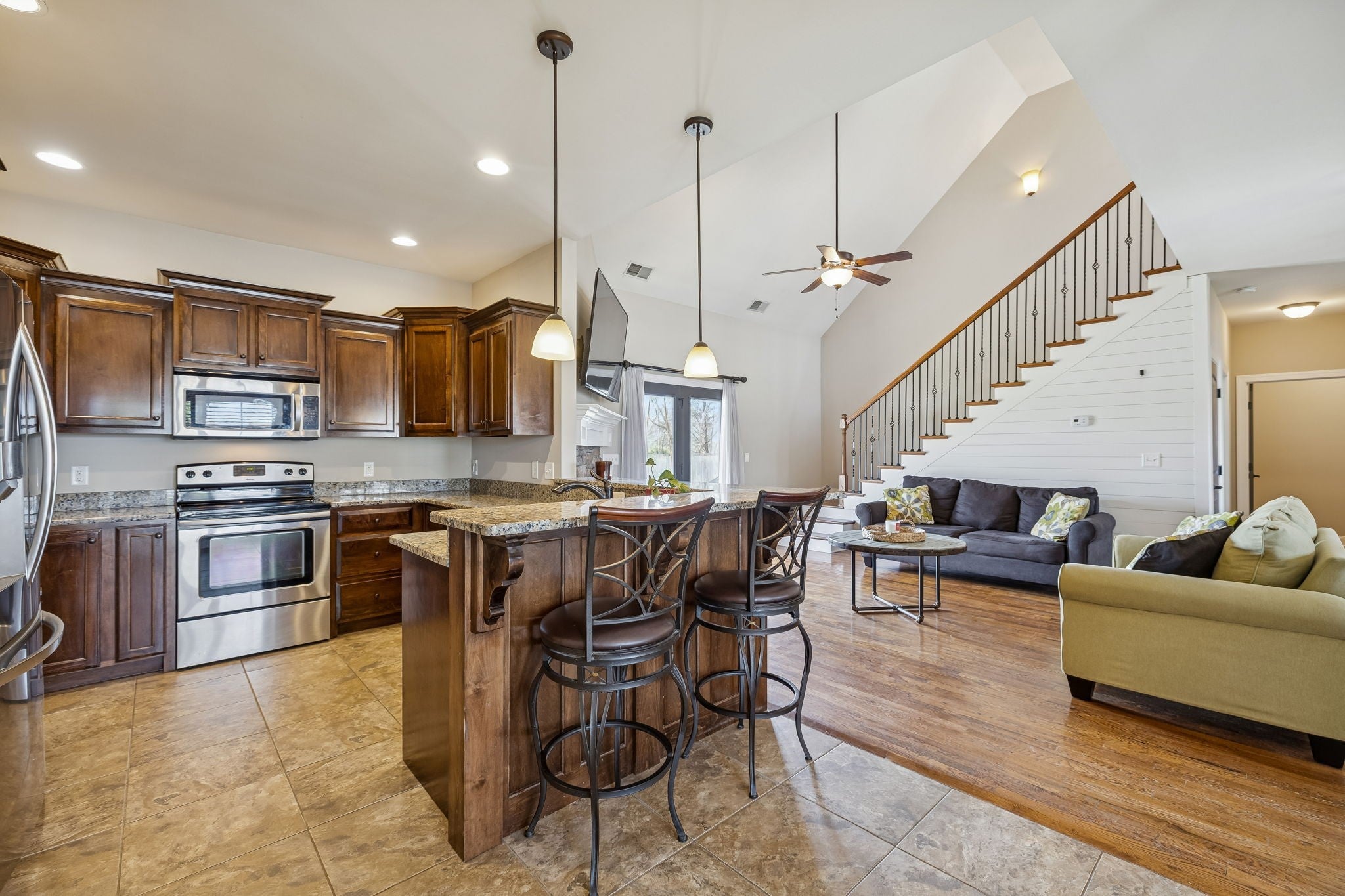 Beautifully maintained 3-bedroom, 2.5-bath brick home offering just under 2,200 sq ft of comfortable living space. Built in 2014, this two story home features hardwood floors, tile bathrooms, and vaulted ceilings that create an open, airy feel throughout. Recent updates include new carpet, fresh paint throughout, and a brand new dishwasher, making this home truly move-in ready. The kitchen is highlighted by granite countertops and flows seamlessly into the main living area, anchored by a cozy gas fireplace perfect for relaxing evenings or entertaining guests. A brand-new HVAC system provides peace of mind and year-round comfort. The home also includes a washer and dryer for added convenience. Solid brick construction offers timeless curb appeal, while the 2-car garage provides ample storage and parking. Step outside to enjoy the huge backyard, offering plenty of space for outdoor entertaining, play, or future possibilities. This home blends modern updates, space, and comfort ready for its next owner to move in and enjoy. *Unfinshed room above garage that offers tons of space, Perfect for an addtional bedroom, bonus room, office or flex space!*