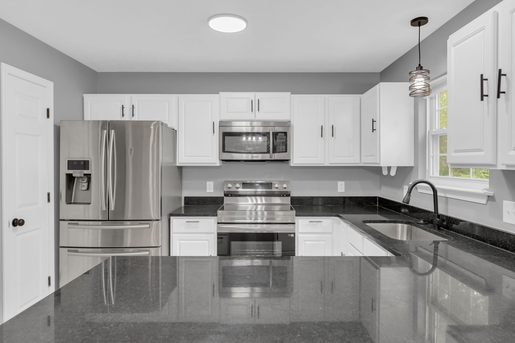 - Electric Oven, Electric Range, Dishwasher, Disposal, Microwave, Refrigerator, Stainless Steel Appliance(s)