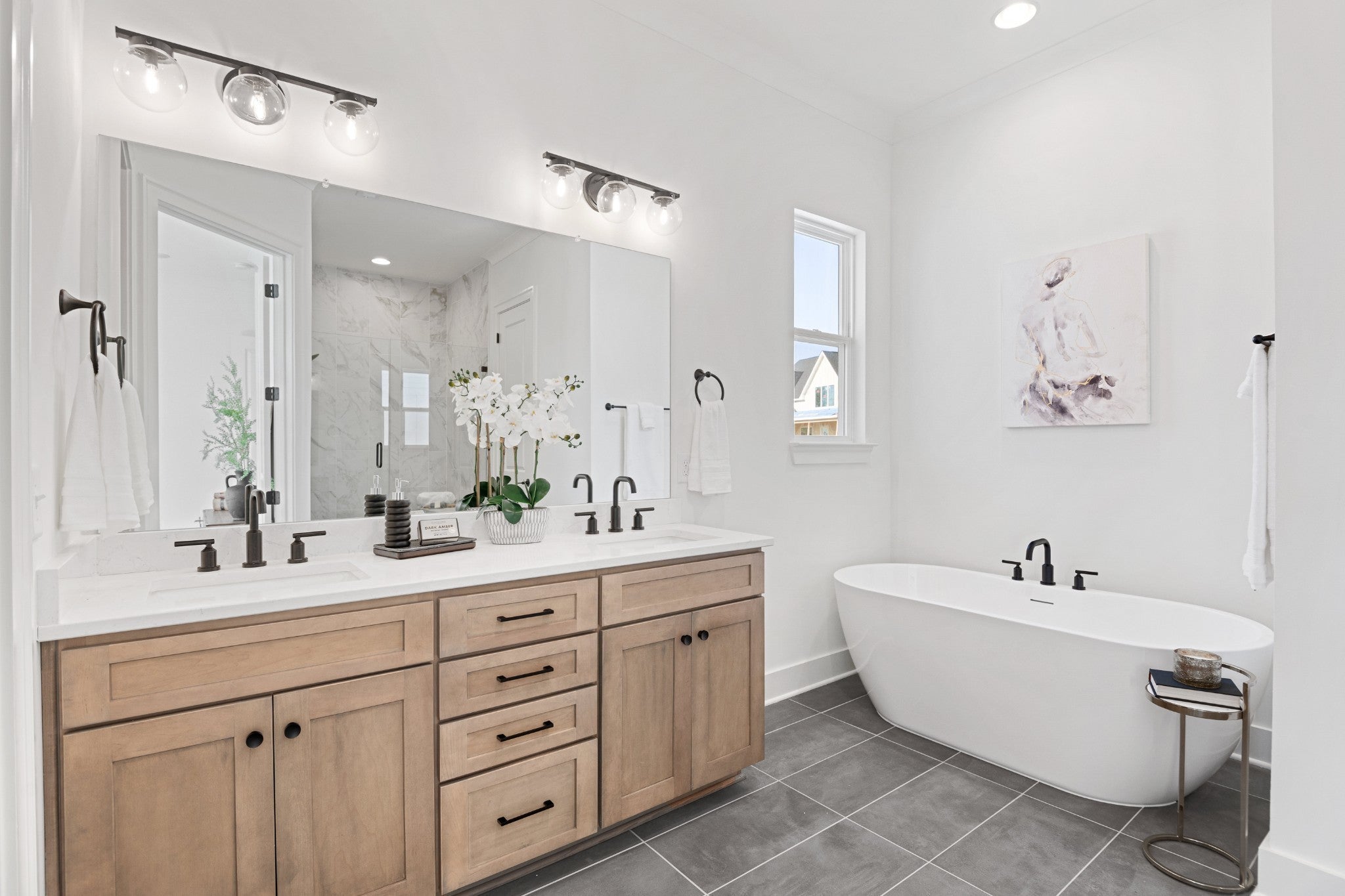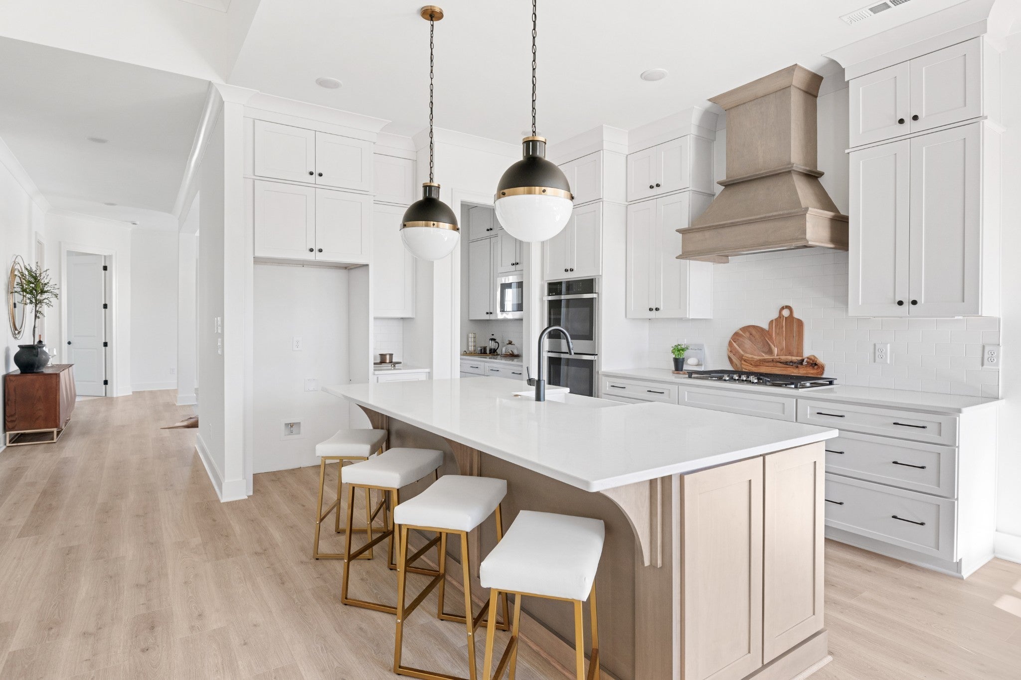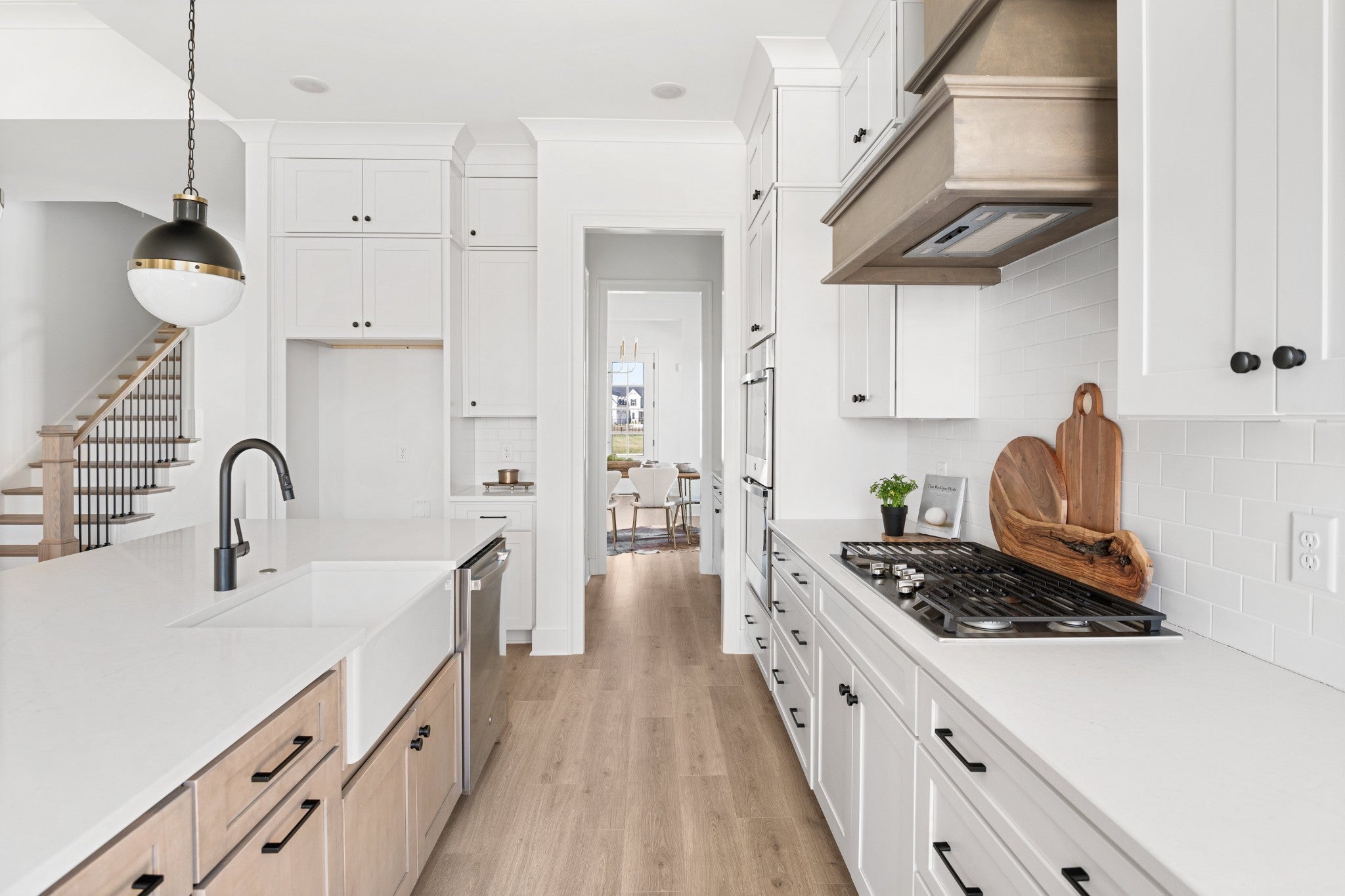 Open and spacious 5 bedroom home with 2 bedrms on main level. Designer finishes through out, 10' ceilings, hardwood floors, quartz counter tops, soft close cabinets, oversized kitchen, huge island, walk in pantry, bulters pantry, Main level primary suite has elegant free standing tub and huge spa-like shower. Convenient to I-24 and 840. Located in the amenity-rich highly sought after neighborhood of Shelton Square. Located at the end of a cul de sac on a flat useable home site.
