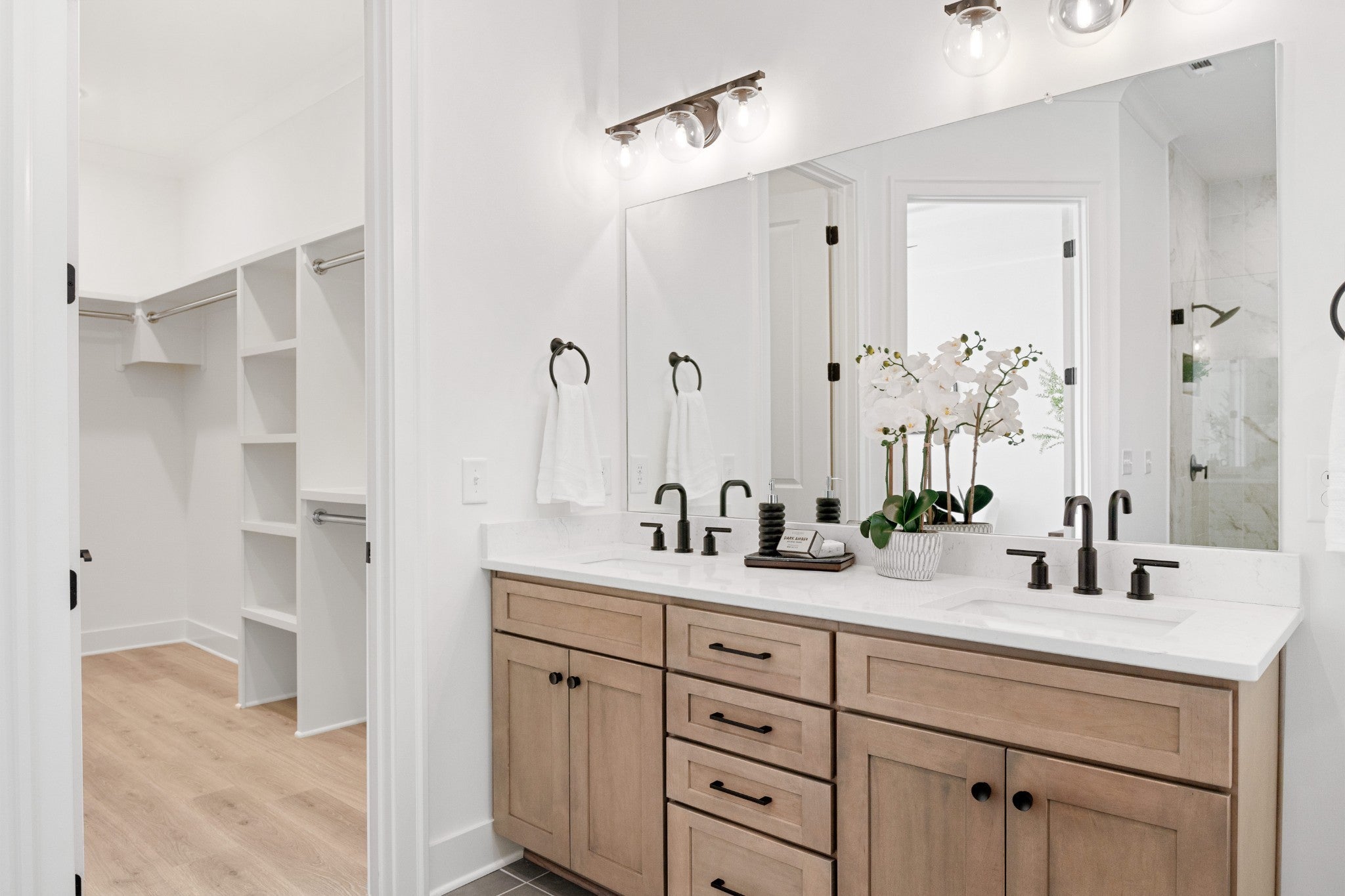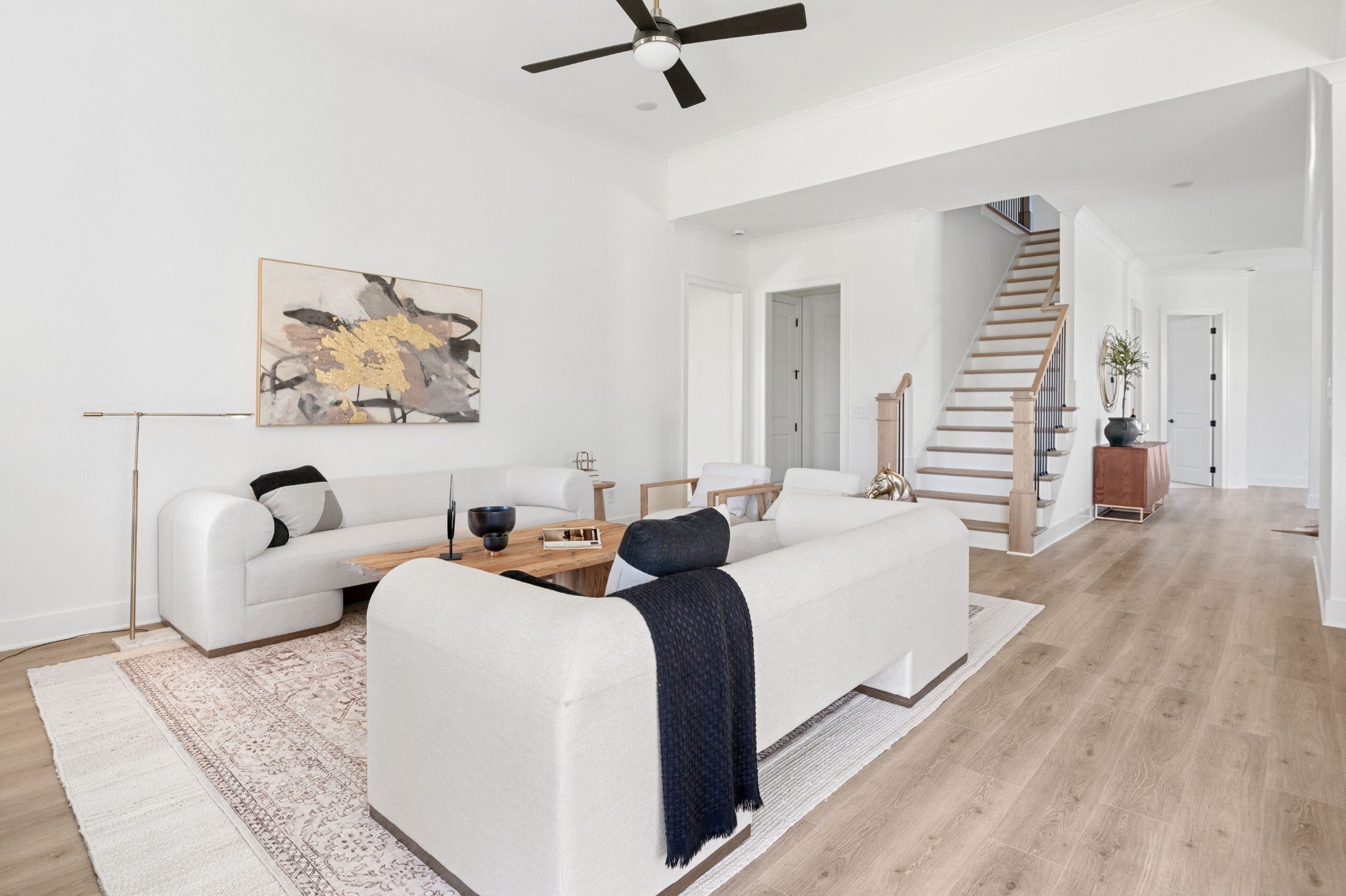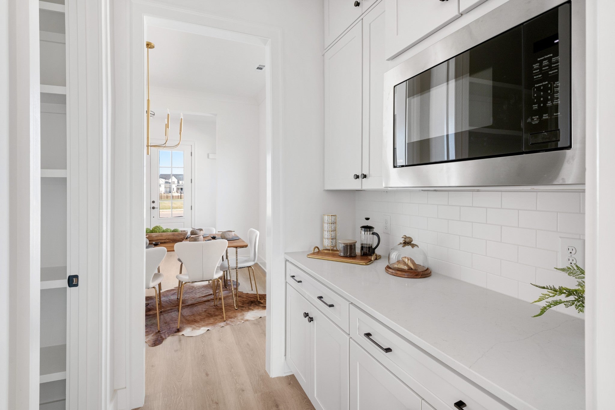 Open and spacious 5 bedroom home with 2 bedrms on main level. Designer finishes through out, 10' ceilings, hardwood floors, quartz counter tops, soft close cabinets, oversized kitchen, huge island, walk in pantry, bulters pantry, Main level primary suite has elegant free standing tub and huge spa-like shower. Convenient to I-24 and 840. Located in the amenity-rich highly sought after neighborhood of Shelton Square. Located at the end of a cul de sac on a flat useable home site.