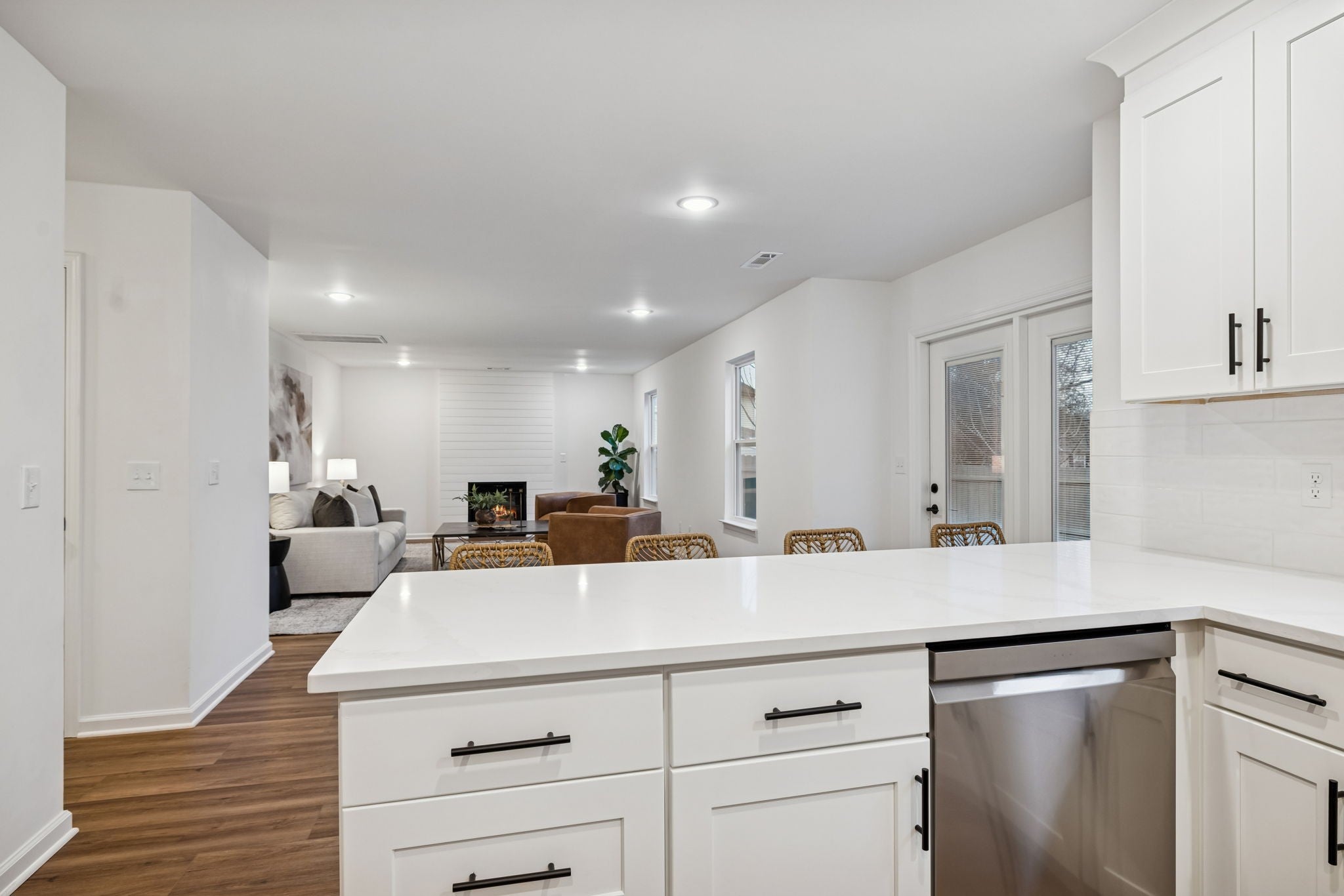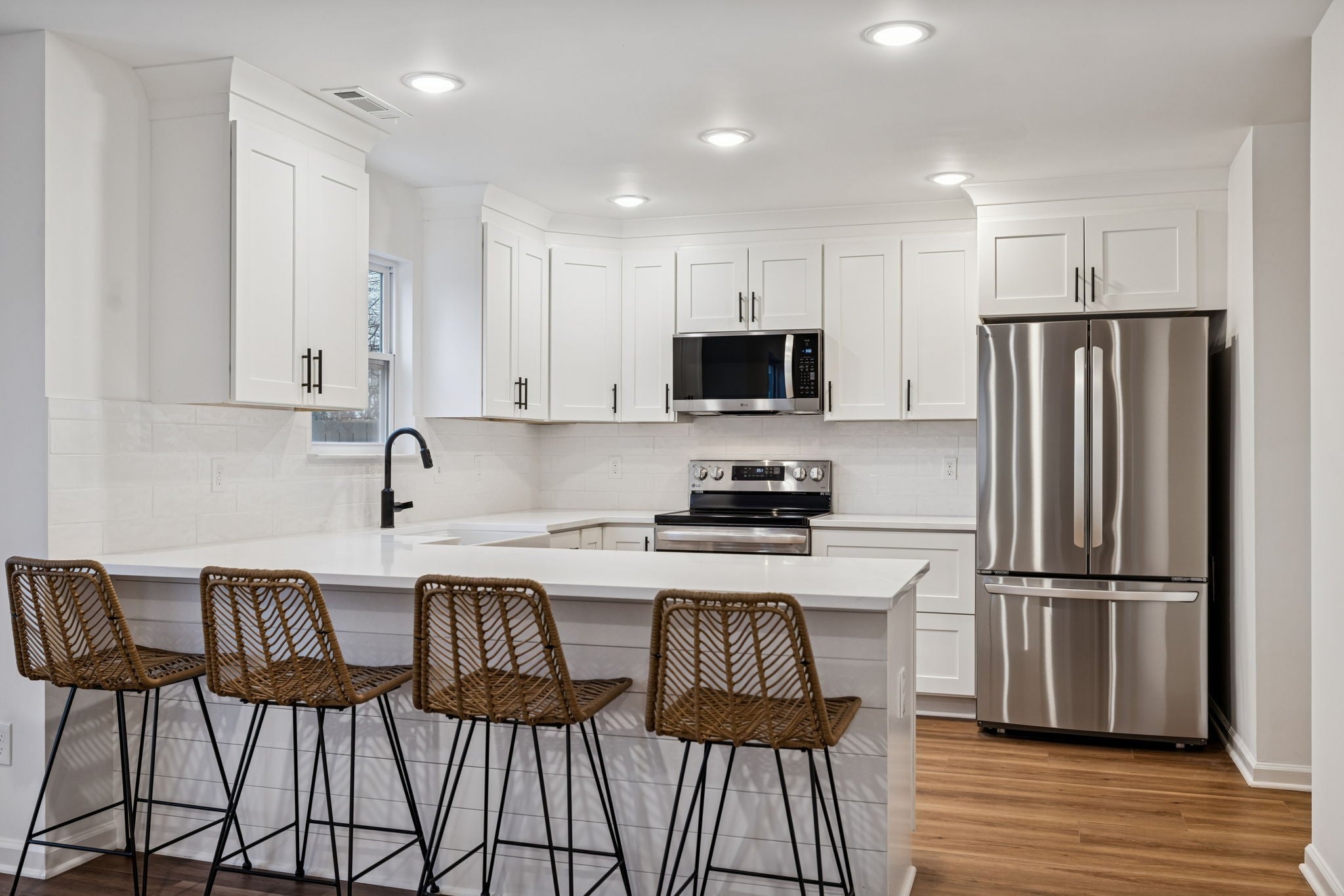 Full Renovation with Upgrades! This 4 bedroom home has been completely updated throughout. Exterior updates include new roof, new windows, new front door, new lighting. Interior updates include: new custom kitchen cabinets, quartz counters, tile backsplash, new upgraded stainless steel appliances, new durable LVP flooring throughout entire home (no carpet!), new lighting throughout, new paint (walls, ceilings, trim), new custom closets with wood shelving (no wires shelves). The full bathrooms have new tile floor & shower, new vanities with quartz countertops, new fixtures, new soaking tub in primary bathroom. The spacious primary suite features a trey ceiling and two large walk-in closets. The fireplace features shiplap and new mantle. The HVAC replaced in 2022. Outdoor living includes a charming covered front porch, back patio, and fenced backyard. This home is truly move-in ready!! Enjoy living in a home that feels completely new and located in an established neighborhood with trees. Wyngate Estates is centrally located in Spring Hill.