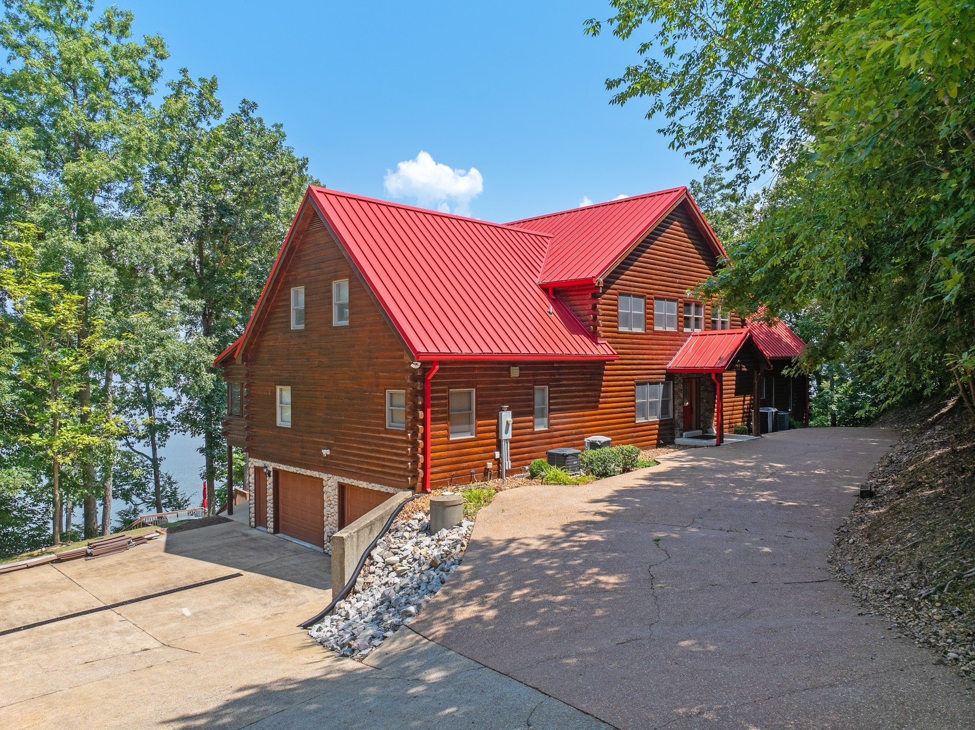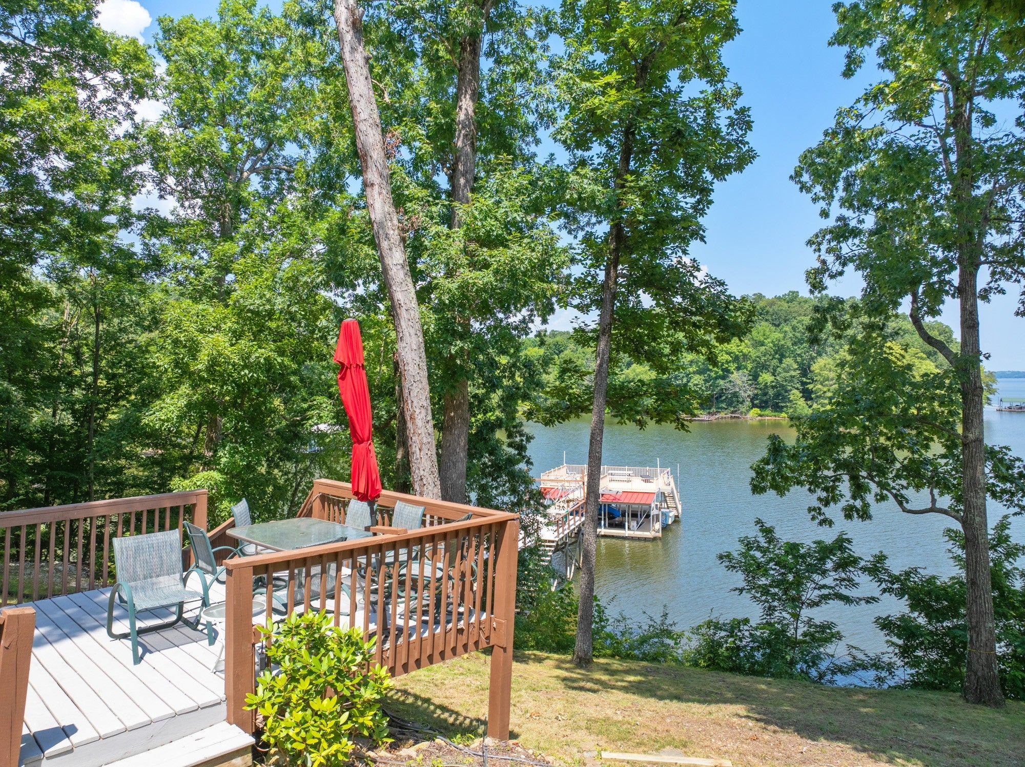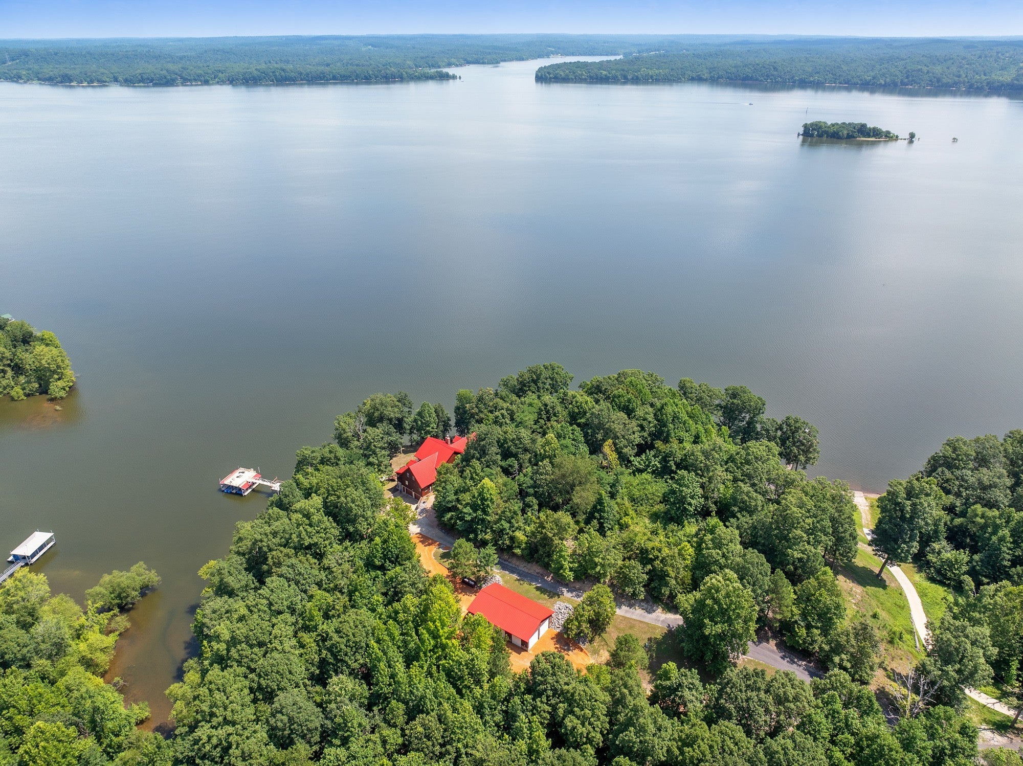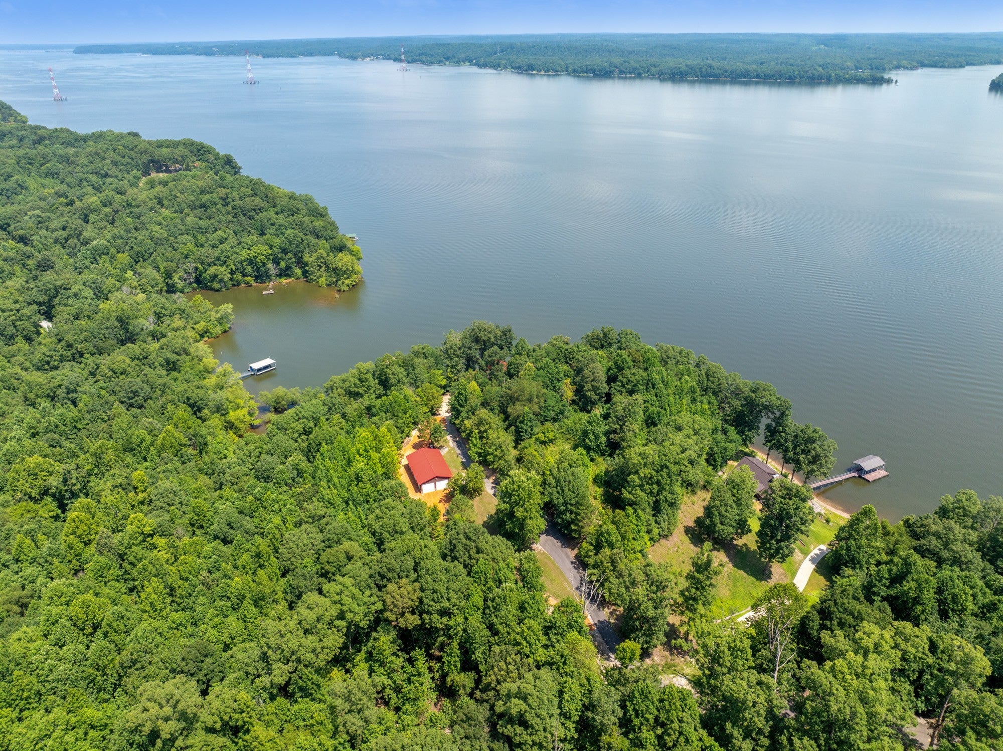 Private retreat as you are drawn into this gated subdivision and whisked back to your private lakeside sanctuary. This home featuring over 5,000 finished square feet, high end commercial kitchen appliances, over 3000 square feet of deck, patio, screened porches and dock space to enjoy lakefront living at its best. Many upgrades since this new owner including Hvac, bathrooms, flooring, exterior painting and new standing seem roof on house and dock. Just come move right in and enjoy and entertain in the custom made bar, stage area and entertaining space in the basement boasting another bedroom and bath, surround sound inside and out. Fiber currently being installed and benefits of this HOA are private boat launch, helipad, privacy entry gate and maintained roads.