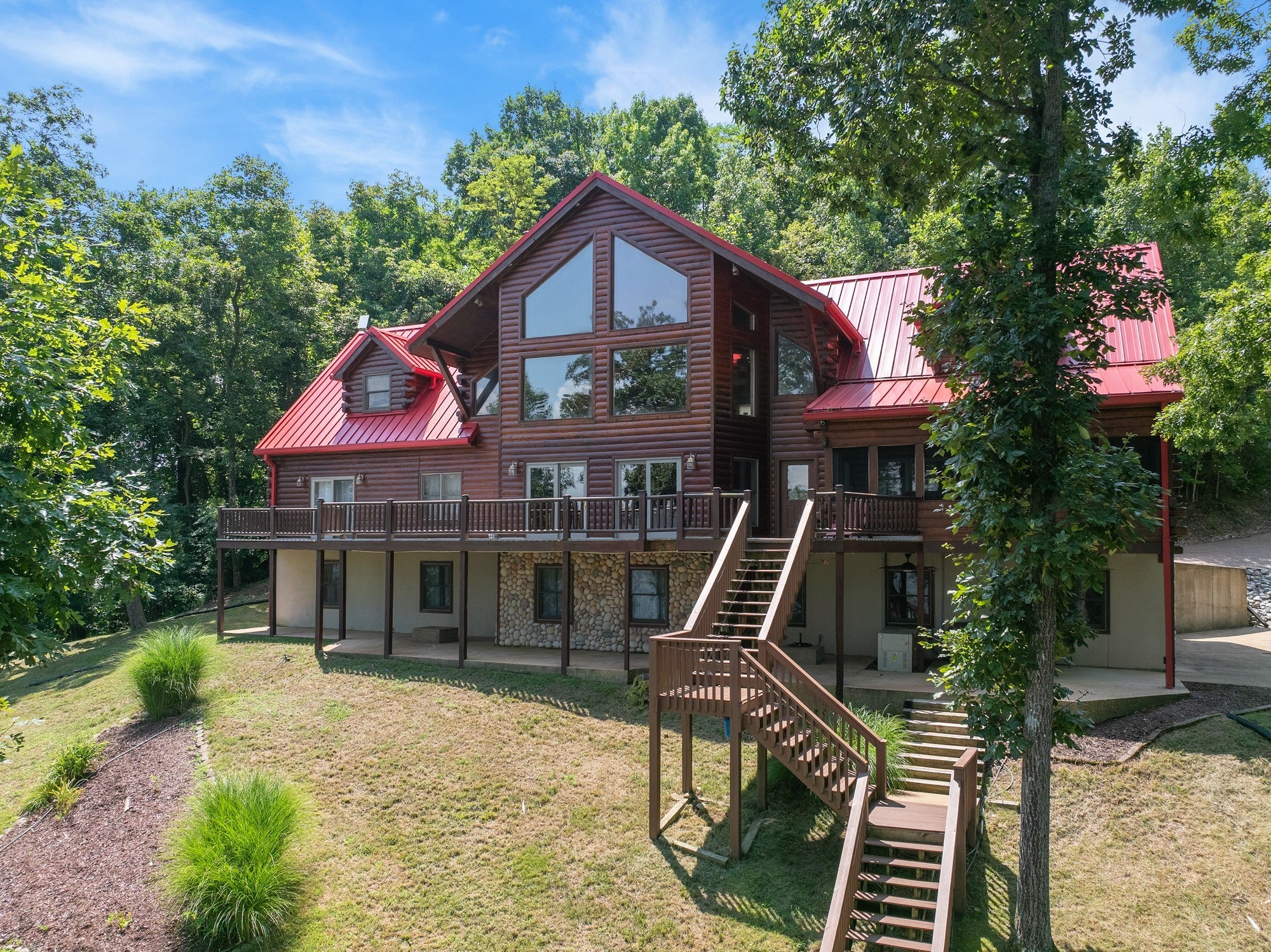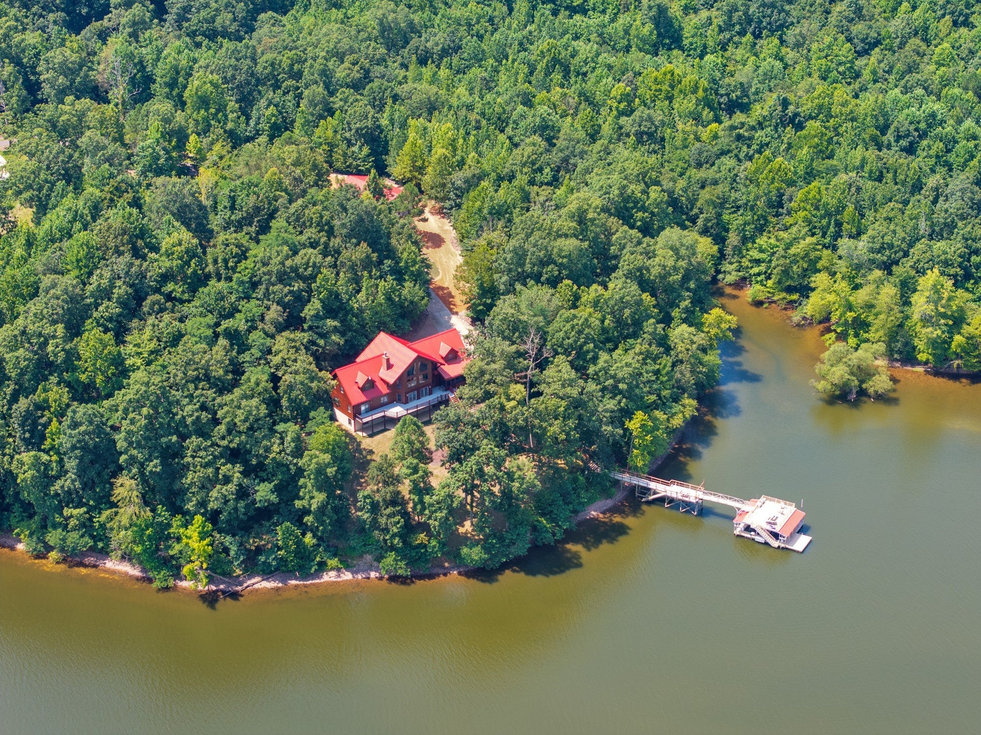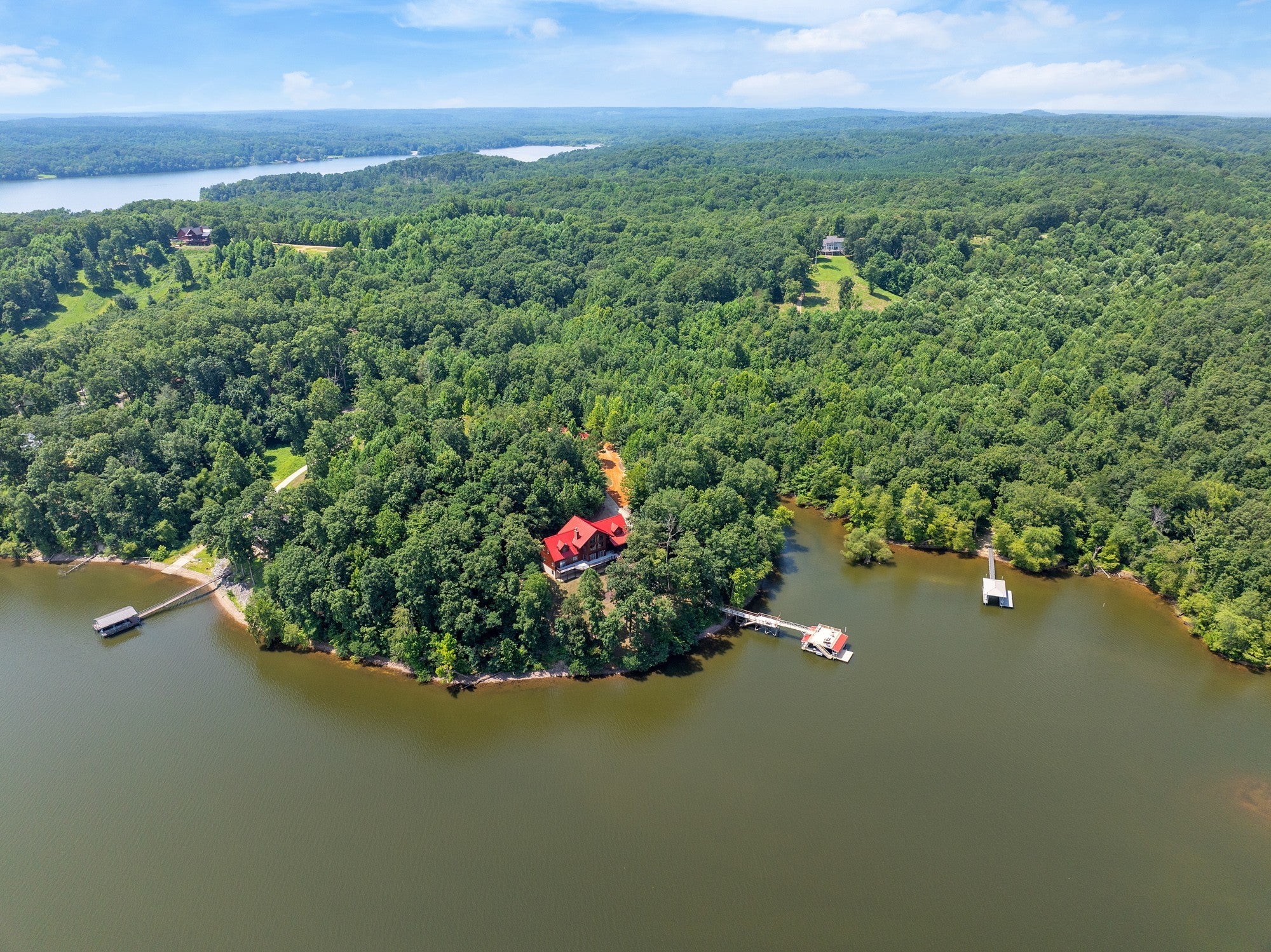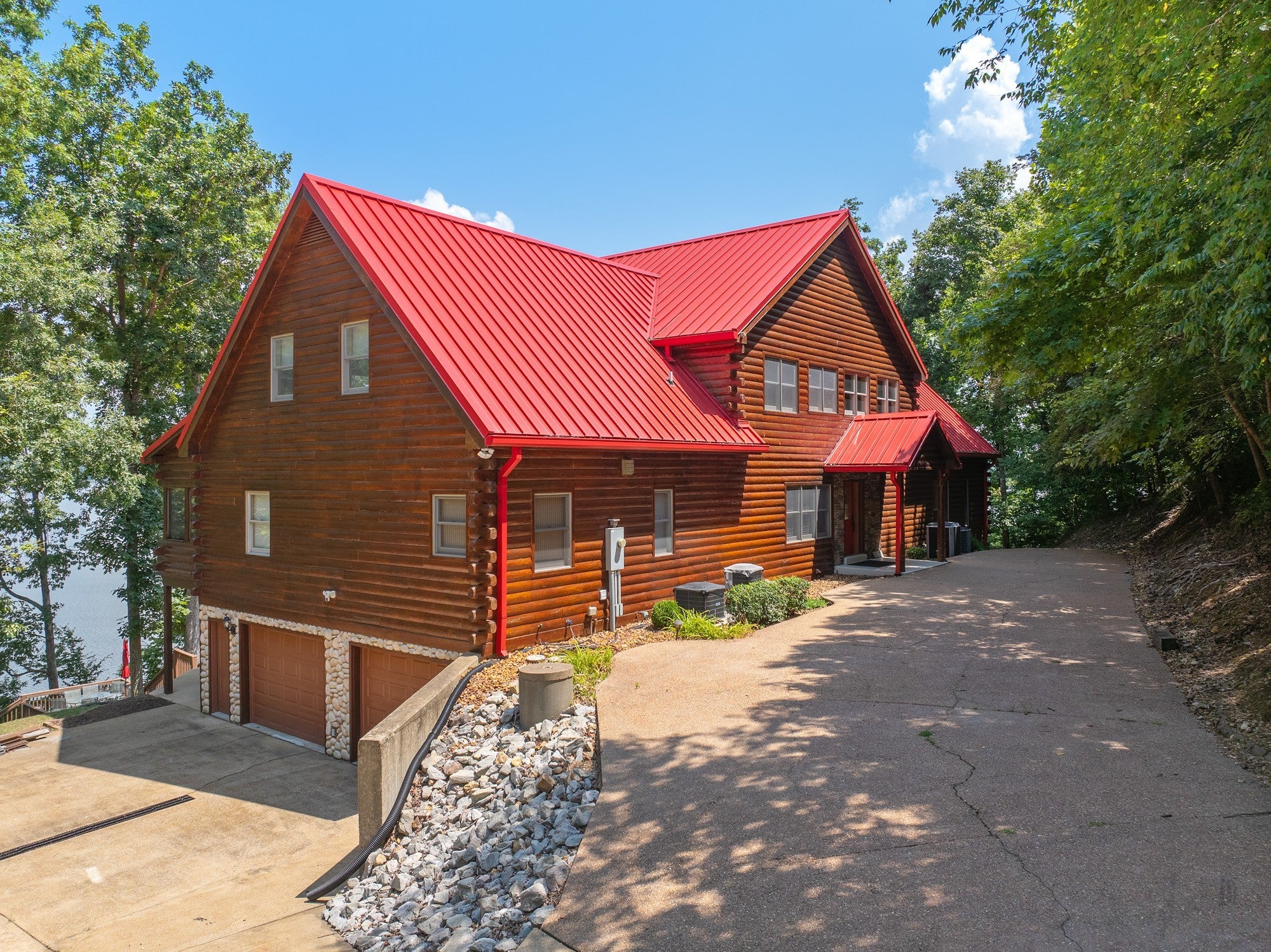 Private retreat as you are drawn into this gated subdivision and whisked back to your private lakeside sanctuary. This home featuring over 5,000 finished square feet, high end commercial kitchen appliances, over 3000 square feet of deck, patio, screened porches and dock space to enjoy lakefront living at its best. Many upgrades since this new owner including Hvac, bathrooms, flooring, exterior painting and new standing seem roof on house and dock. Just come move right in and enjoy and entertain in the custom made bar, stage area and entertaining space in the basement boasting another bedroom and bath, surround sound inside and out. Fiber currently being installed and benefits of this HOA are private boat launch, helipad, privacy entry gate and maintained roads.