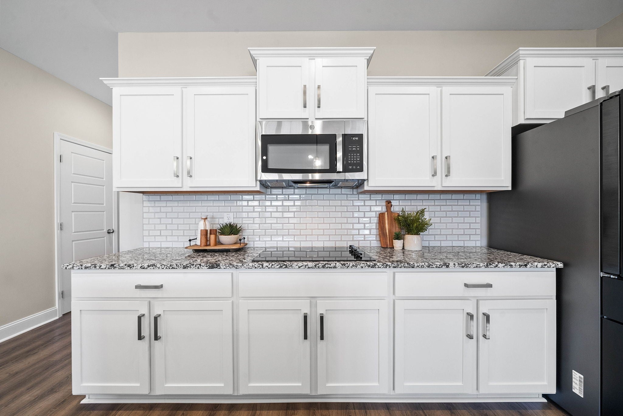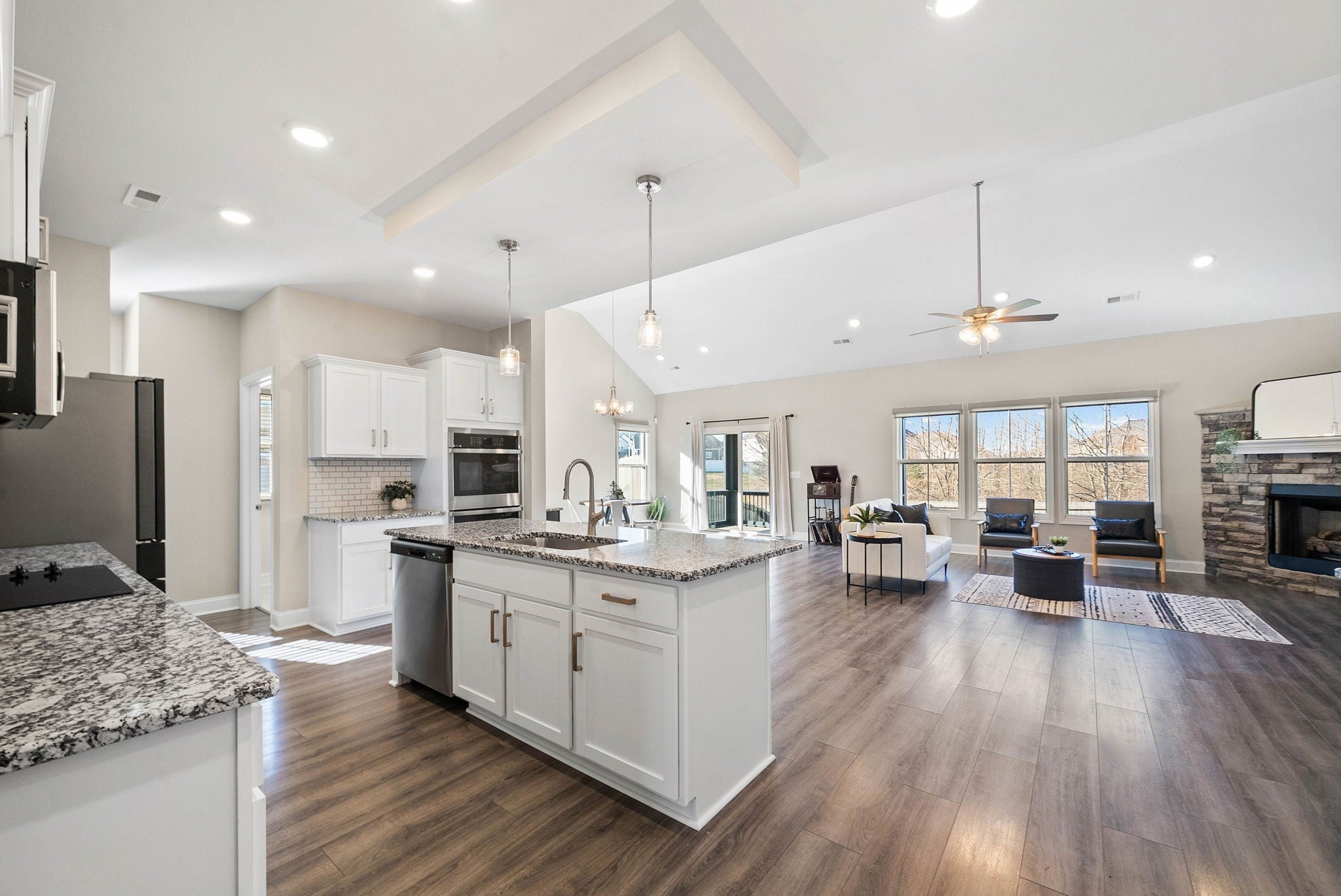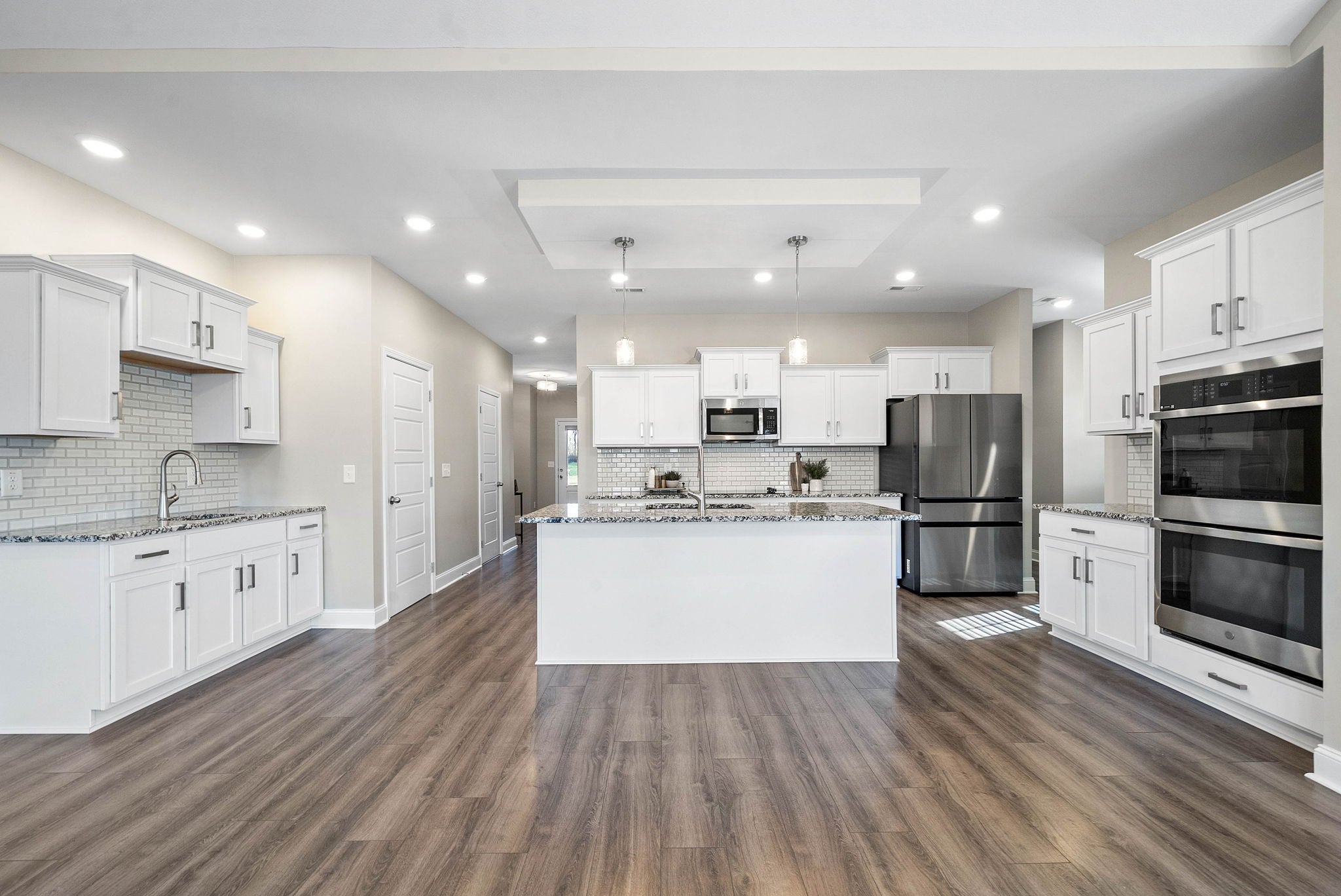 - Built-In Electric Oven, Double Oven, Built-In Electric Range, Cooktop, Dishwasher, Disposal, Microwave, Refrigerator, Stainless Steel Appliance(s)