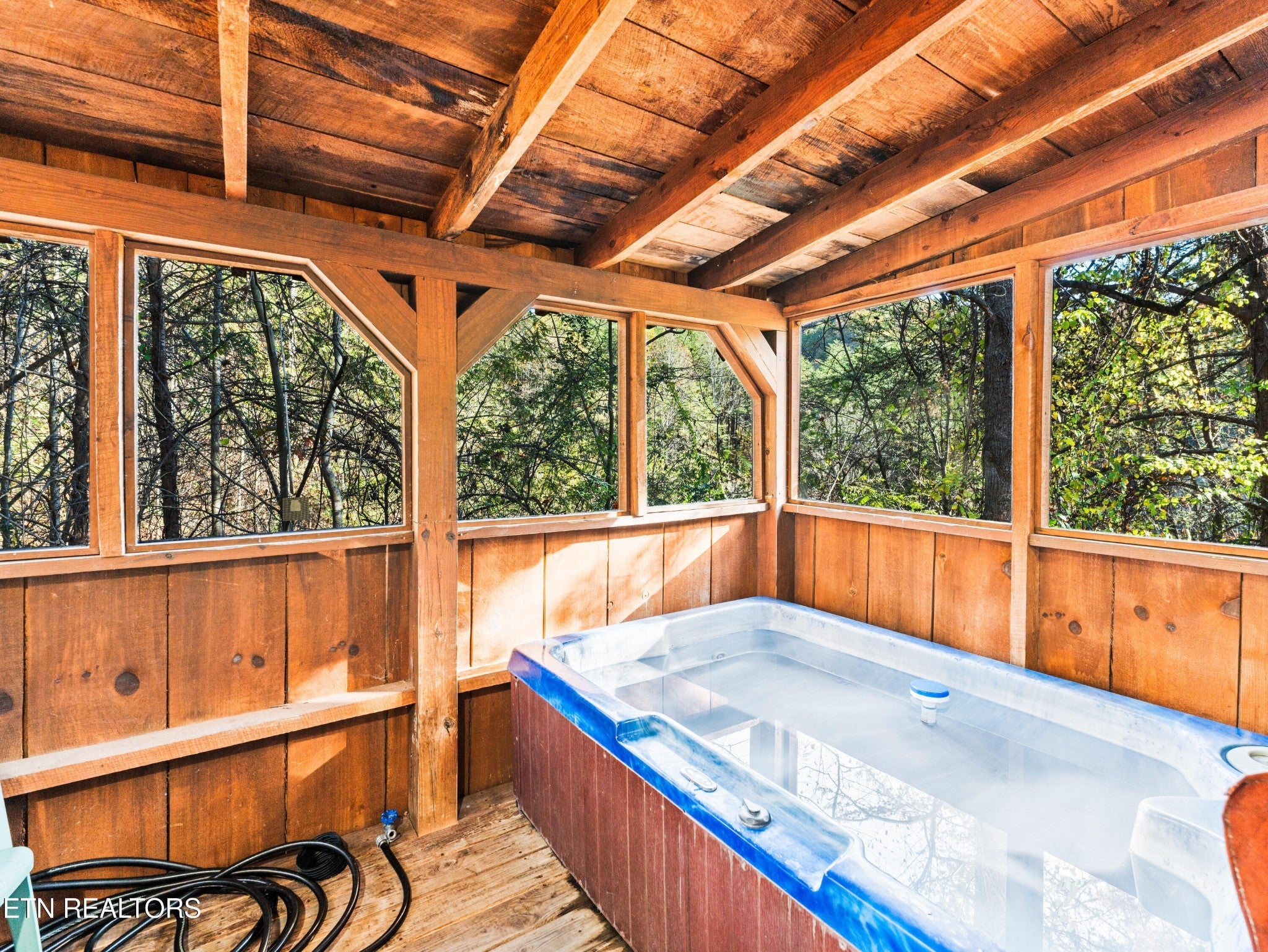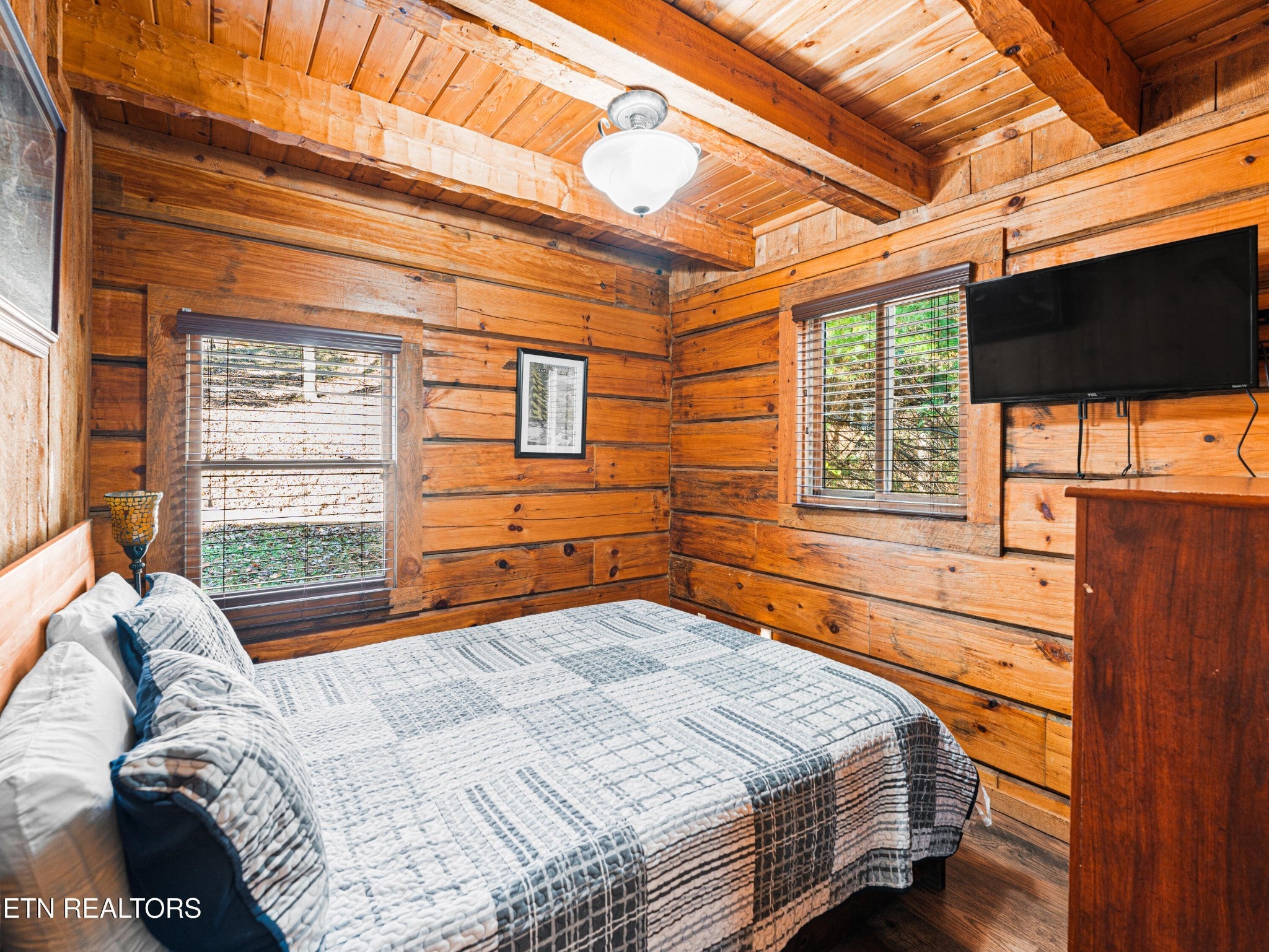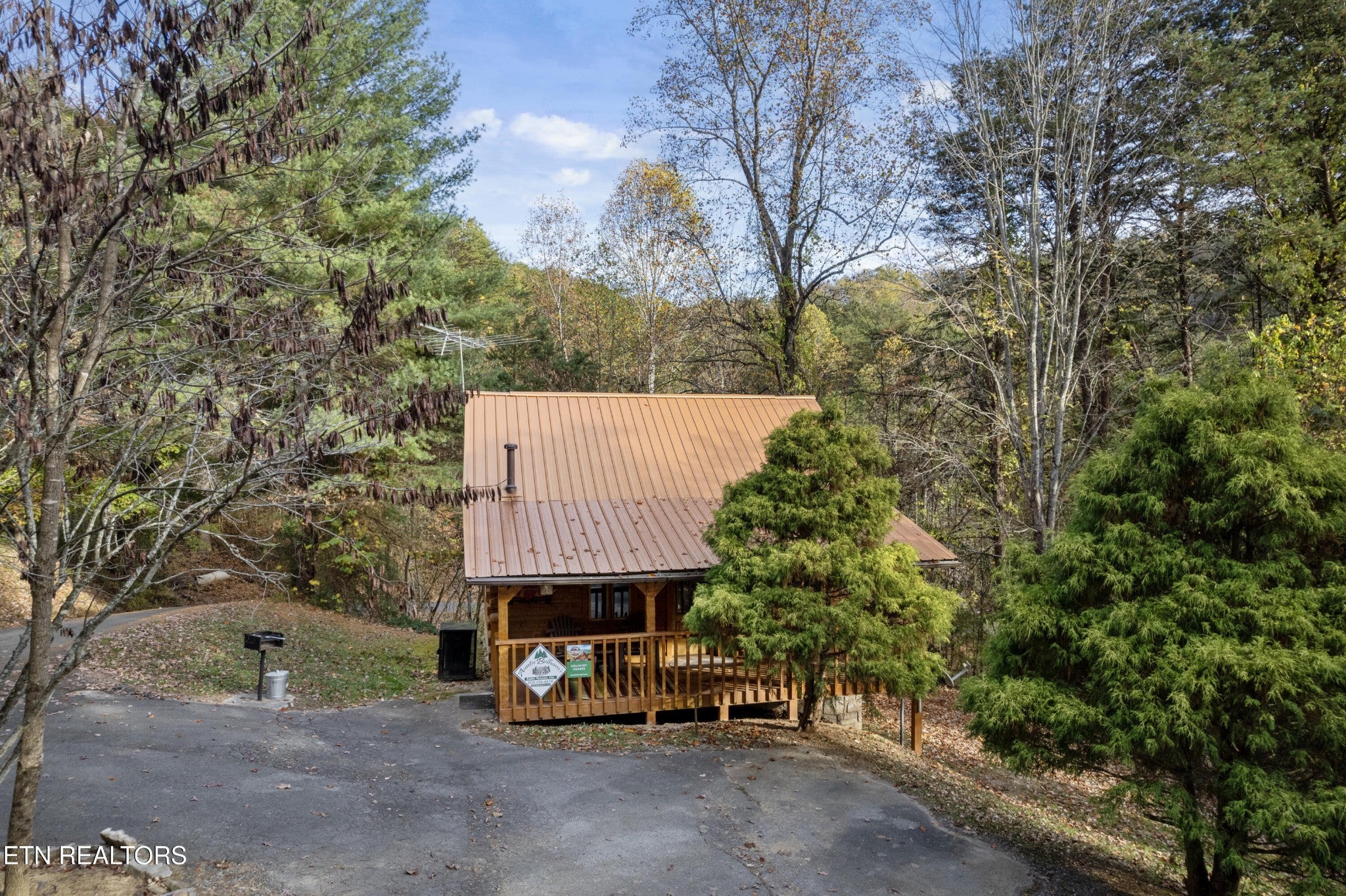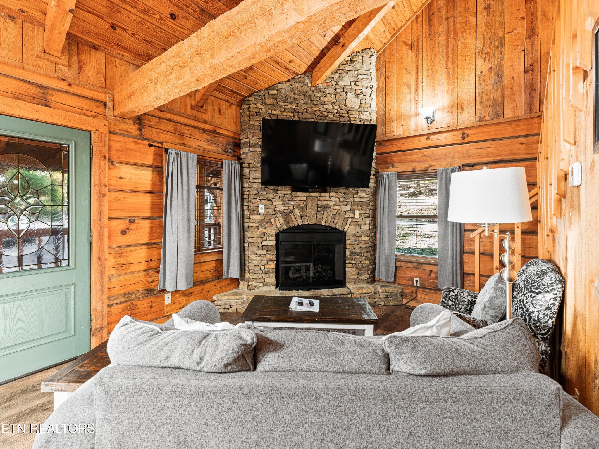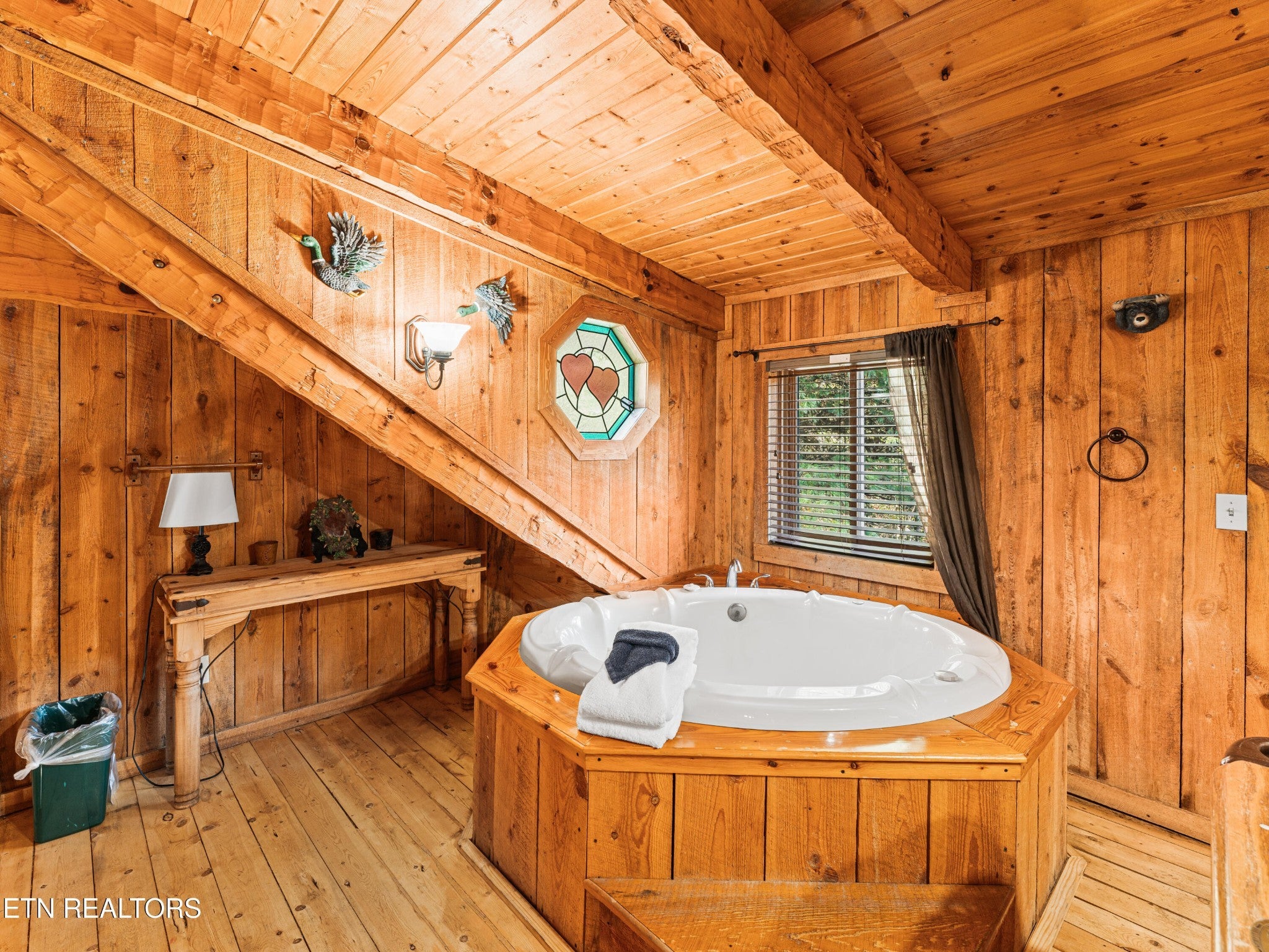 This Romantic Getaway cabin is for you! Country Hearts is a classic log cabin style with a private hot tub on the back screened in porch; This cabin is conveniently located within minutes from the parkway and Wears Valley and everything Pigeon Forge. This is a turn key, move in ready cabin with a long cozy front porch with plenty of room to sit, take in the fresh air, and sip your coffee in the mornings. Walk in the front door and there's a living room stone surround fireplace with a TV mounted above it along with a couch to cuddle on, and an armchair. To your right is a fully equipped country kitchen and dining area. Down the hall is a queen size bedroom with a TV, a full bathroom with a standup shower, access to the screened-in porch with seating and an awesome, private hot tub perfect for soaking at the end of a long day. Head upstairs to the loft to take advantage of the jacuzzi tub or entertain a round or two of billiard ball. Come see the Country Hearts cabin today! By Appointment Only. STR Property. Parking with a large back yard.