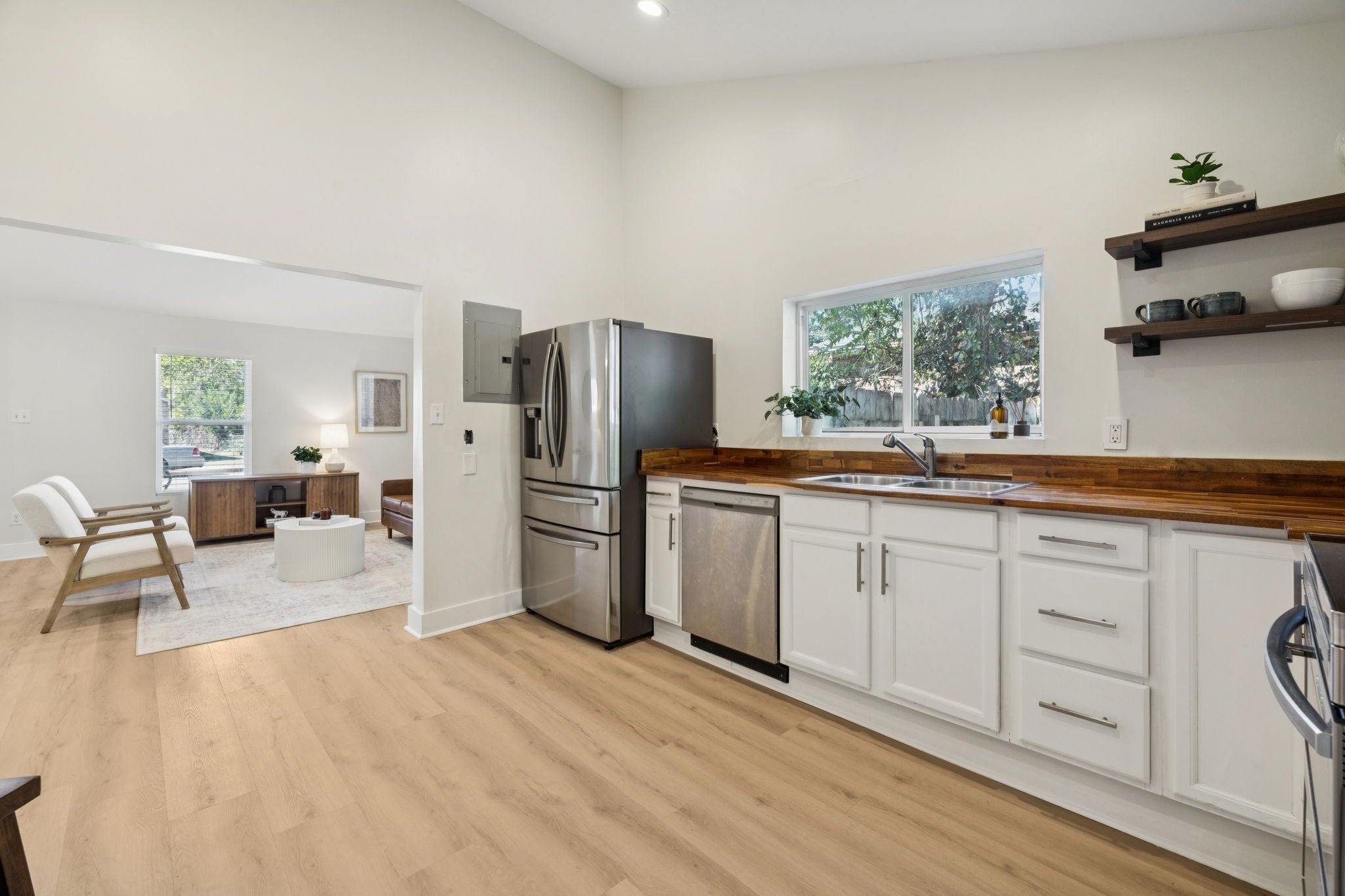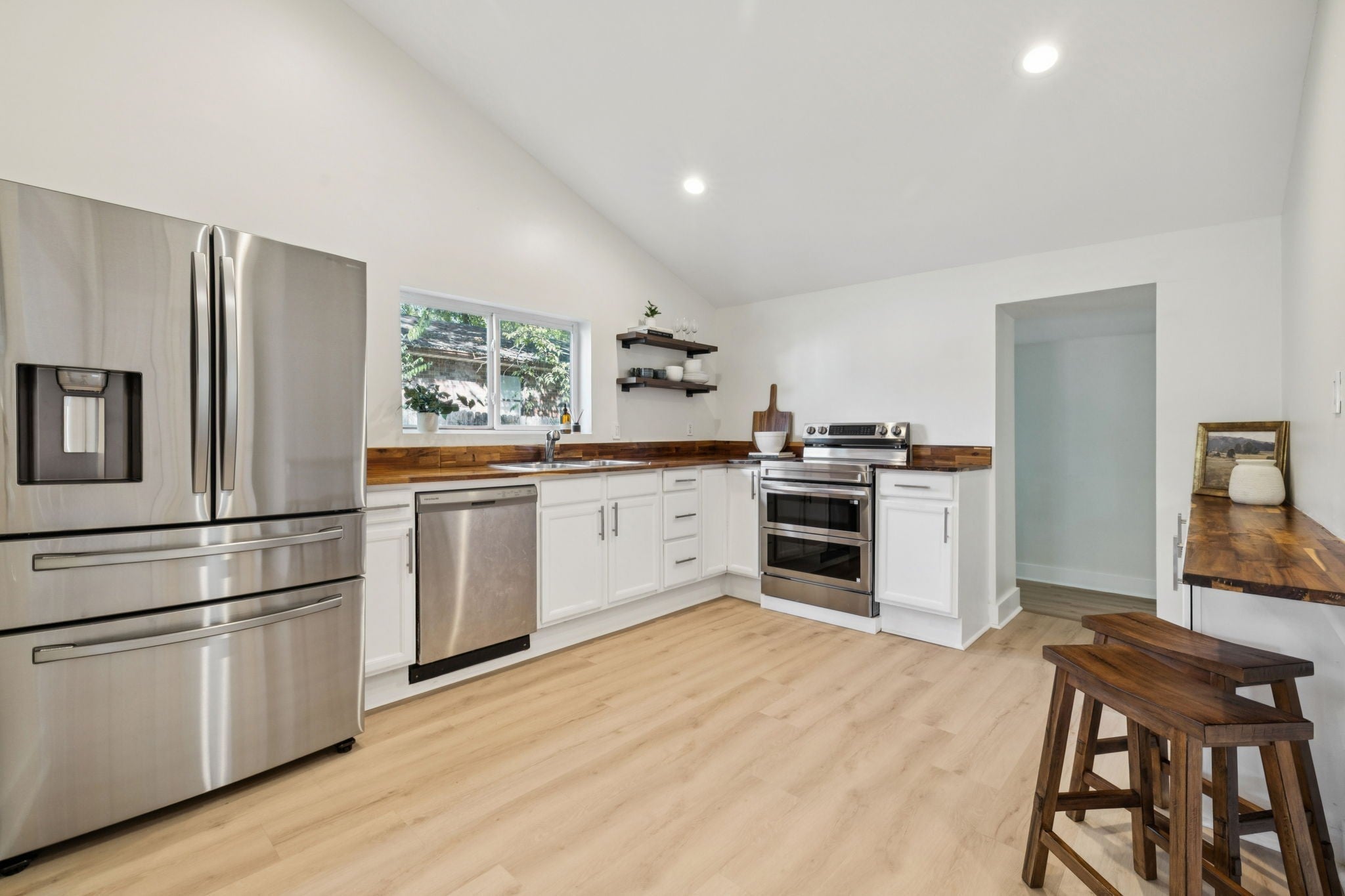 Nestled in the heart of North Nashville, this home offers the perfect blend of classic charm and modern convenience. This beautifully renovated single-family home sits just minutes from downtown, providing easy access to the city’s vibrant dining, entertainment. The ever growing North Nashville location is walking distance to many shops and restaurants like Morning Glory Cafe, Slim and Husky’s, The Loading Dock and Sift Bakery! Inside, you’ll find a bright and open layout that welcomes natural light throughout. The vaulted ceilings in the main living area create an airy sense of space, while the seamless flow between the living room, dining area, and kitchen makes entertaining effortless. The home has been beautifully refreshed, from the new flooring to the updated fixtures and appliances and offers new tankless water heater. Outside, the large fenced backyard, back patio and the covered front porch provides a private retreat perfect for relaxing or hosting gatherings. The generous lot size also offers potential for future expansion, outdoor upgrades or creating your own garden oasis.